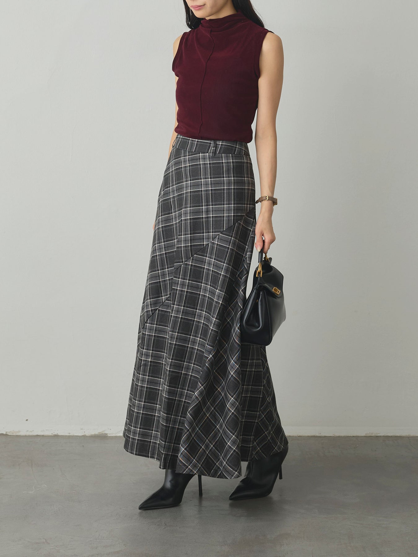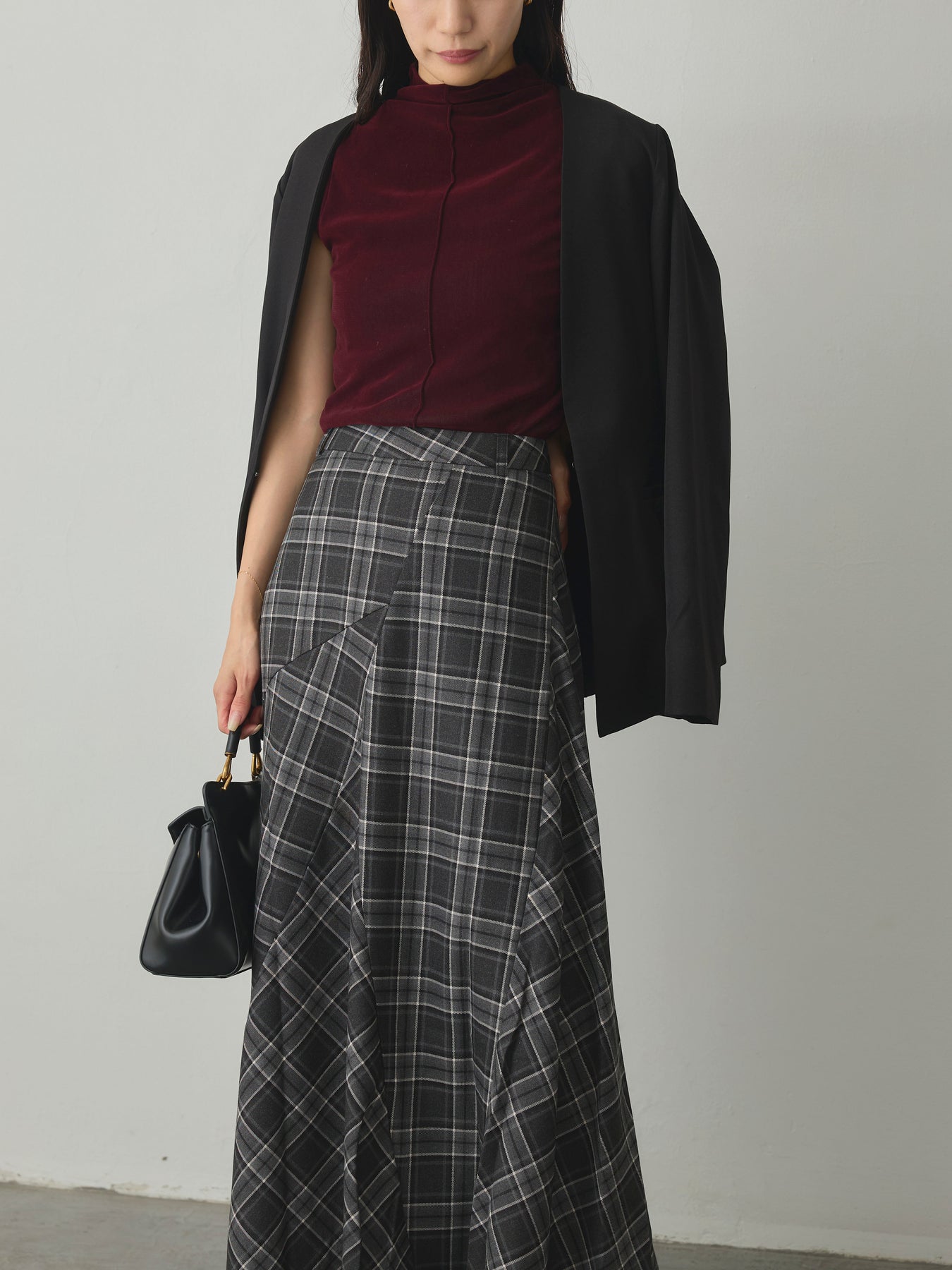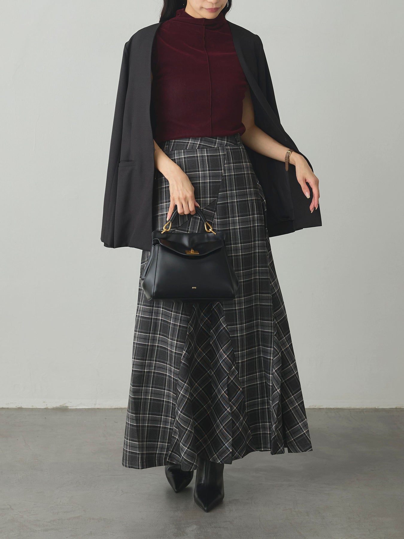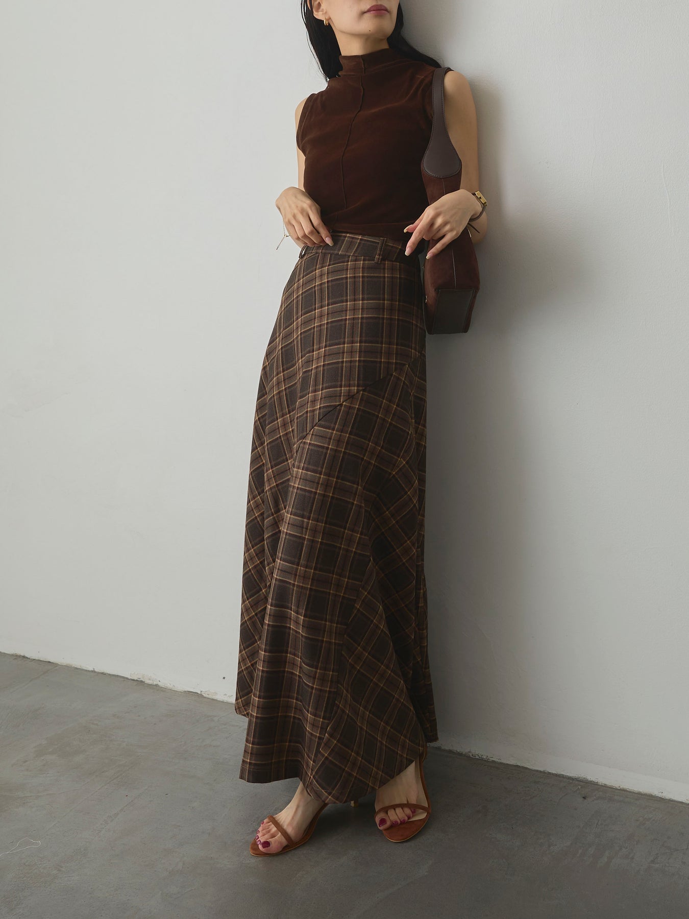 【モデル着用サイズ:BROWN/S、BLACK/S】 クラシカルなチェック柄を取り入れたパネルデザインのスカート。程よく広がるシルエットが上品な印象を演出し、シンプルなトップスと合わせるだけでスタイリングが決まります。