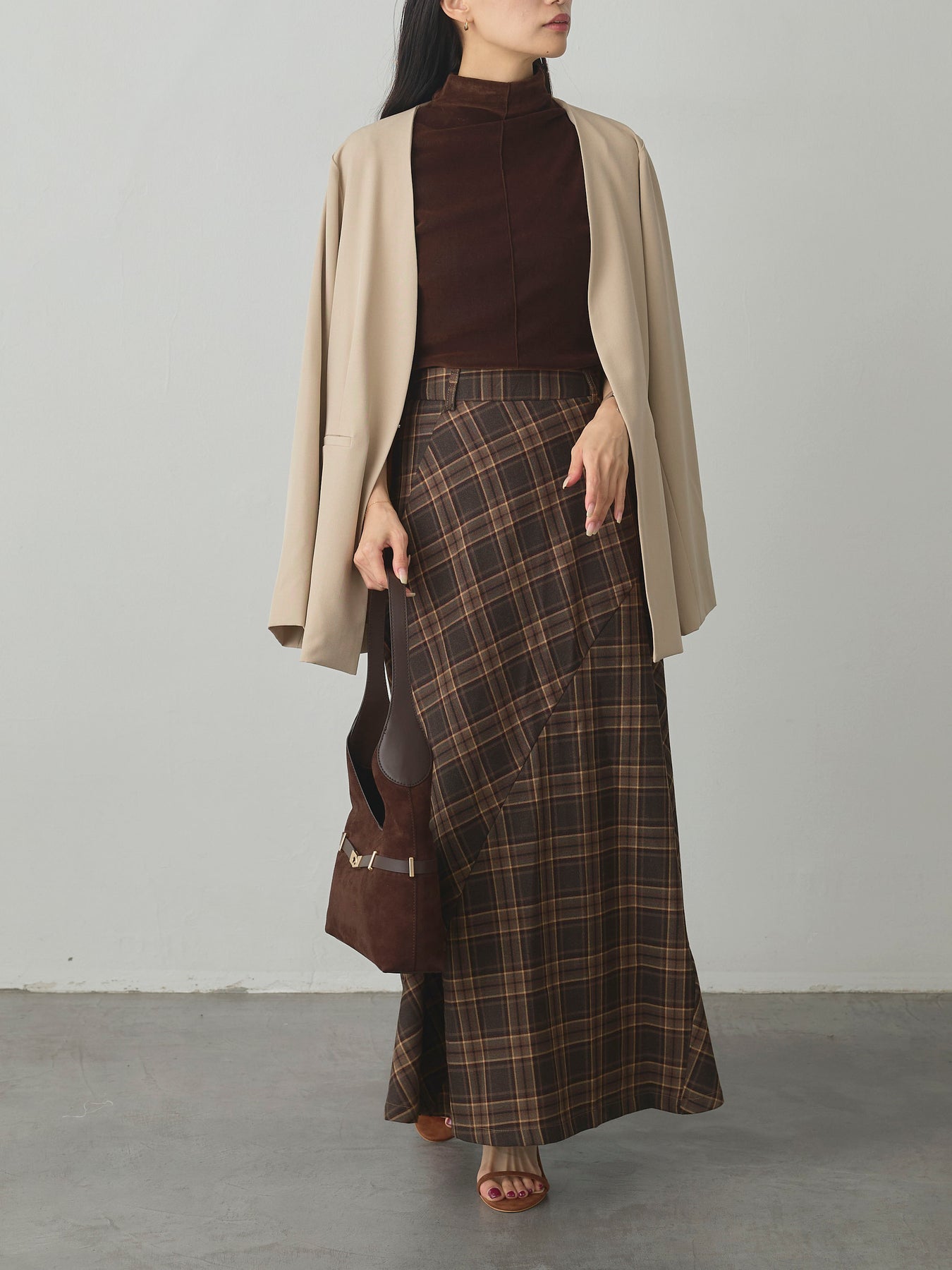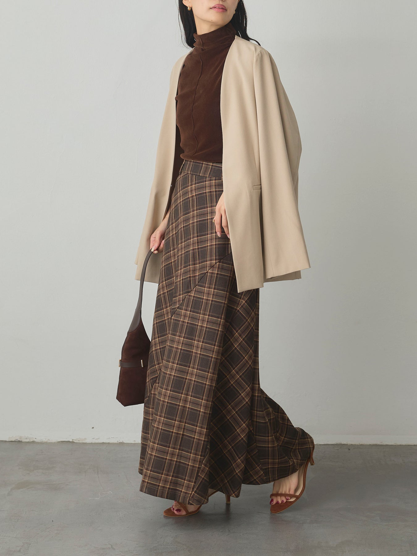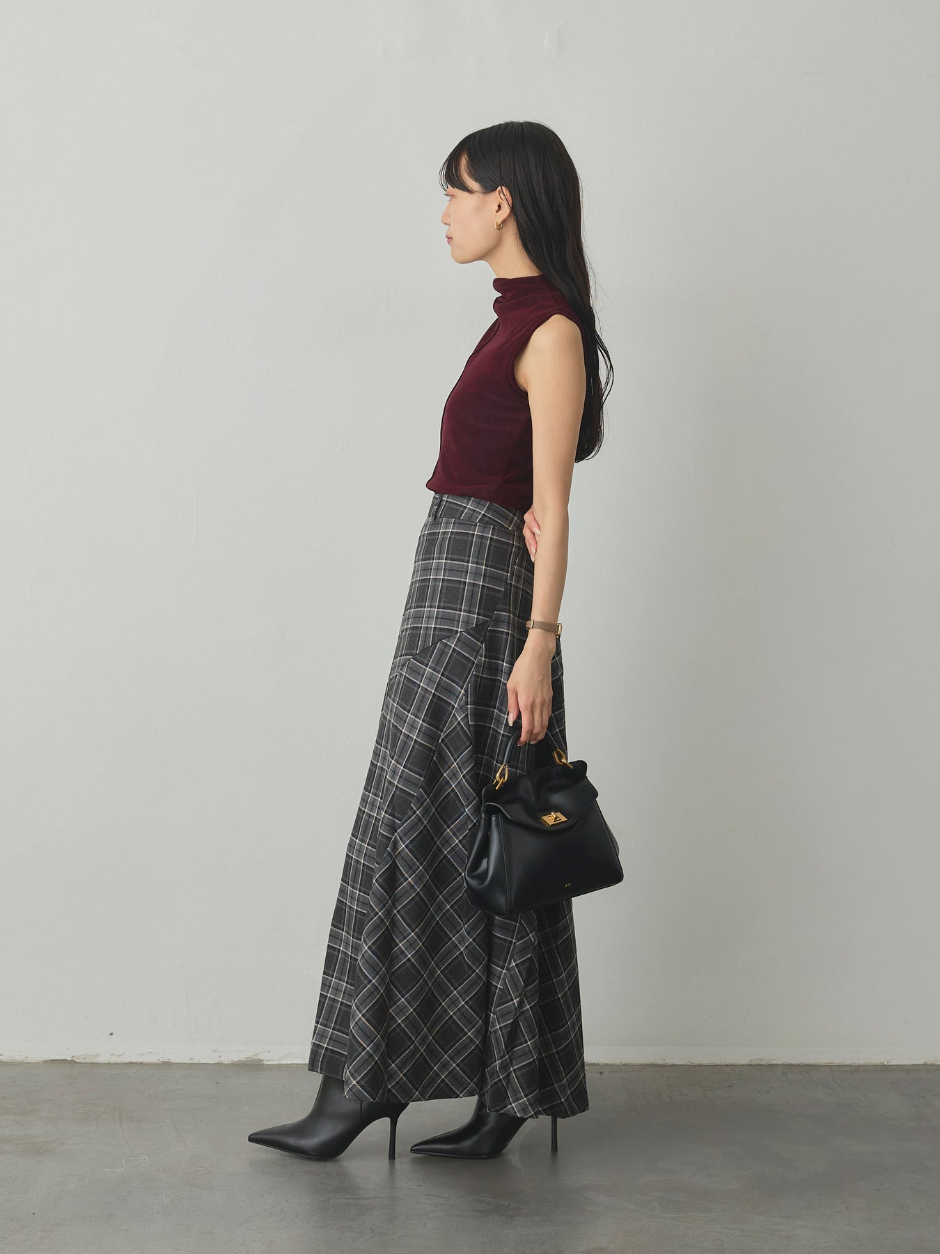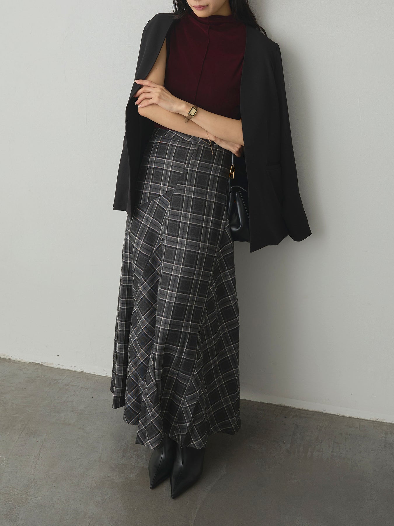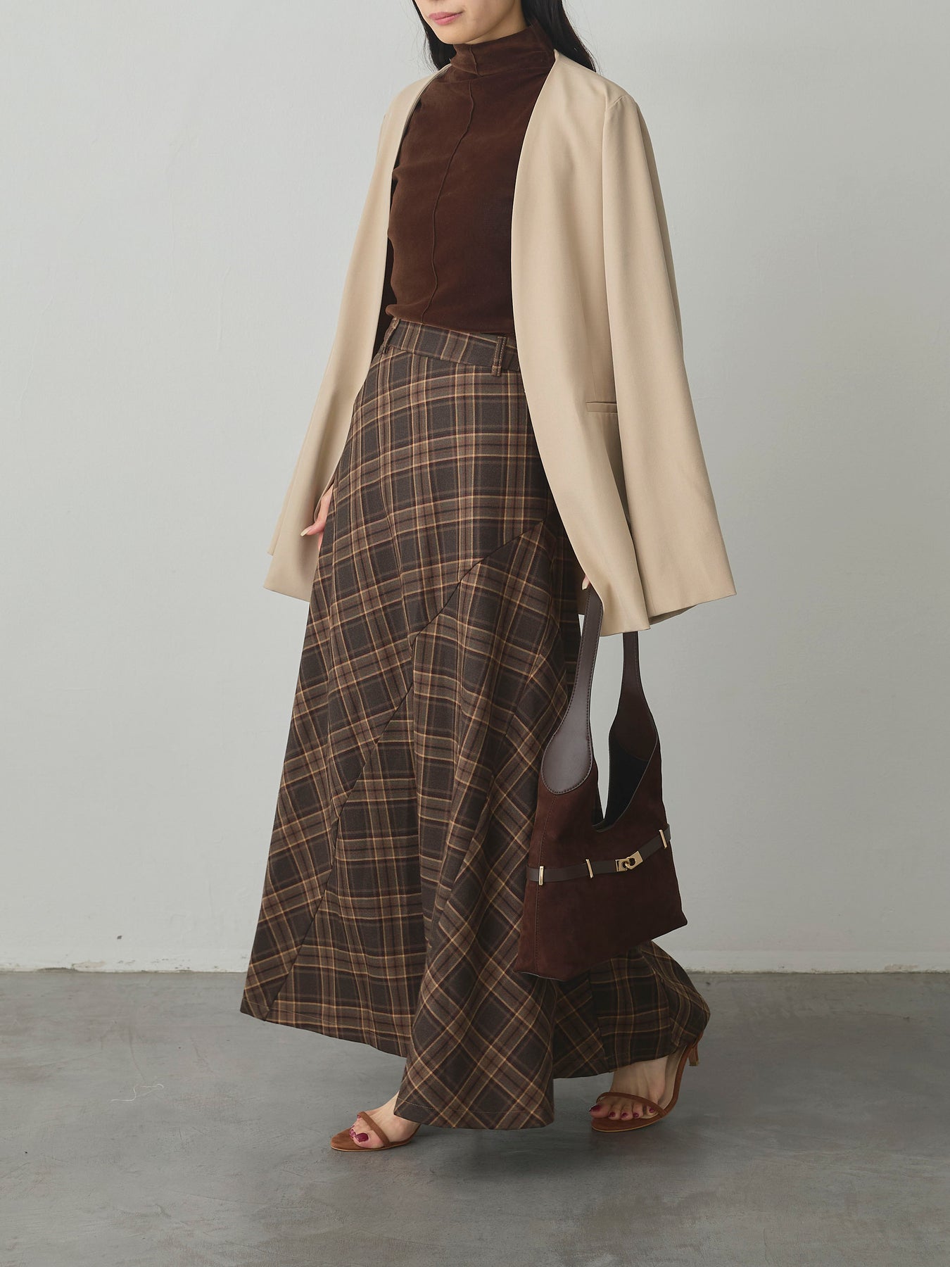 【モデル着用サイズ:BROWN/S、BLACK/S】 クラシカルなチェック柄を取り入れたパネルデザインのスカート。程よく広がるシルエットが上品な印象を演出し、シンプルなトップスと合わせるだけでスタイリングが決まります。