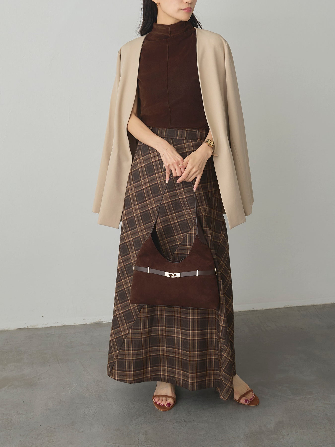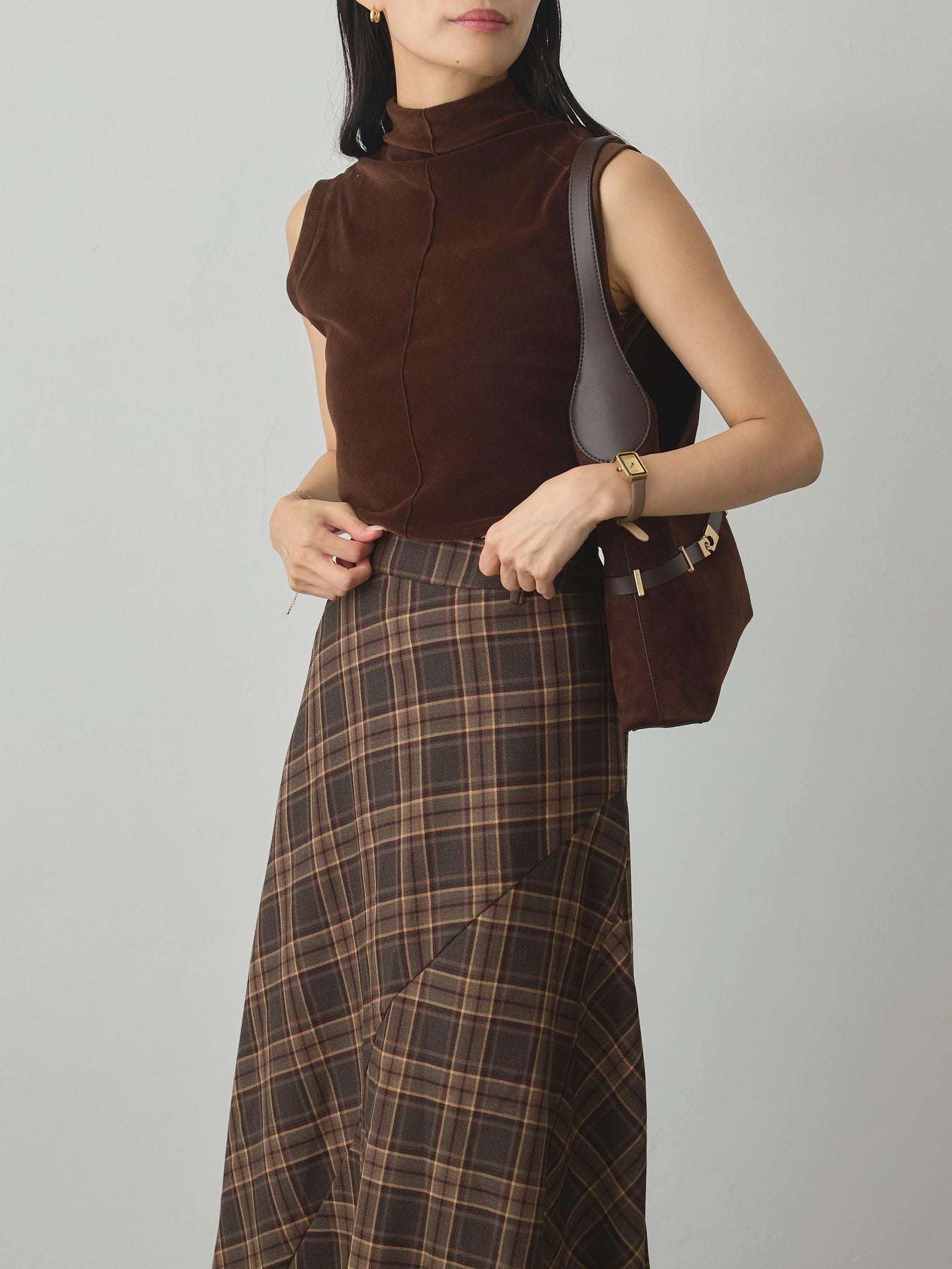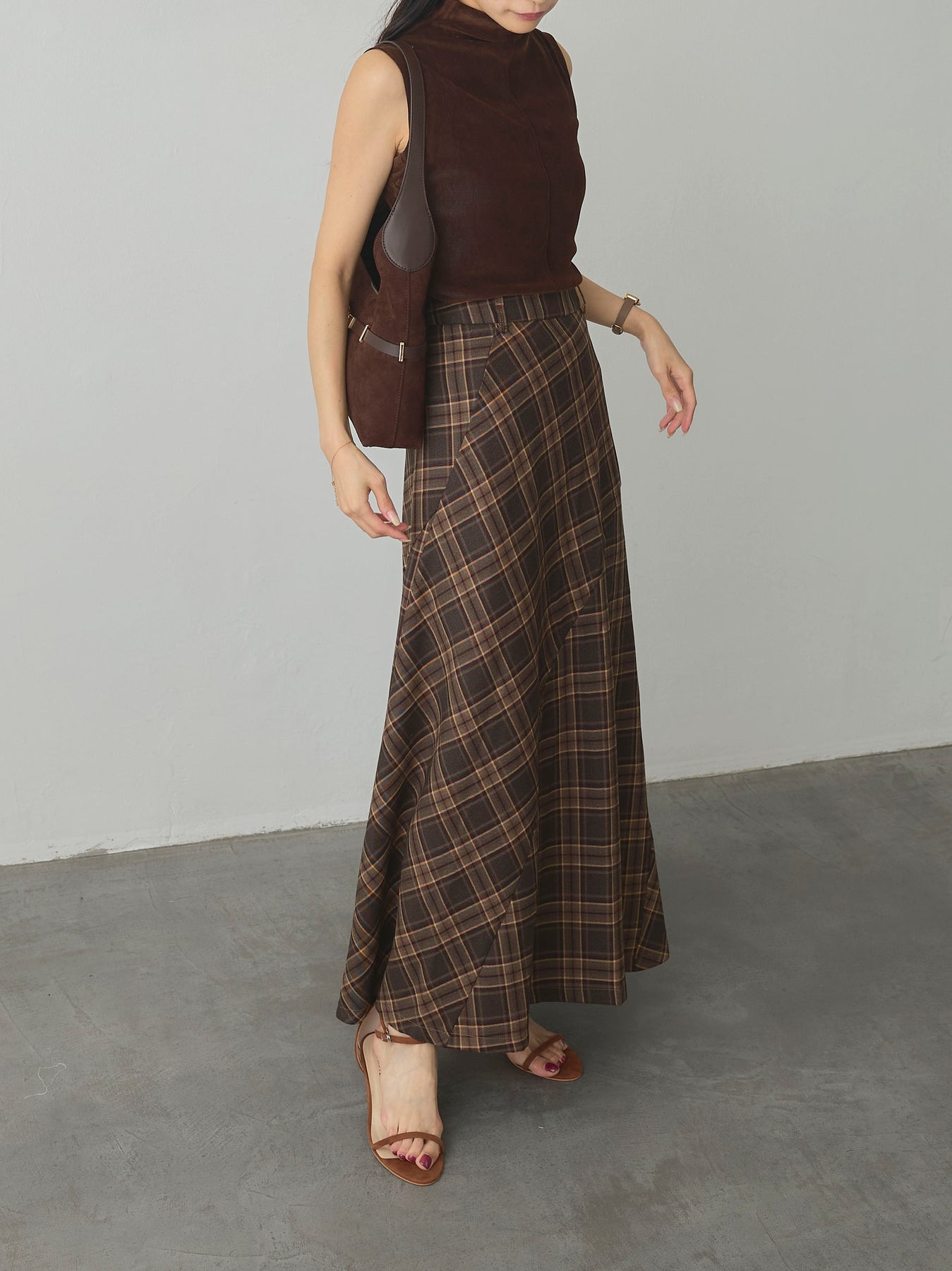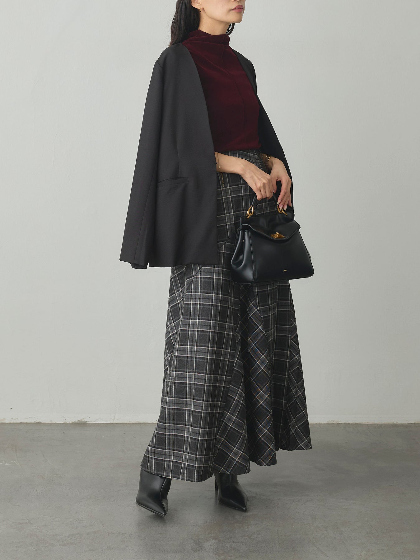 【モデル着用サイズ:BROWN/S、BLACK/S】 クラシカルなチェック柄を取り入れたパネルデザインのスカート。程よく広がるシルエットが上品な印象を演出し、シンプルなトップスと合わせるだけでスタイリングが決まります。