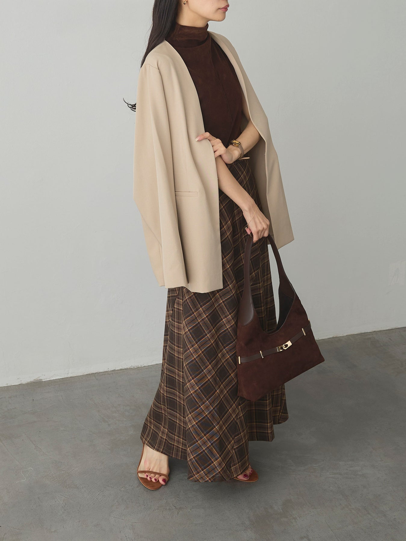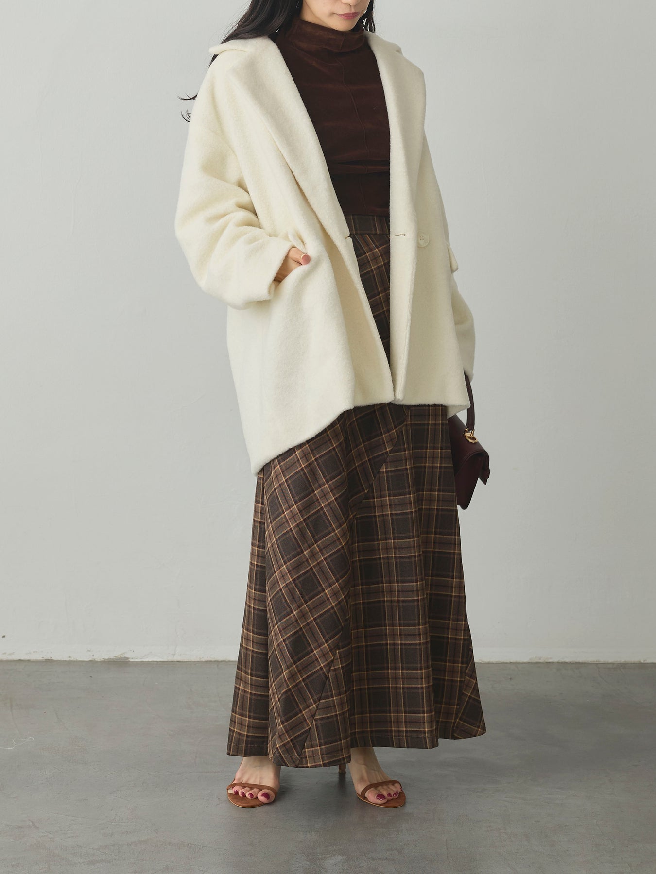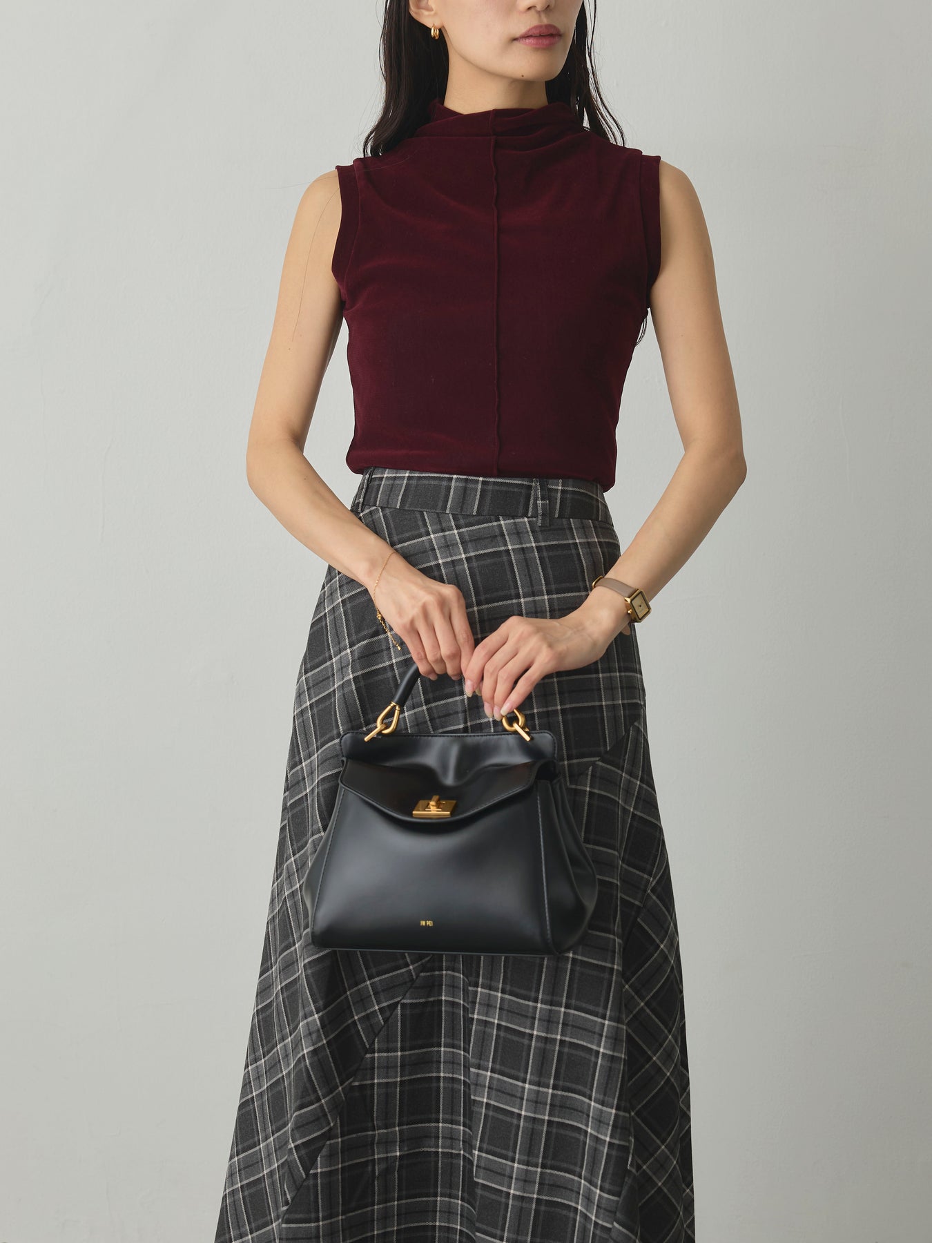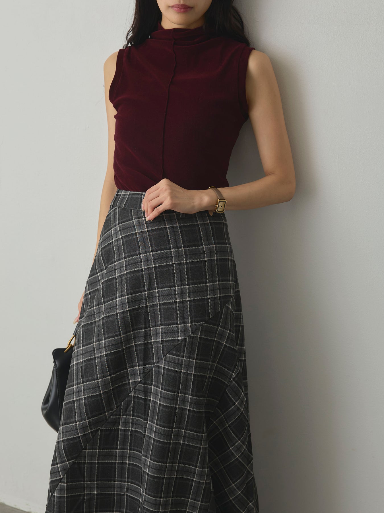 【モデル着用サイズ:BROWN/S、BLACK/S】 クラシカルなチェック柄を取り入れたパネルデザインのスカート。程よく広がるシルエットが上品な印象を演出し、シンプルなトップスと合わせるだけでスタイリングが決まります。