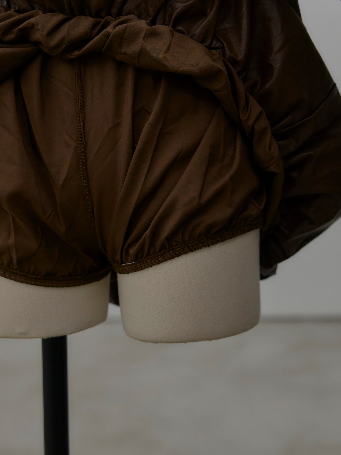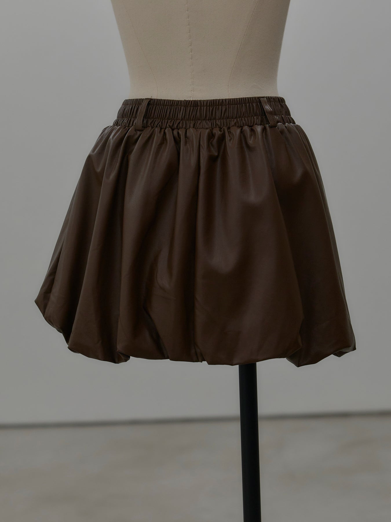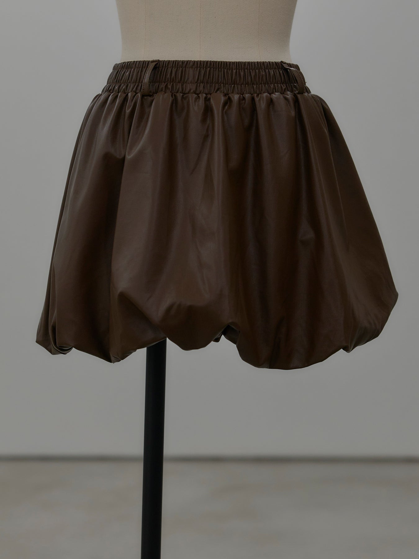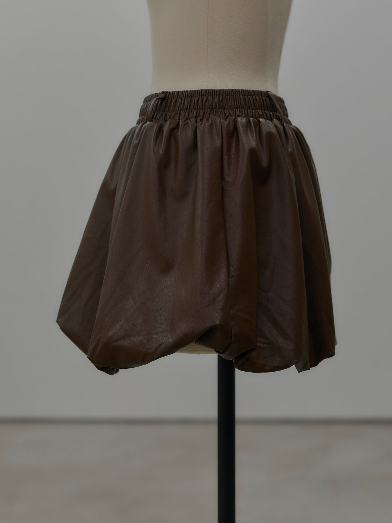 柔らかな質感のフェイクレザーを使用したバルーンミニスカート。