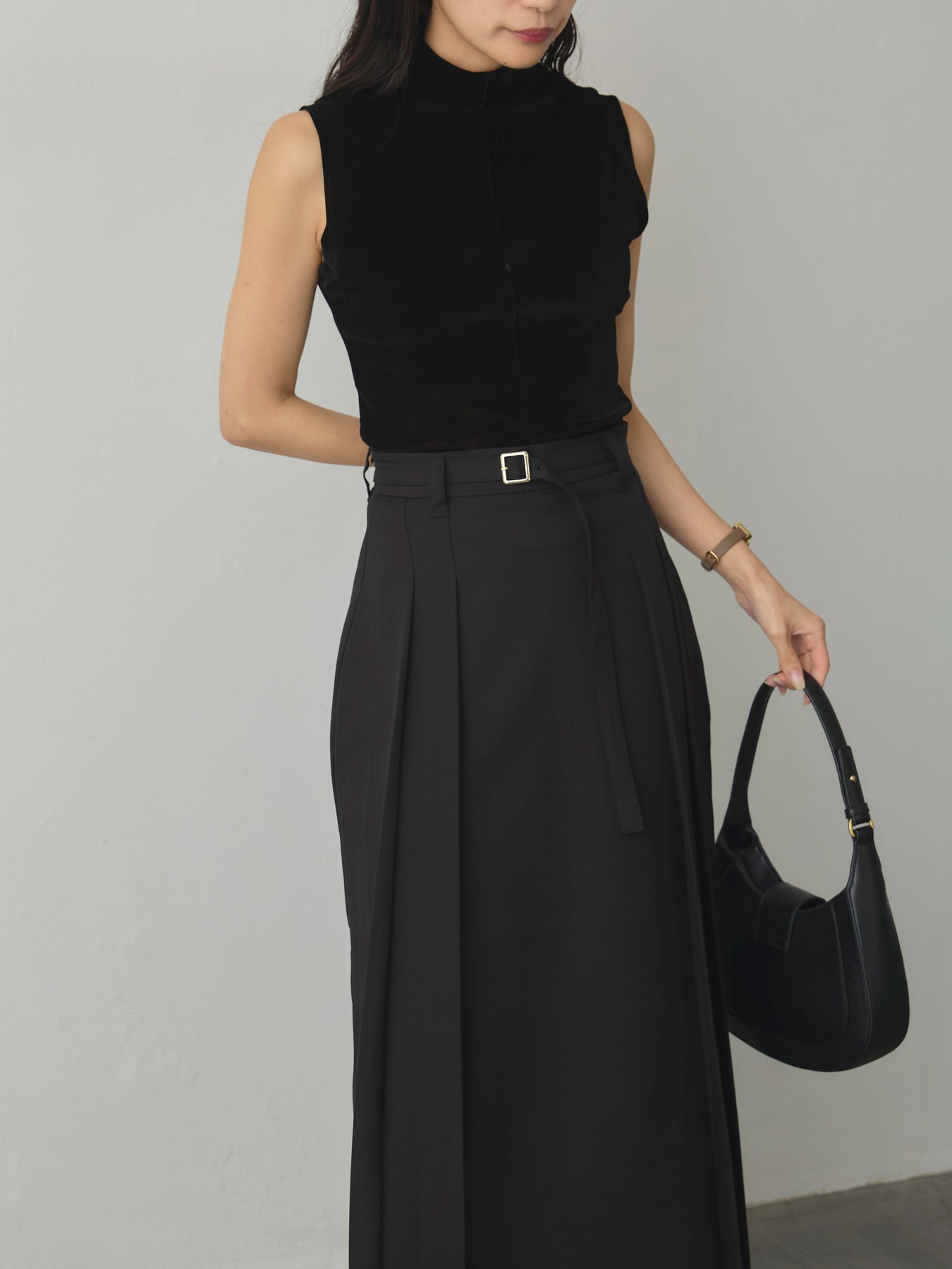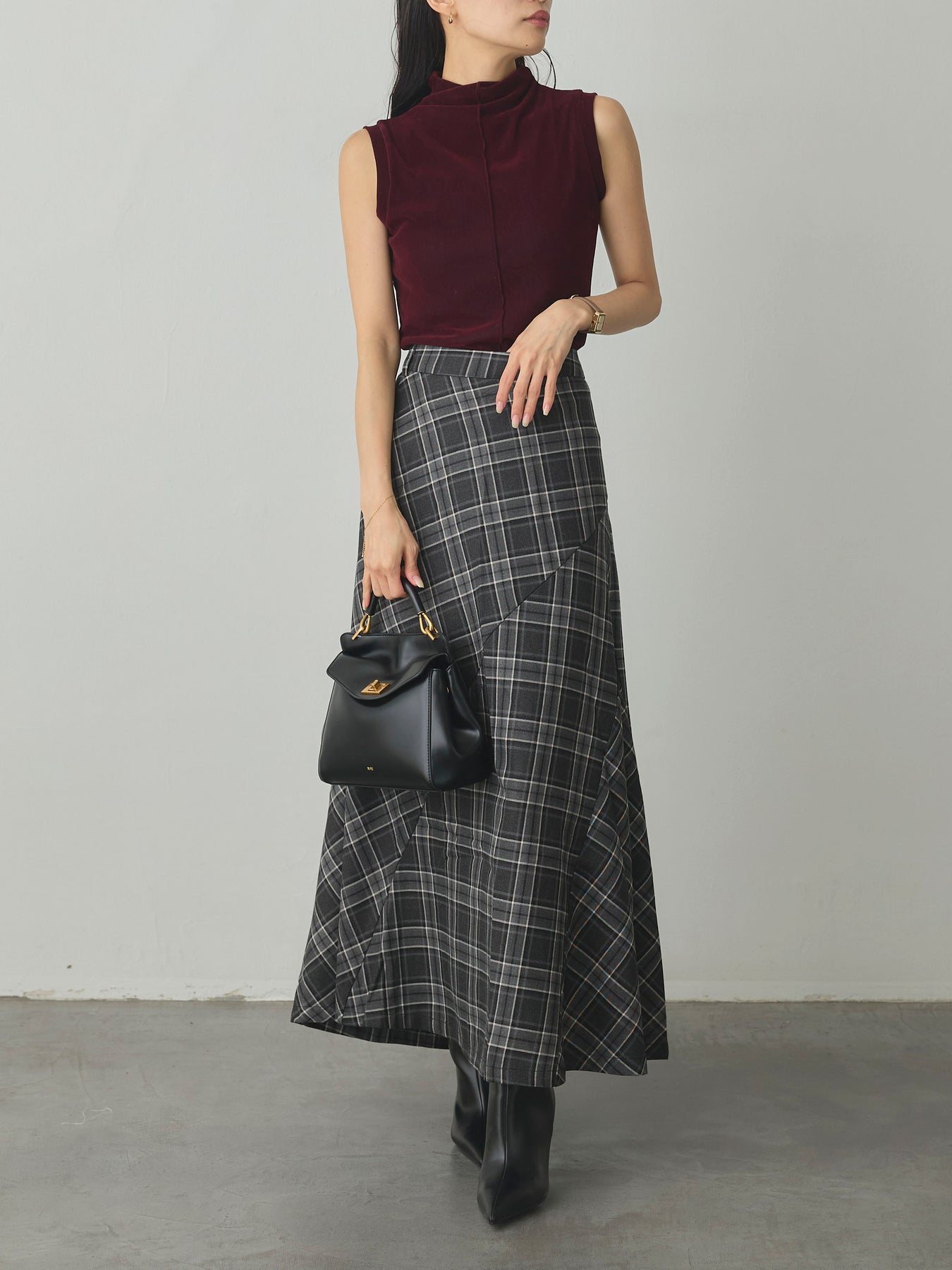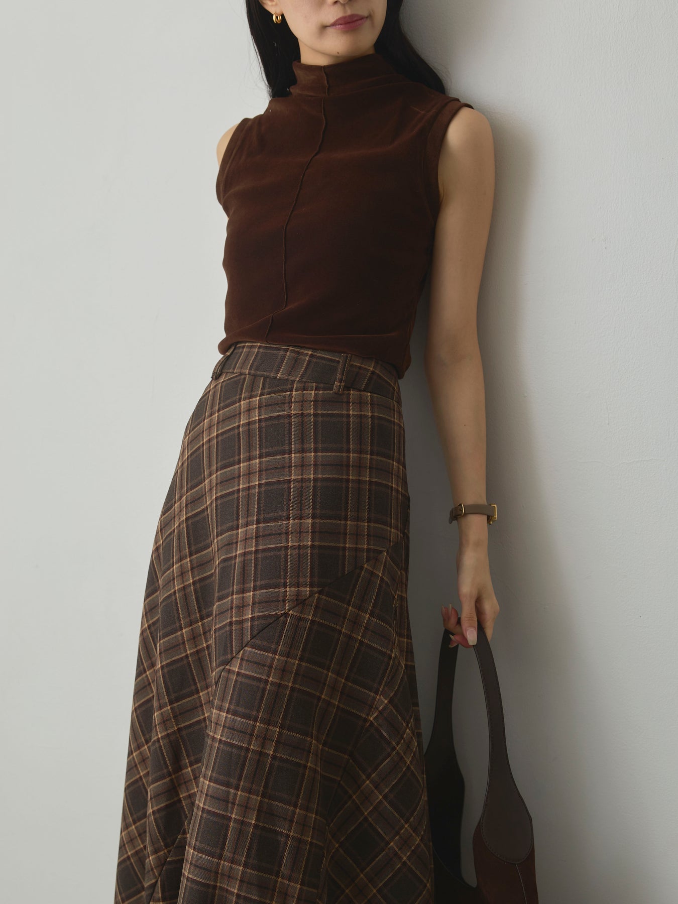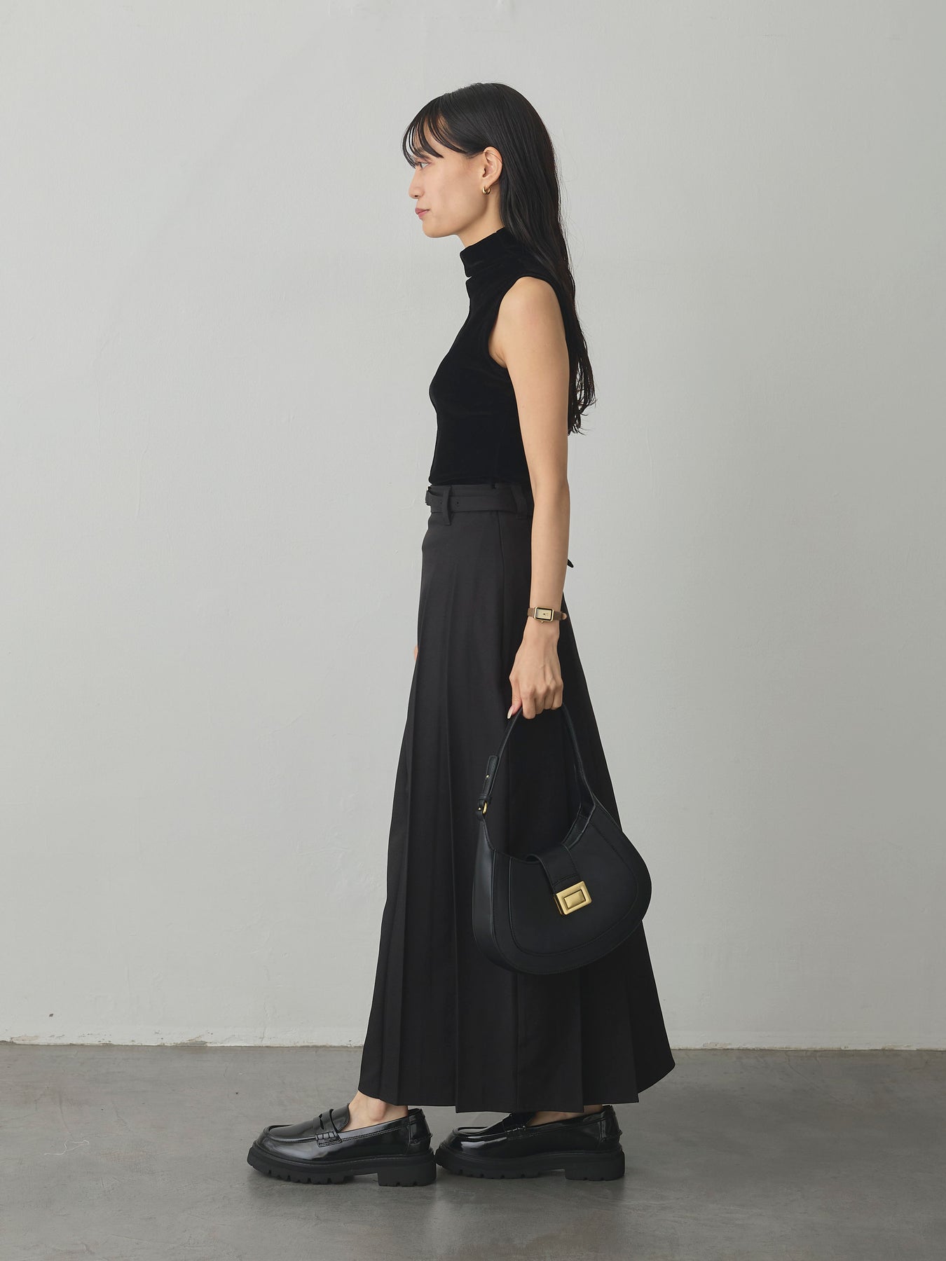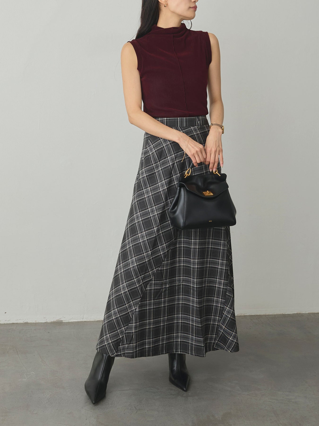 メッシュの抜け感とベロアの質感を組み合わせたノースリーブトップス。シンプルながらも表情のある素材感で、ボトムを選ばず着こなせる一枚です。