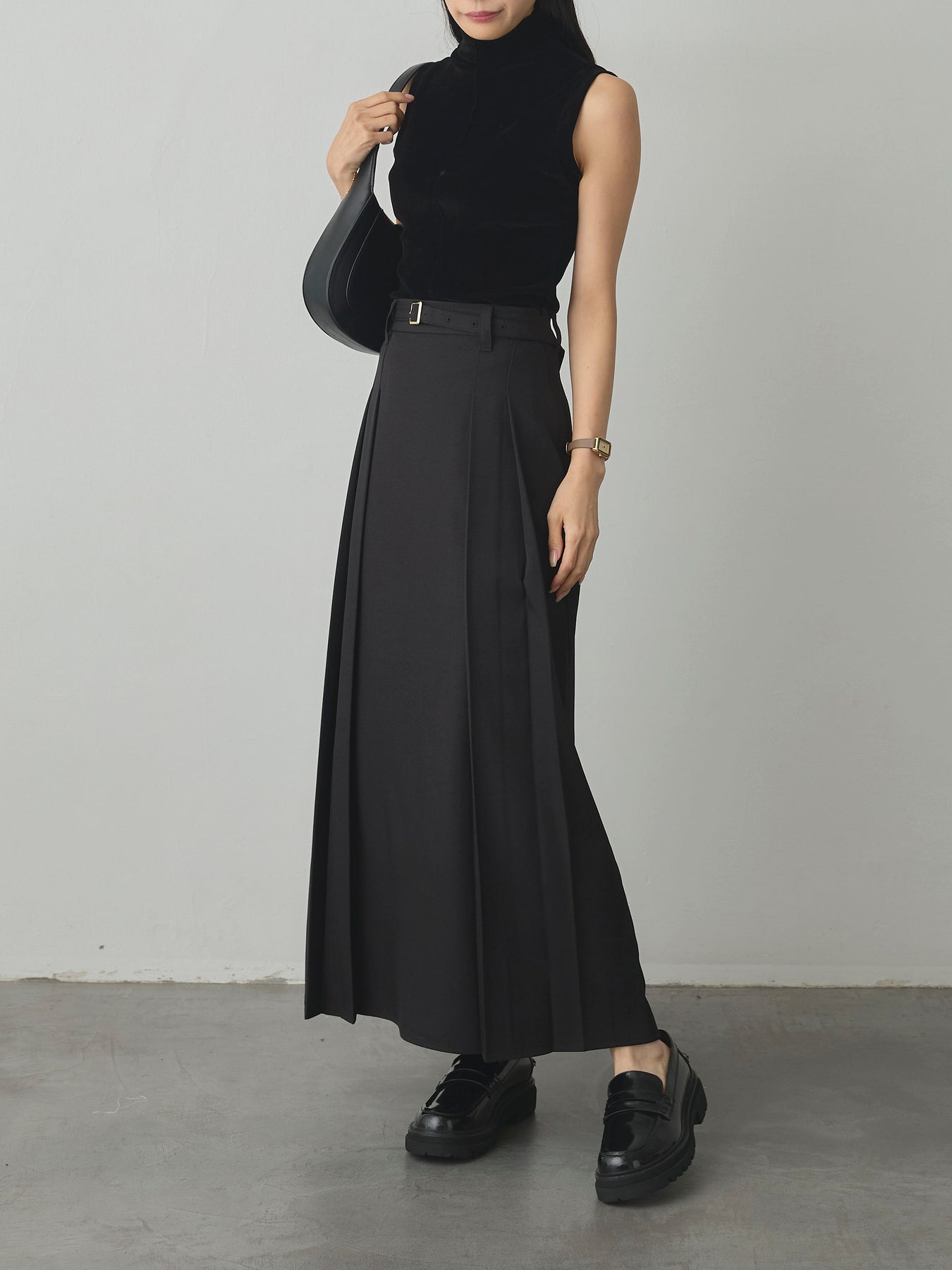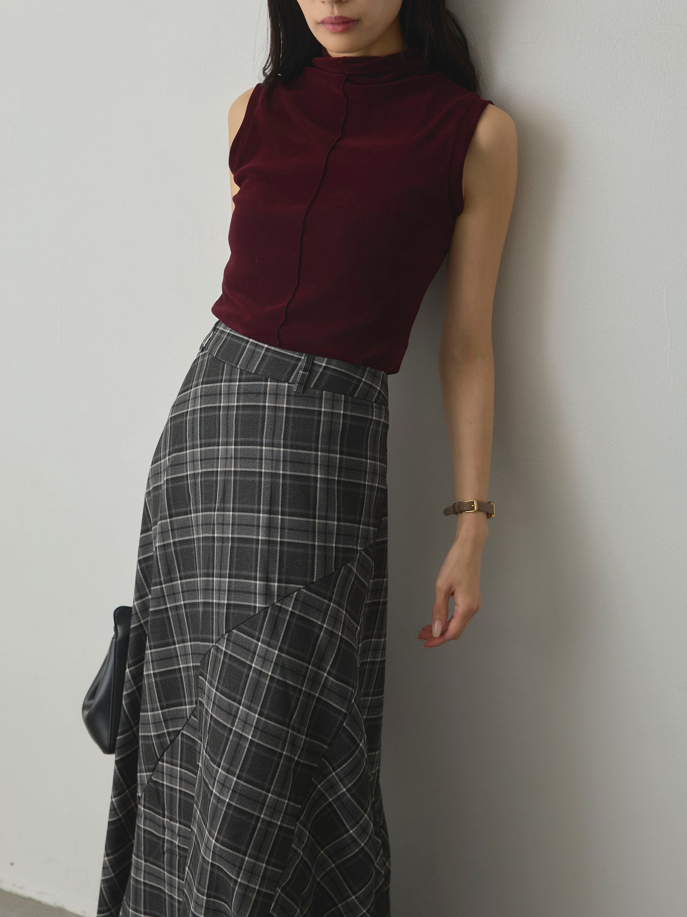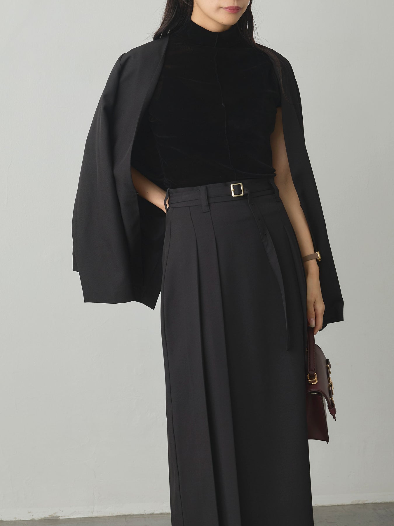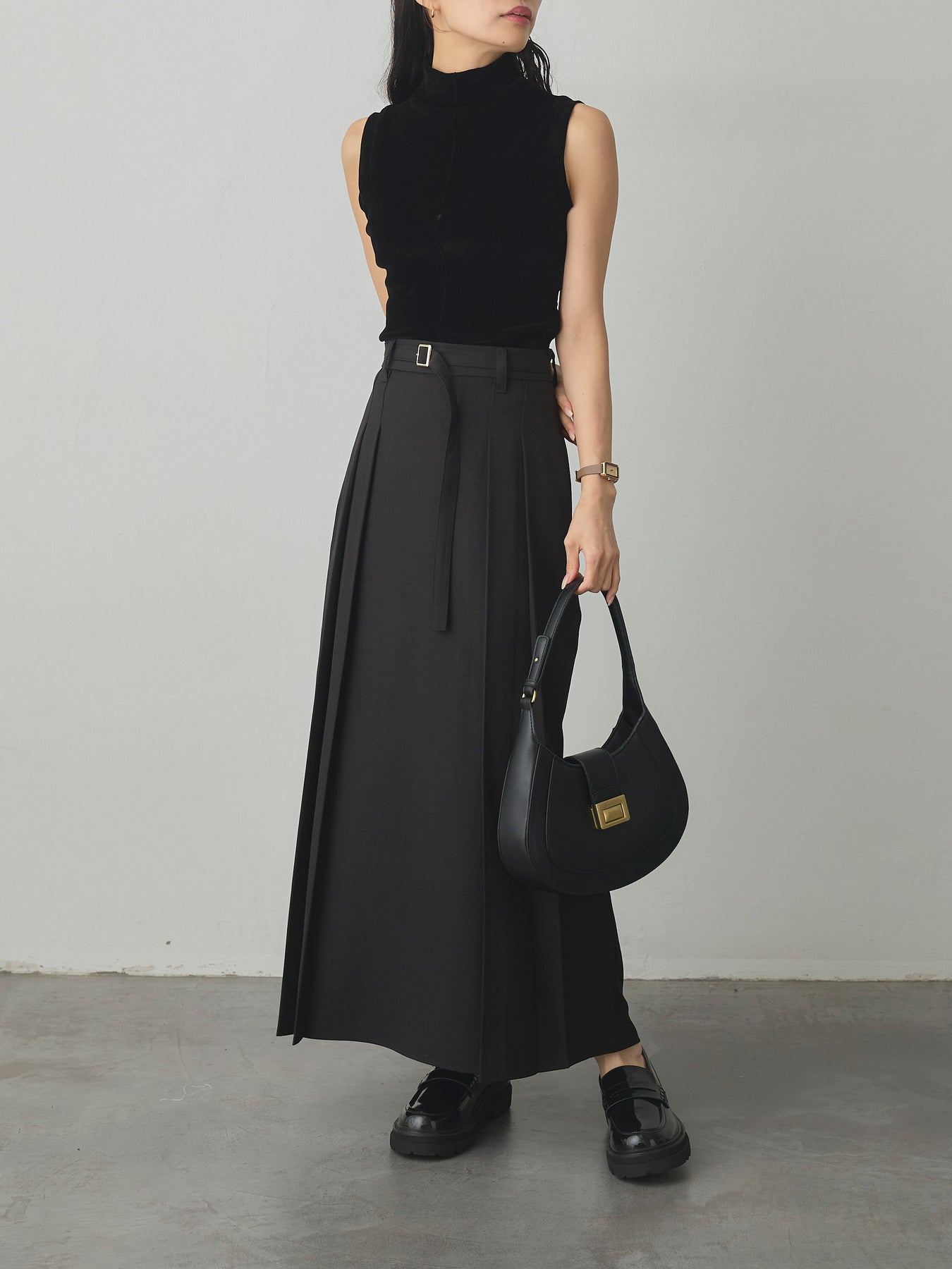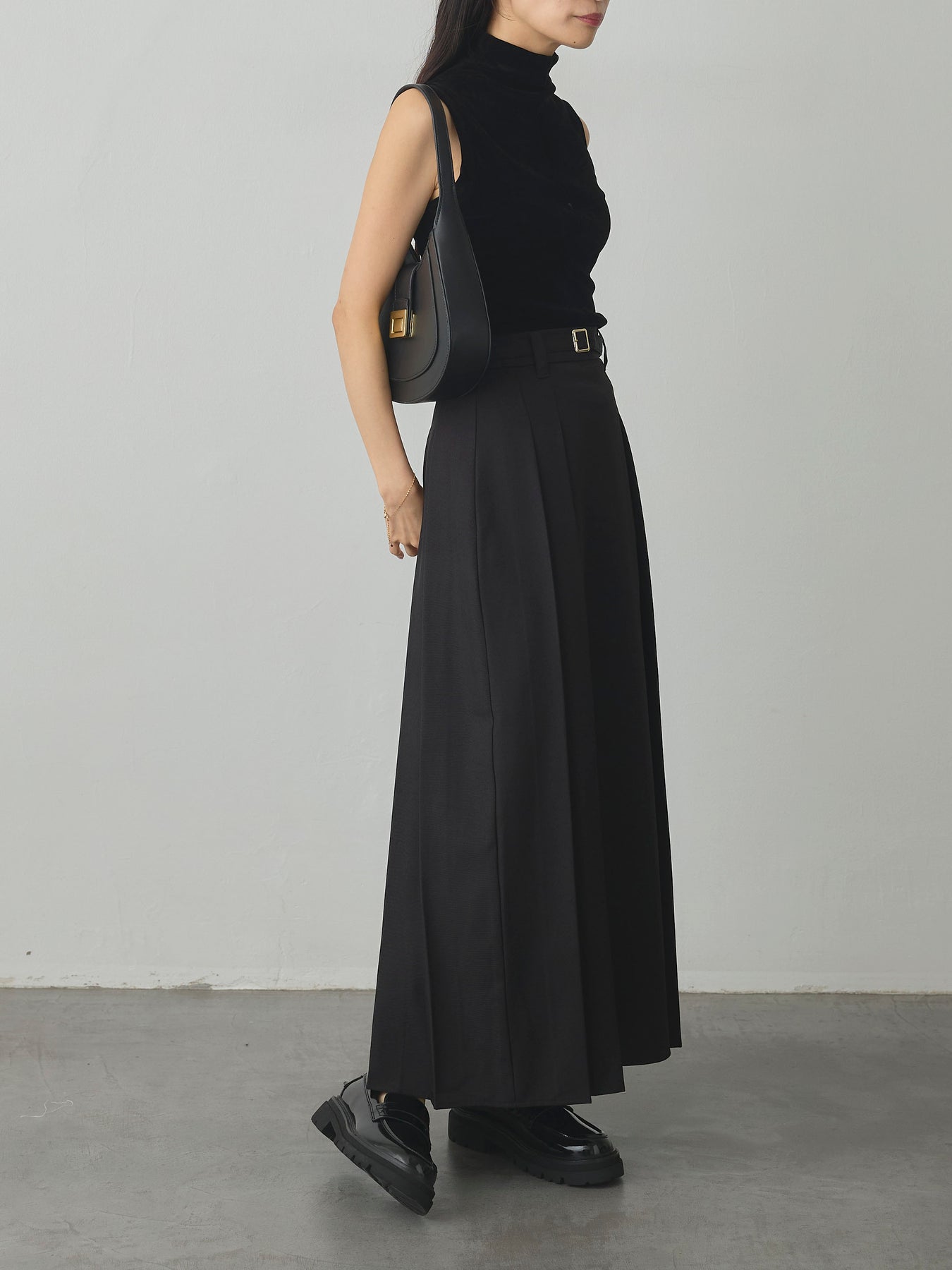 メッシュの抜け感とベロアの質感を組み合わせたノースリーブトップス。シンプルながらも表情のある素材感で、ボトムを選ばず着こなせる一枚です。