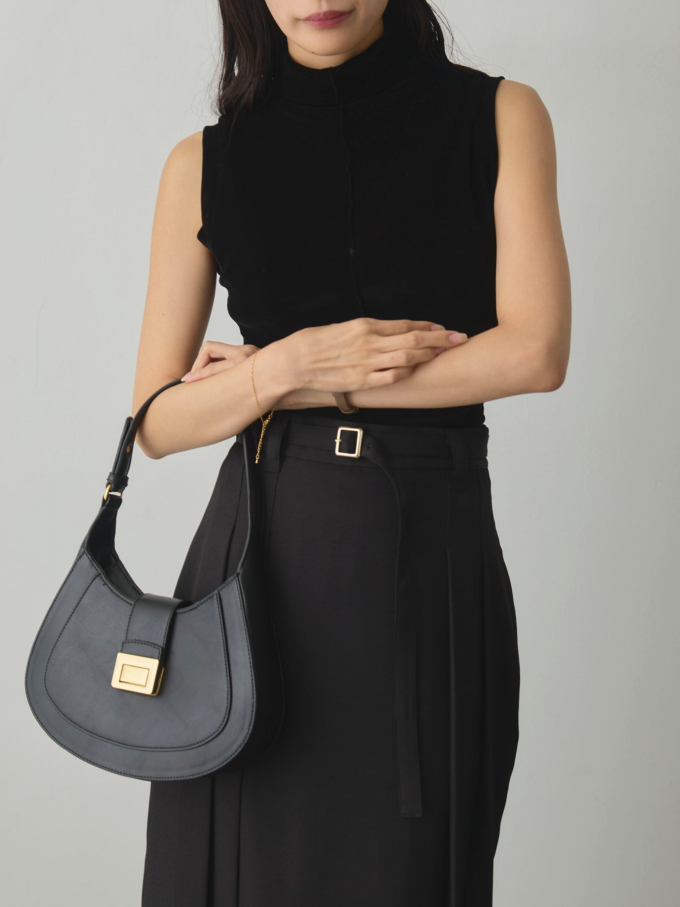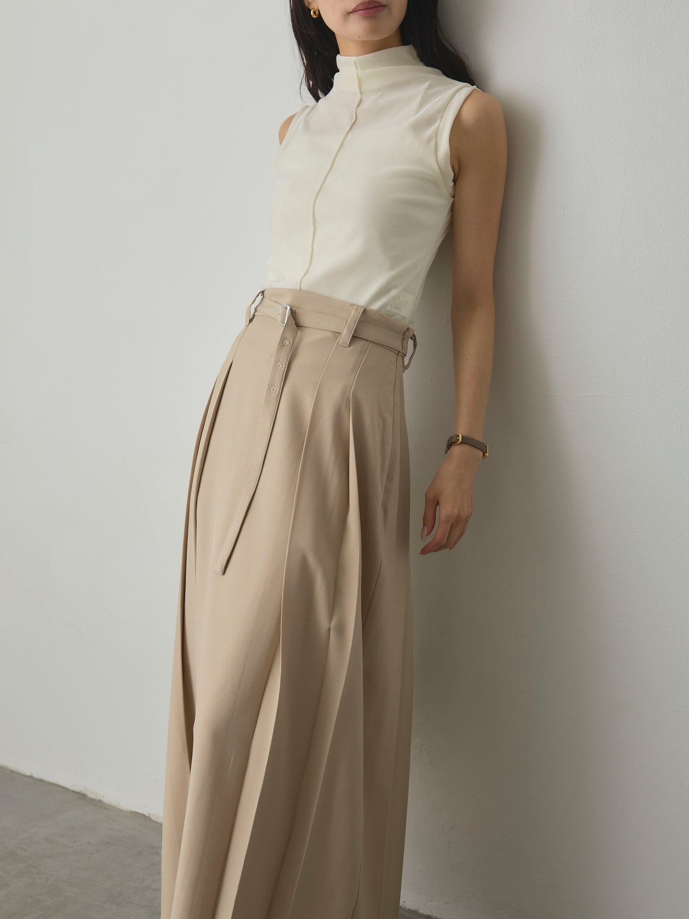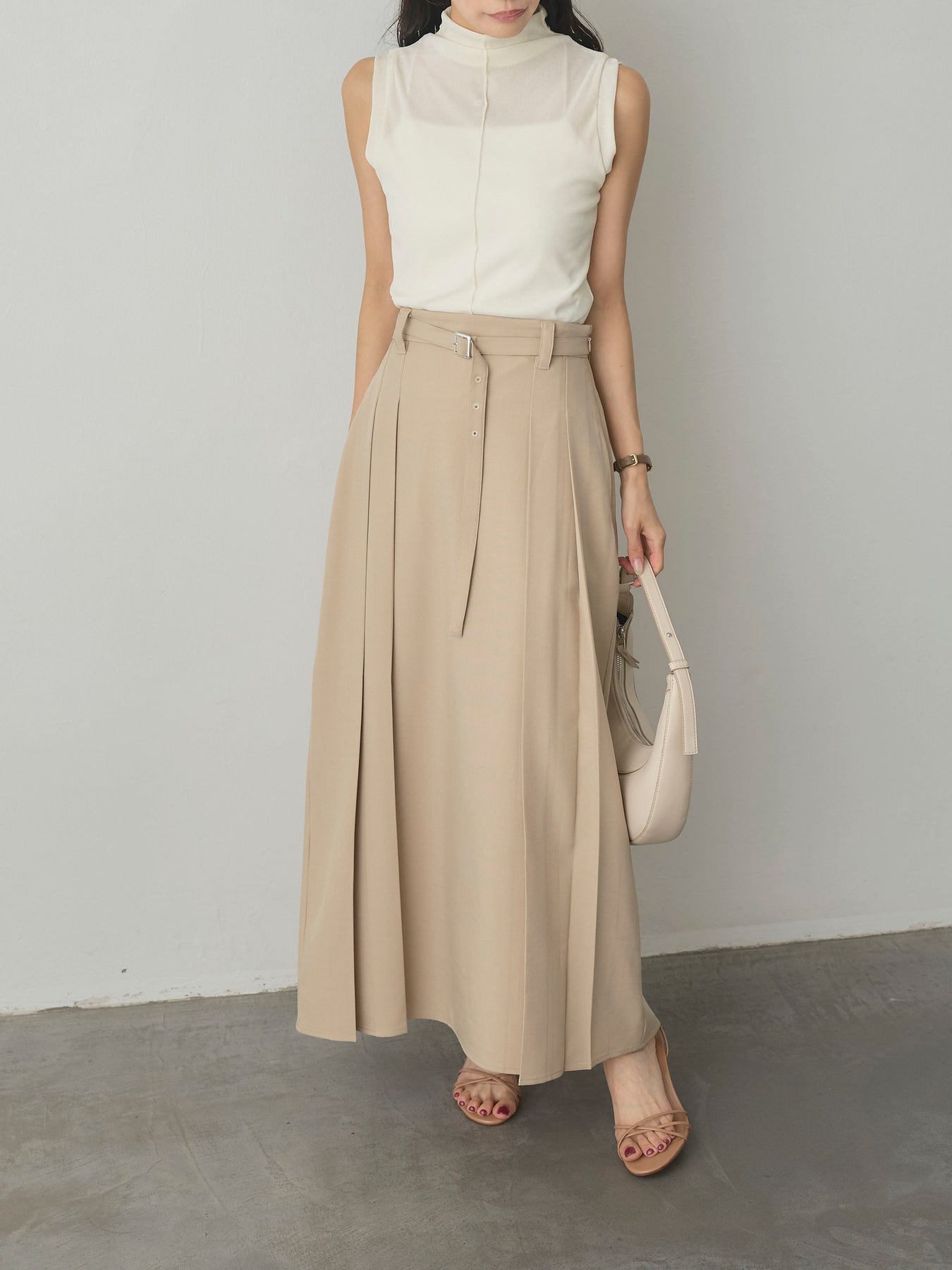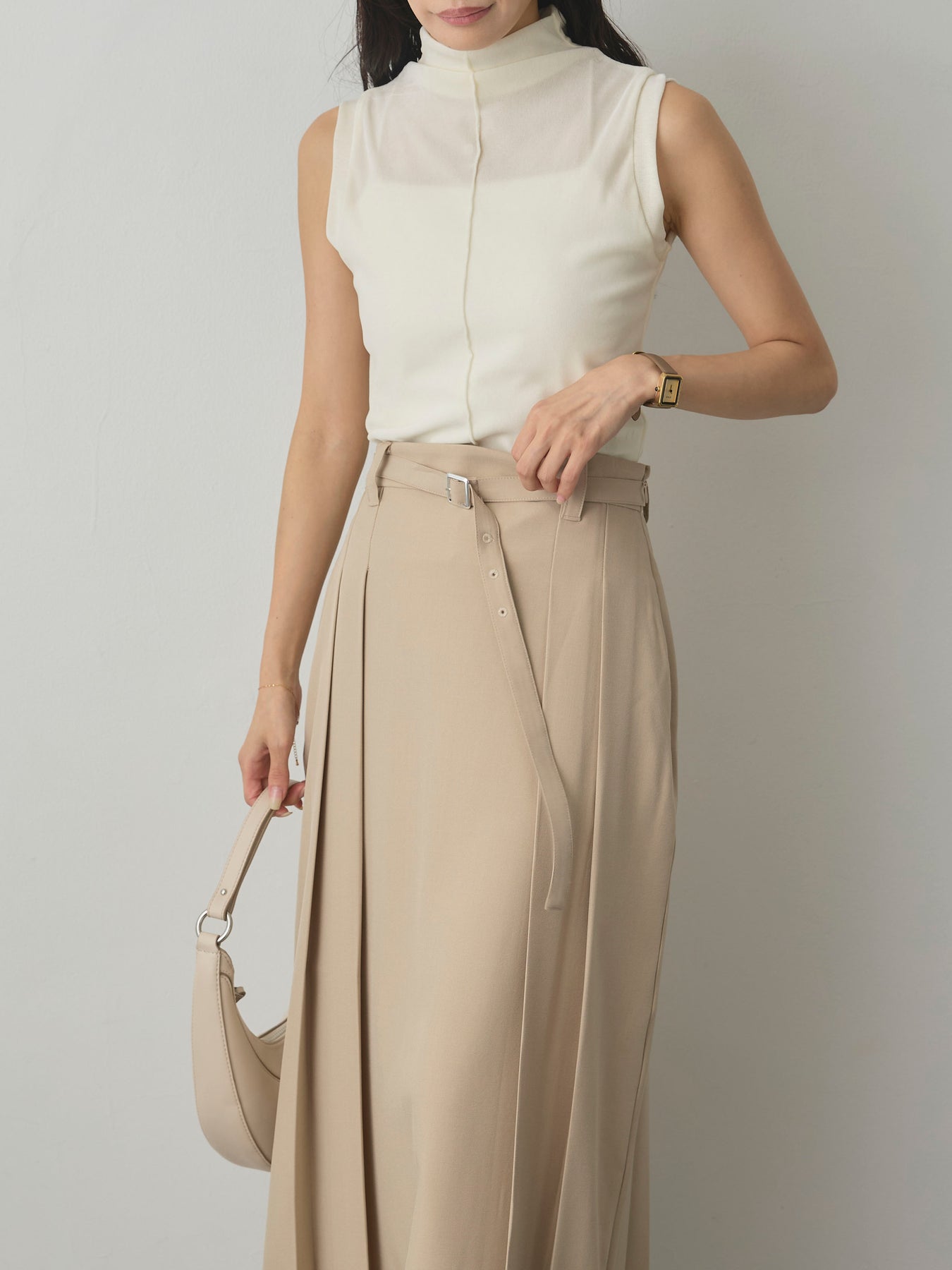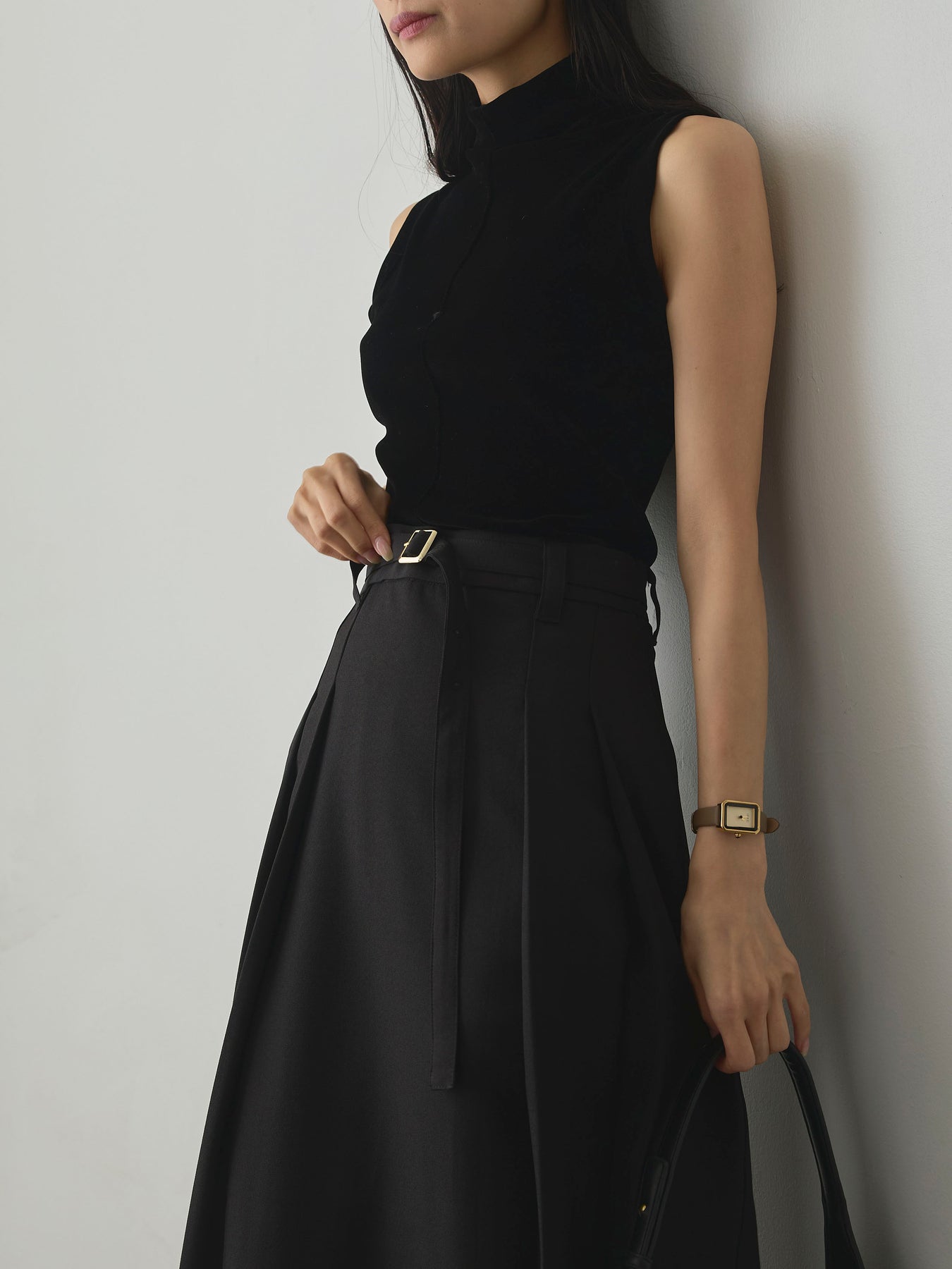 メッシュの抜け感とベロアの質感を組み合わせたノースリーブトップス。シンプルながらも表情のある素材感で、ボトムを選ばず着こなせる一枚です。