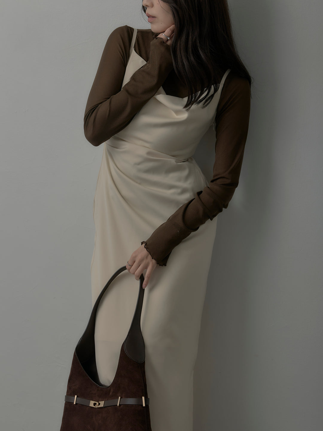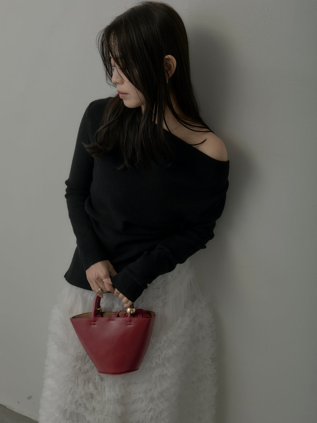【Essential】2wayショルダードレープカットトップス