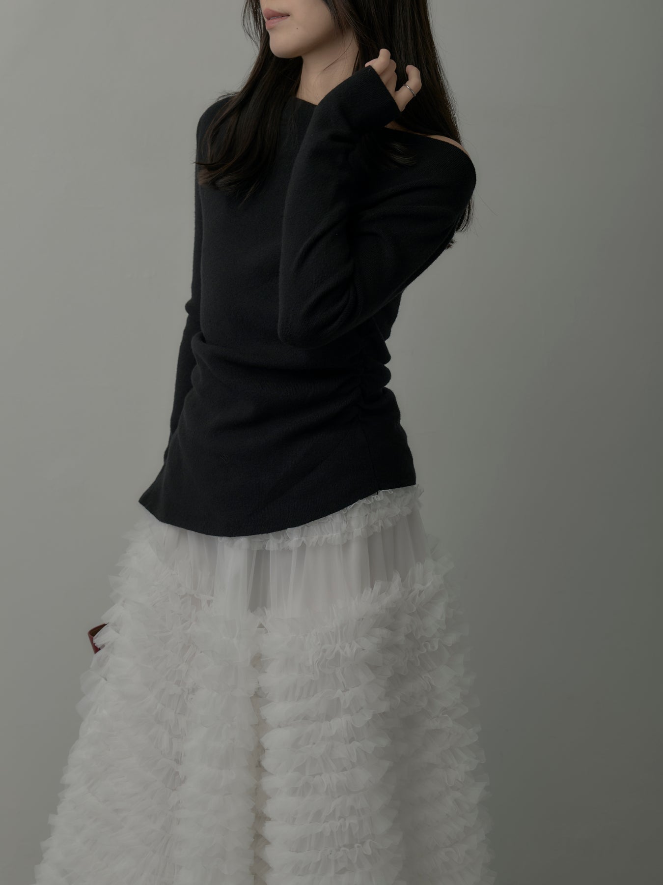 ・お手入れ方法:水温30℃以下手洗いでのお洗濯をお薦めします。素材の特性上、洗濯の際に色落ち・縮みが生じる恐れがありますので単独で・短時間でのお洗濯をお薦めします。裏返してネットに入れ手洗いコースで洗濯、洗濯後は形を整えてから干してください。※タンブラー乾燥は控えてください。 濡れたままの状態で擦れると、色落ち色移りすることがあります。つけ置き洗いや雨や汗で濡れたまま放置は避け、速やかに処理してください。着用中の摩擦や汗、水濡れ、濃淡差があるものとの重ね着にご注意ください。 また、素材の特性上伸びやすい為ハンガーの使用はお控えいただき畳んで保管ください。