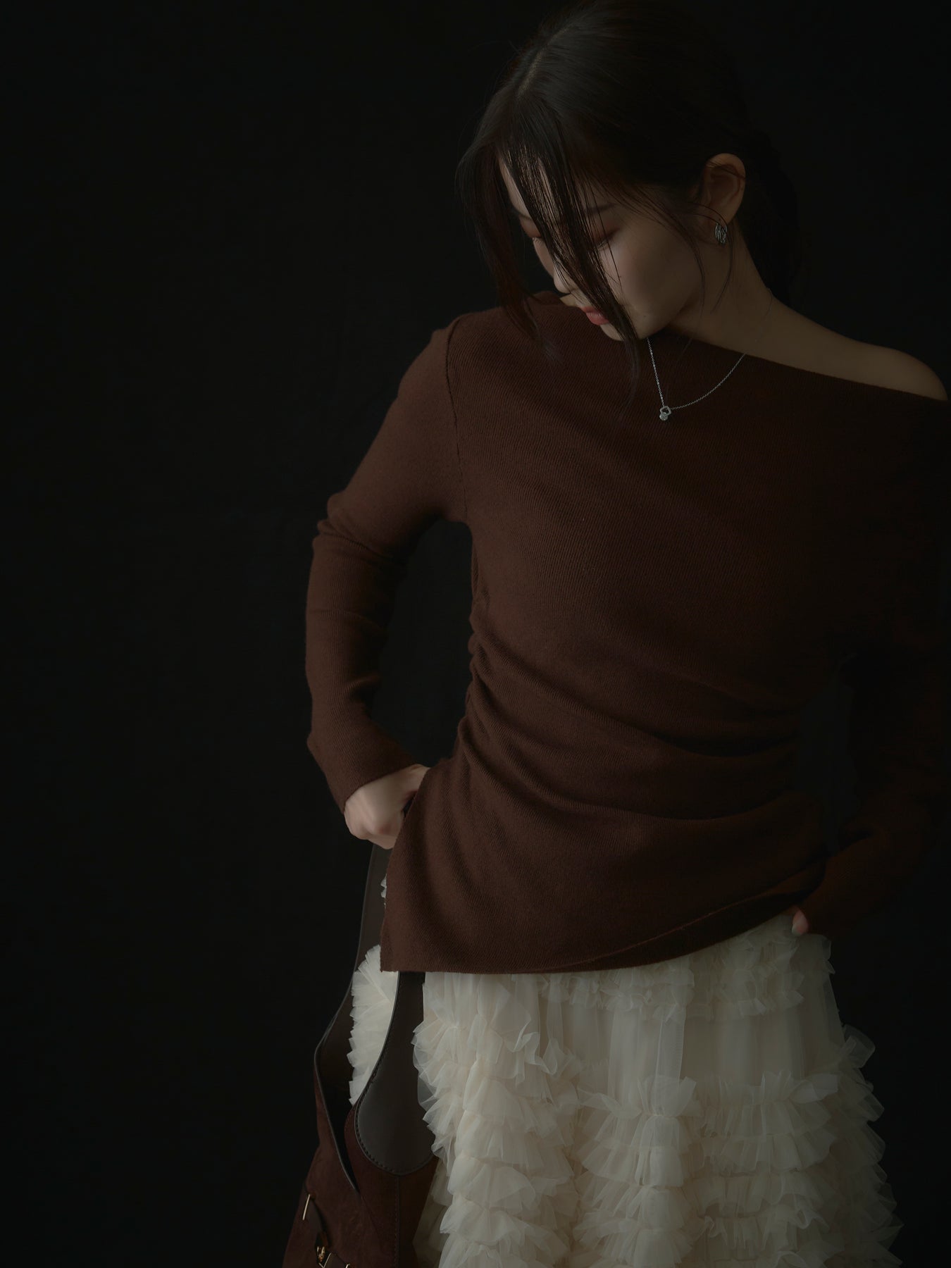 デコルテラインをきれいに見せるボートネックニットトップス。トレンドのサイドスリットデザインが抜け感を生み、軽やかな印象に仕上げます。 しなやかな風合いで着心地も良く、シンプルながら洗練されたスタイルを叶える一枚。