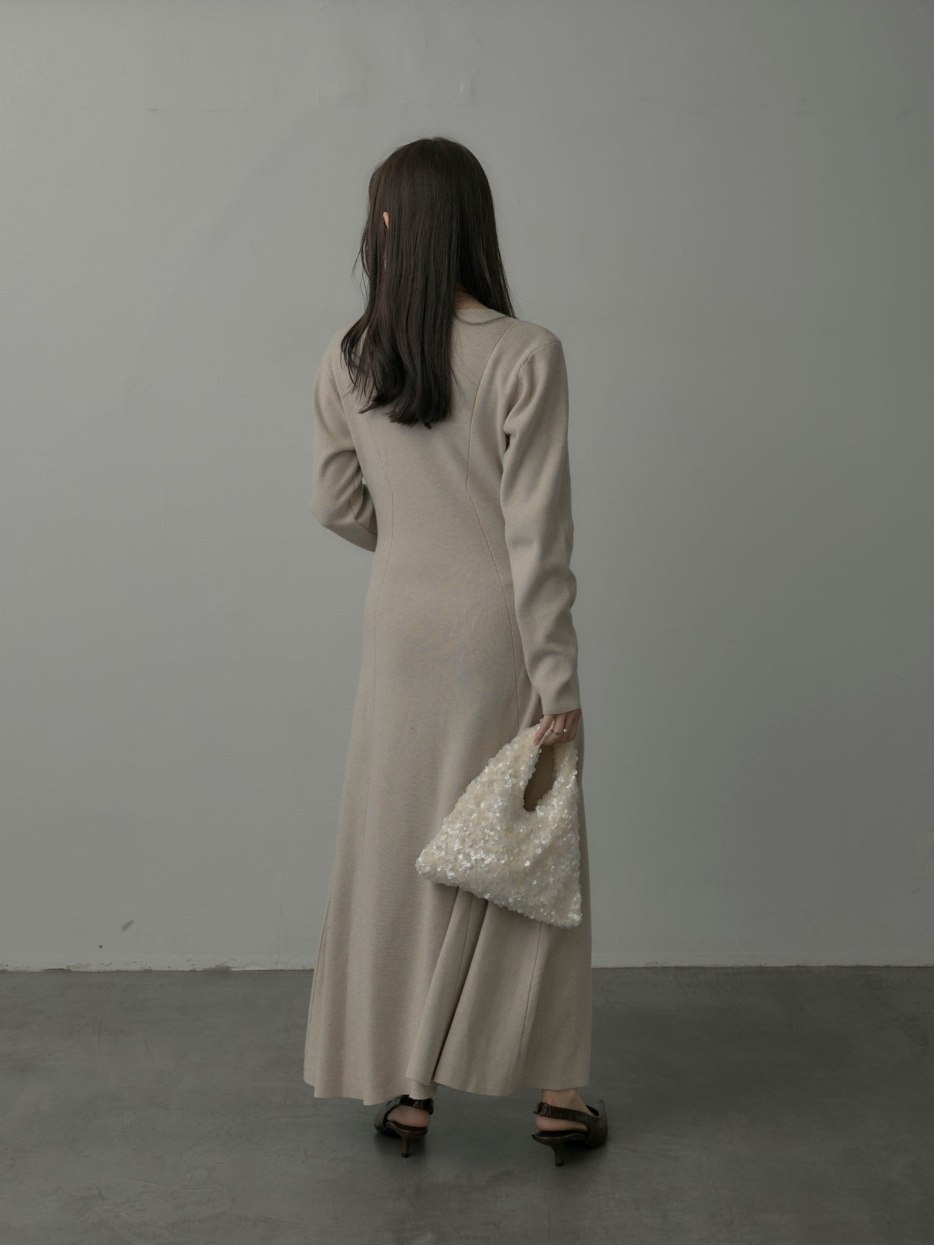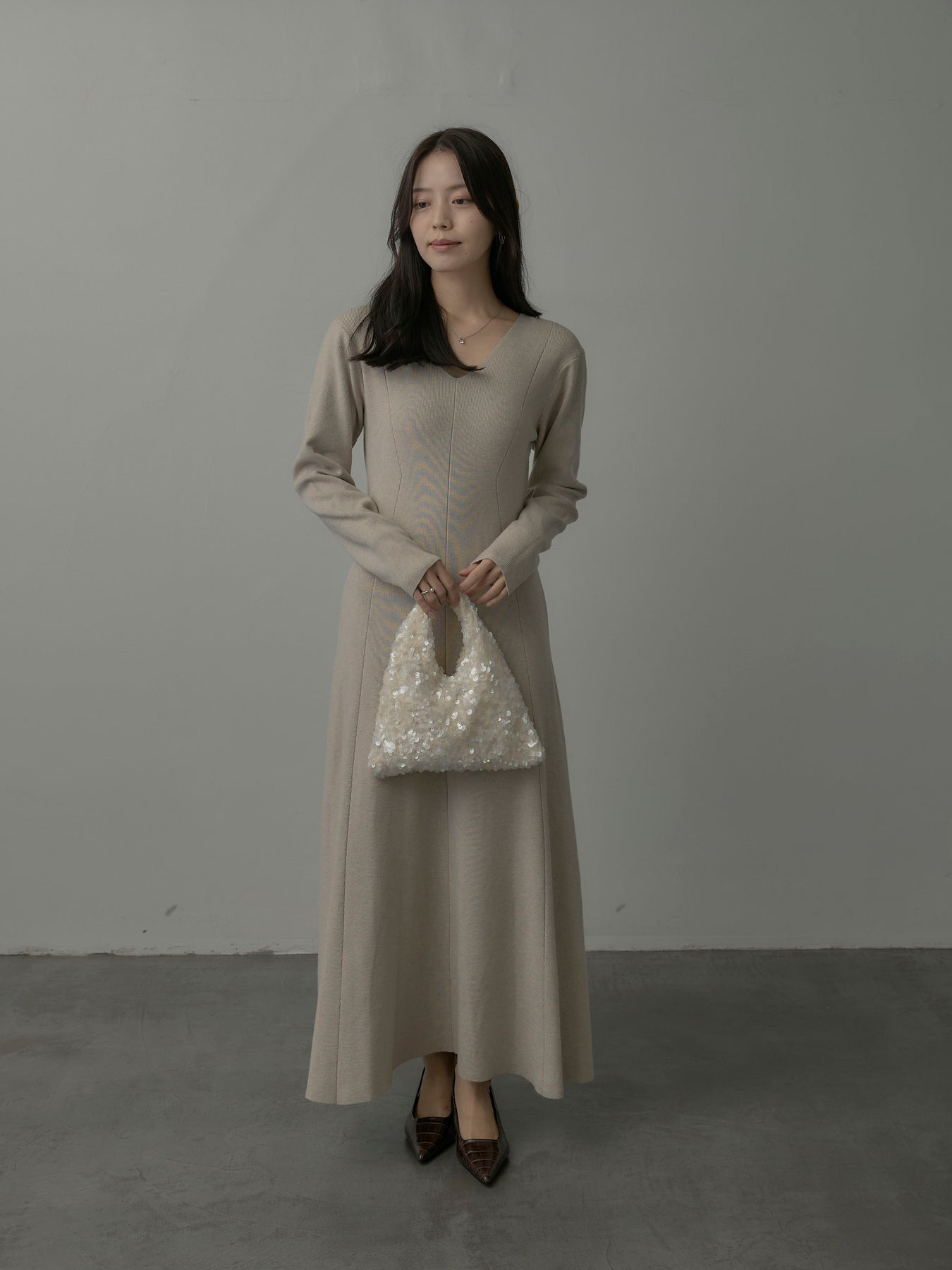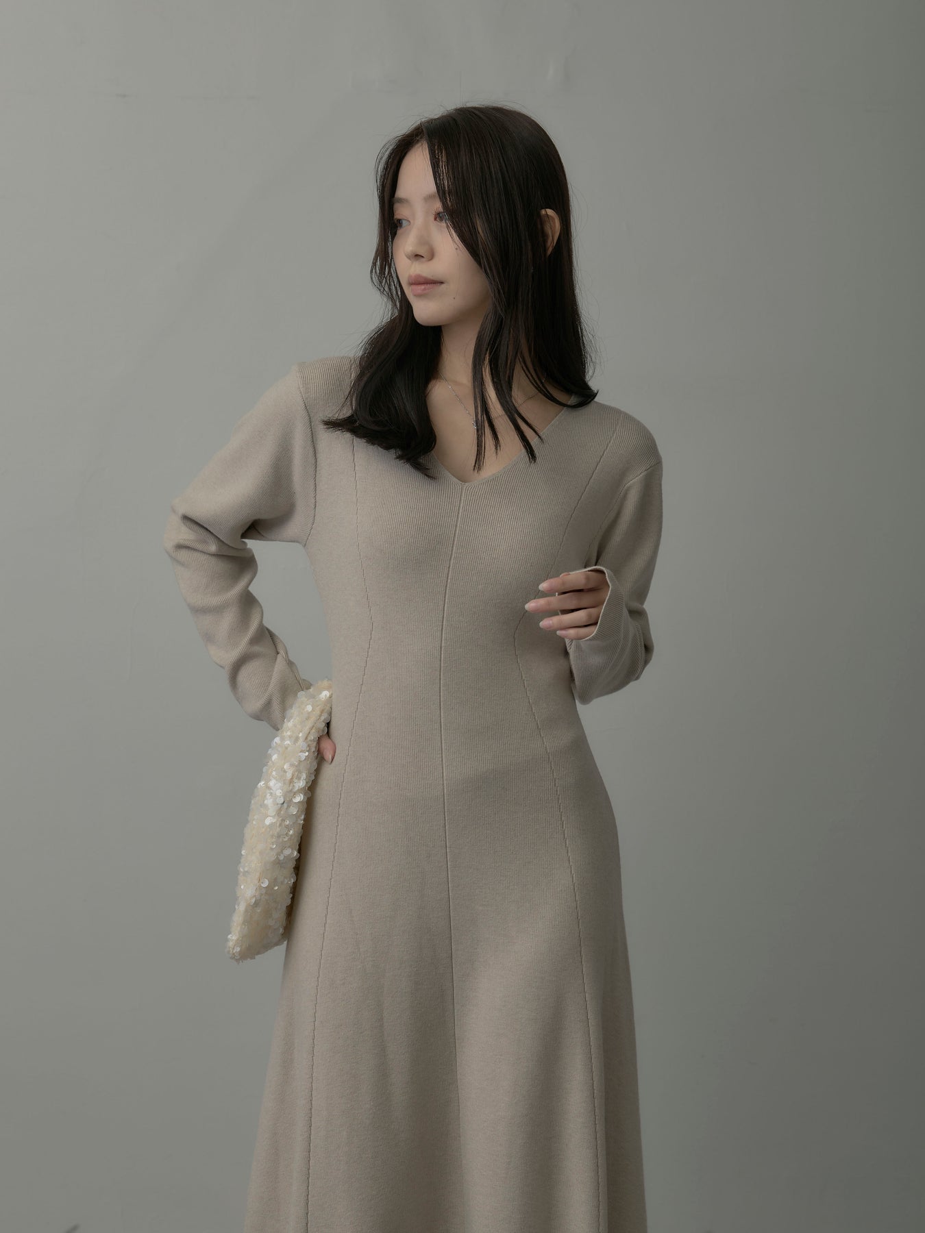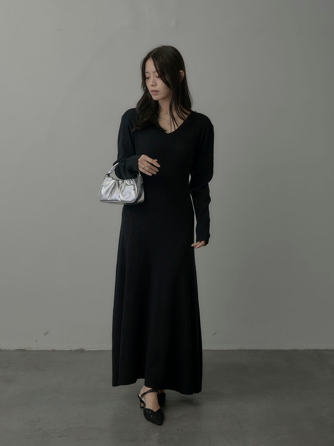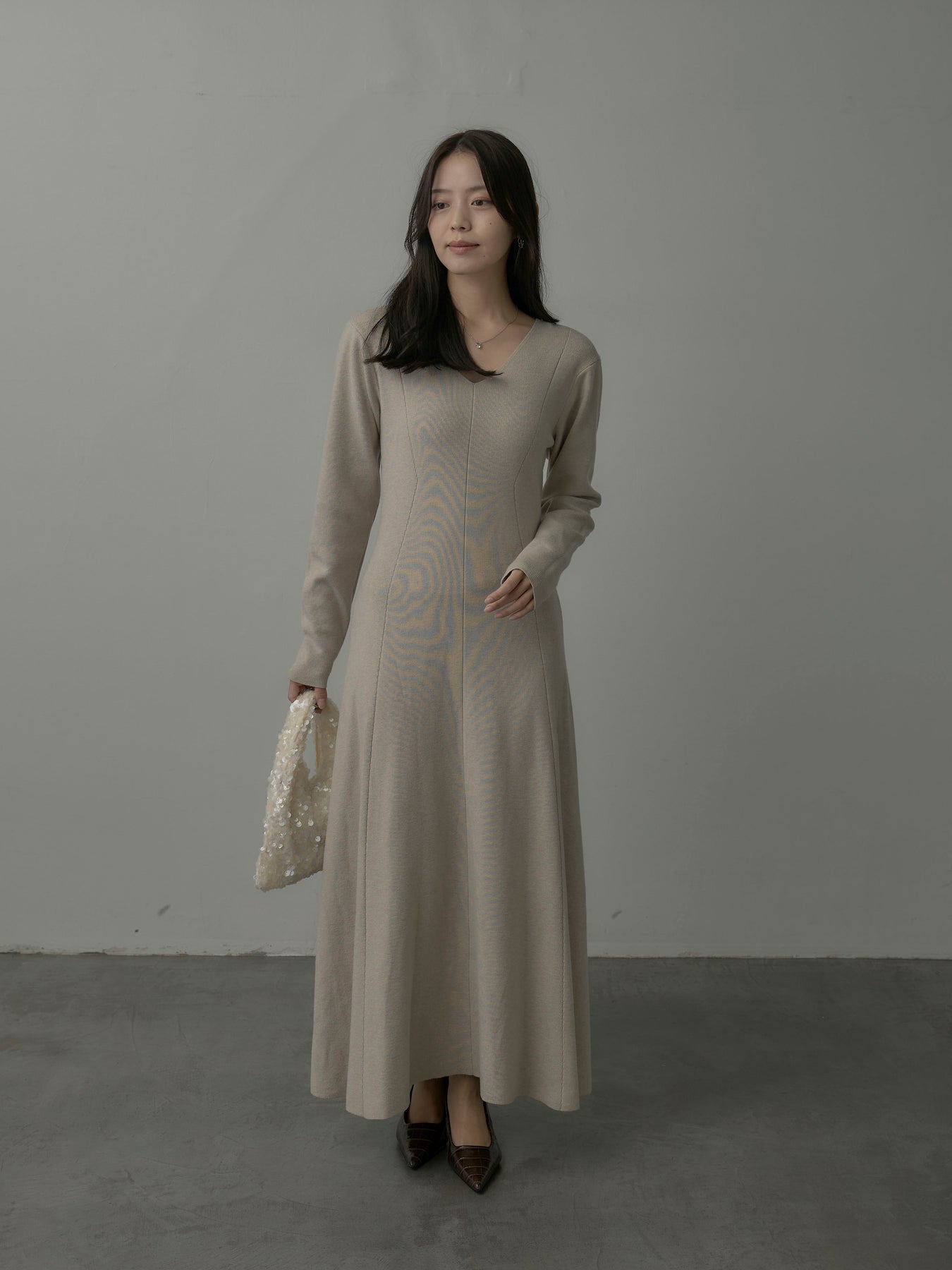 柔らかなニット素材で仕立てたVネックロングワンピース。フロントに入ったシームデザインでスッキリ縦長のシルエットに魅せてくれます。着膨れしないので冬のデイリーウェアにぴったり。ややフレアシルエットになっており無地でも華やかさを添えてくれます。