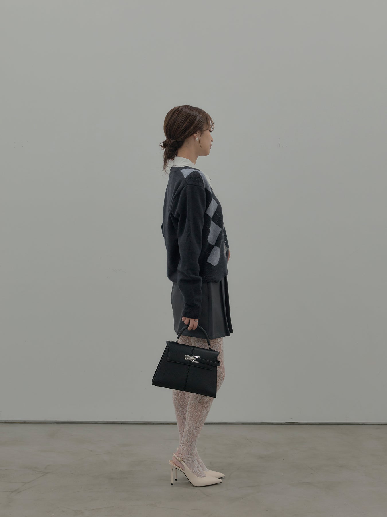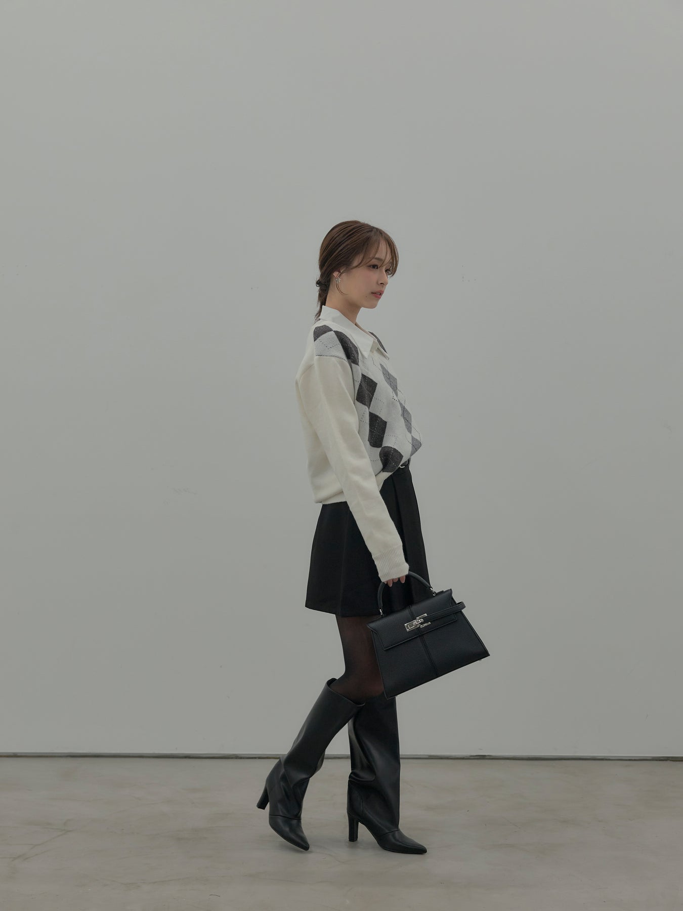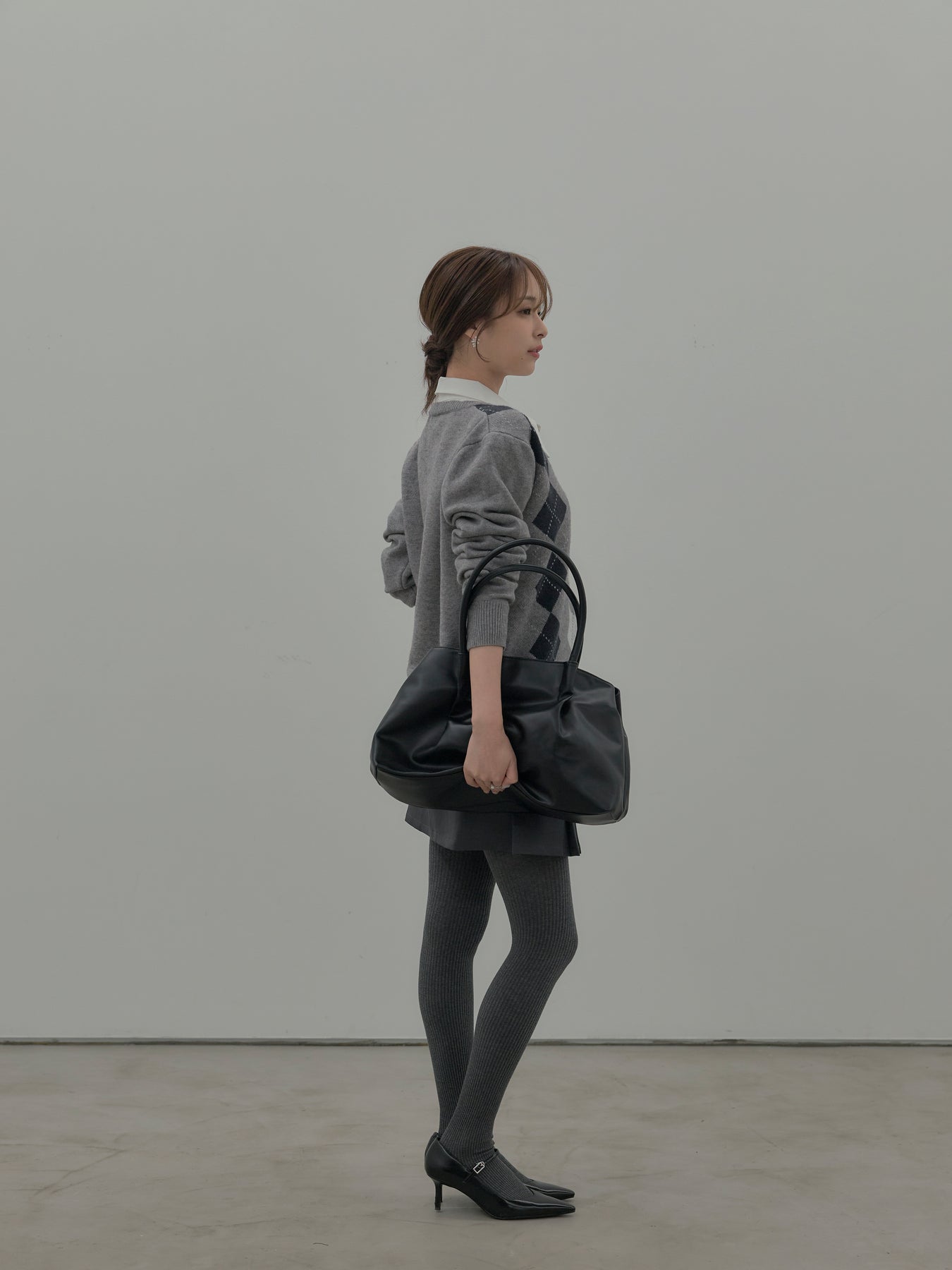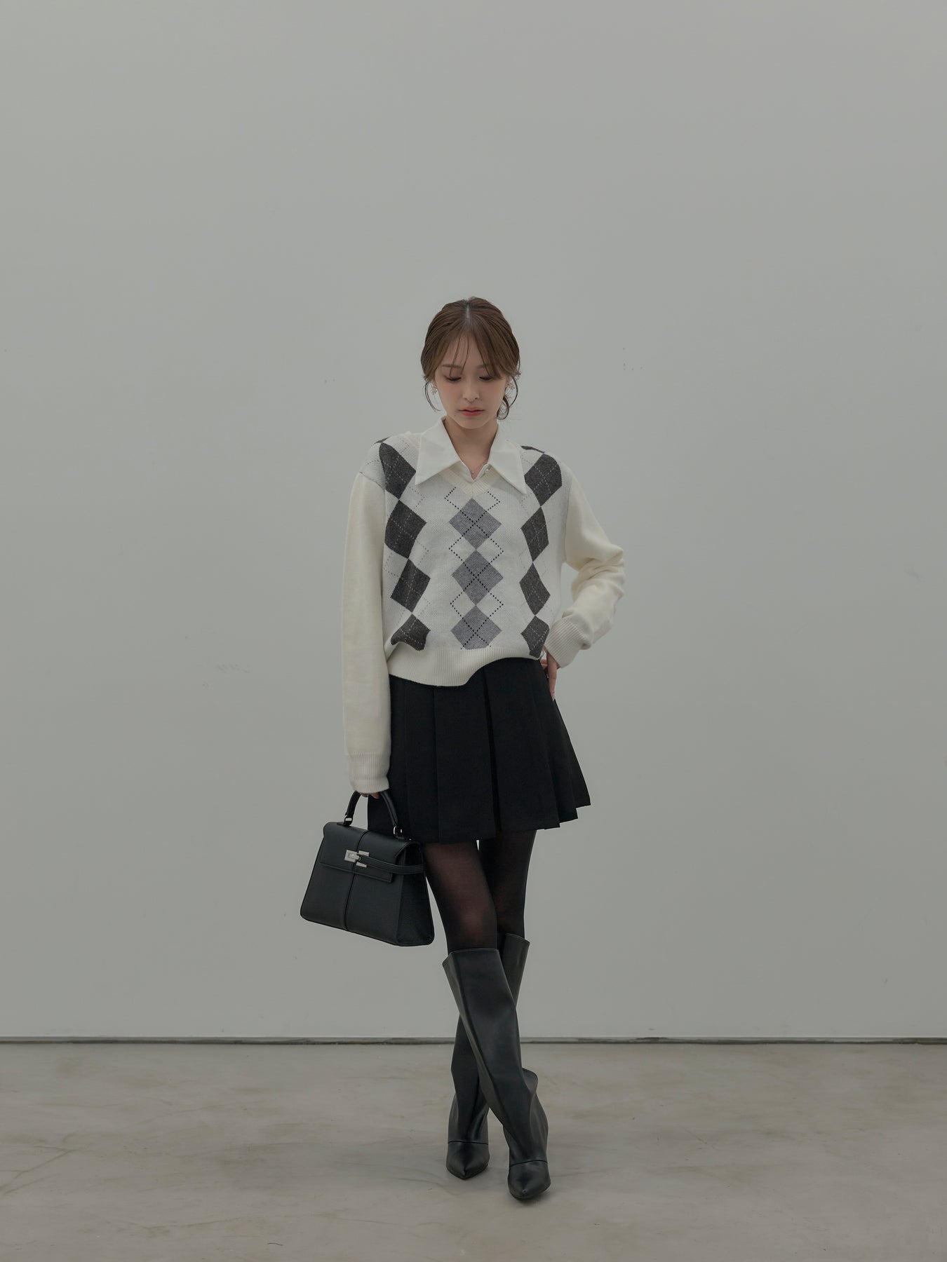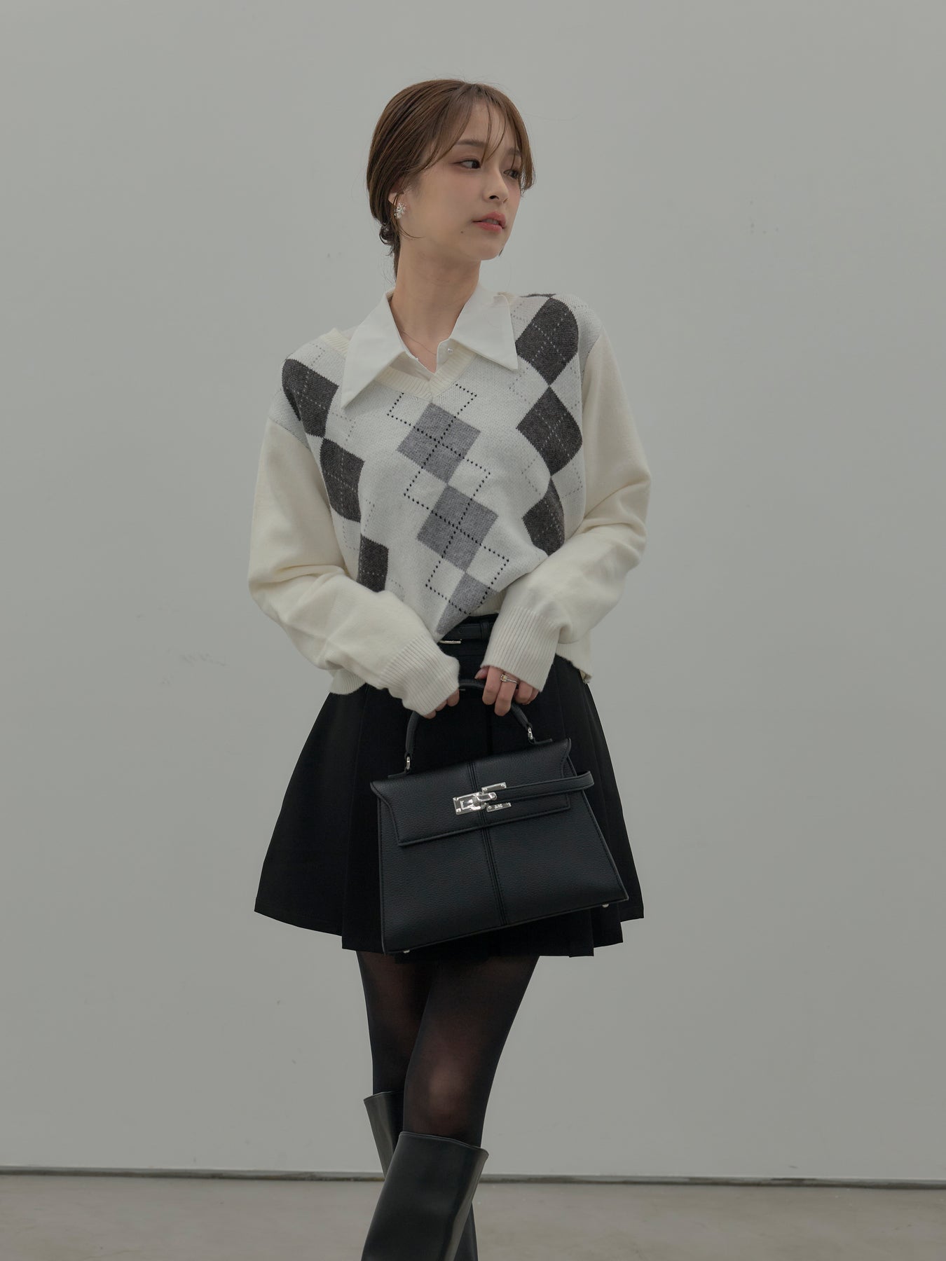 ベーシックカラーの配色がデイリーコーデに馴染みやすいアーガイル柄のプルオーバー。程よくゆとりのあるシルエットでスタイリングしやすいサイズ感です。中にサテンシャツを仕込んで大人のスクールガールテイストに仕上げるのがnairoのおすすめスタイル。ミニスカートだけでなくお手持ちのパンツやスカートにも合わせやすいです。