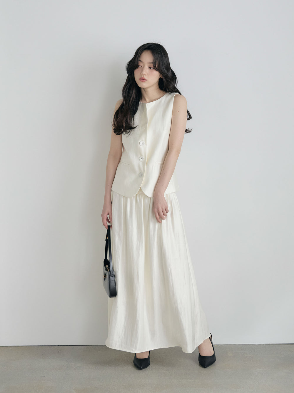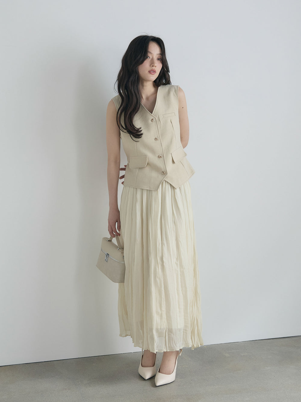 テーラードノースリーブベスト&ワッシャープリーツスカートSET UP