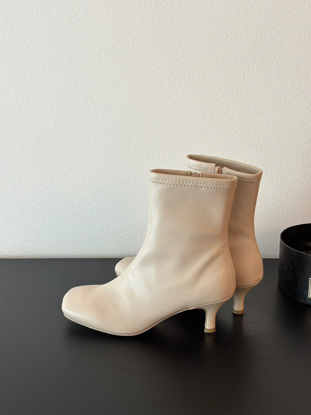 洗練されたスクエアトゥに、カーブを描く華奢なヒールがモード・フェミニンどちらにも馴染む万能ブーツ。大人レディなスタイリングがお好みの方におすすめです。