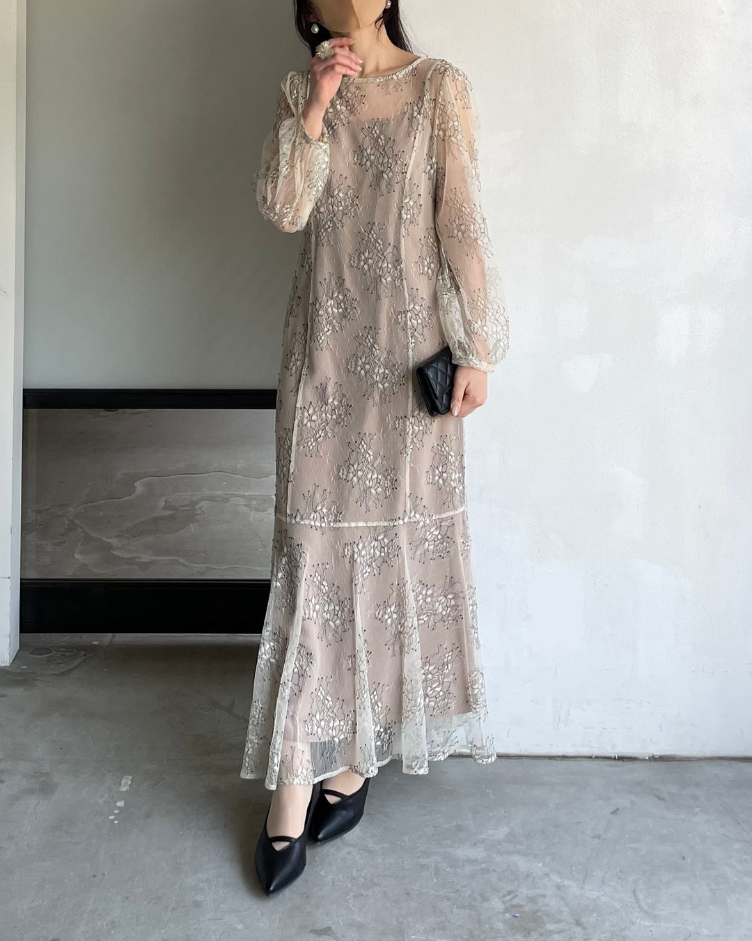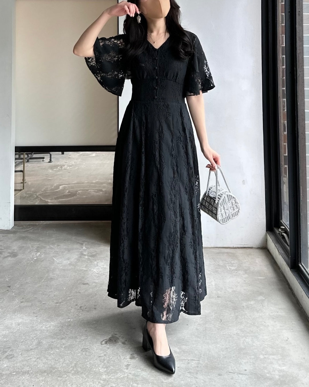 繊細なレースドレスにバッグとパンプスのBLACKカラーで引き締めをプラスすれば、メリハリのあるドレススタイルの完成。シャープなパンプスは華やかなドレスをより引き立ててくれます。