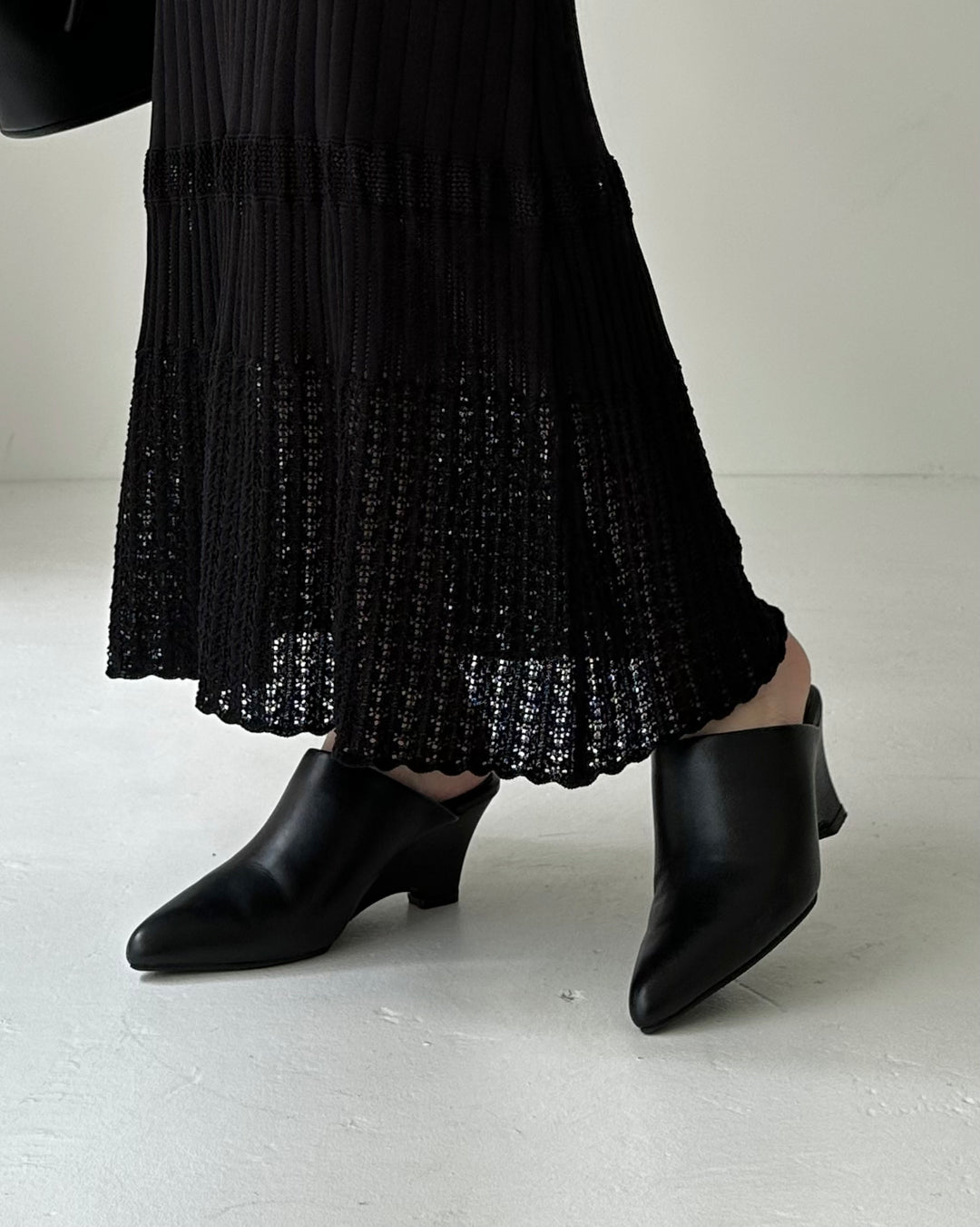 女性らしいしなやかなシルエットが魅力のワンピースにミュールをコーデすれば、シャープなトゥデザインが大人レディ度をグッと高めてくれます。6㎝ヒールでスタイルアップも抜かりありません。