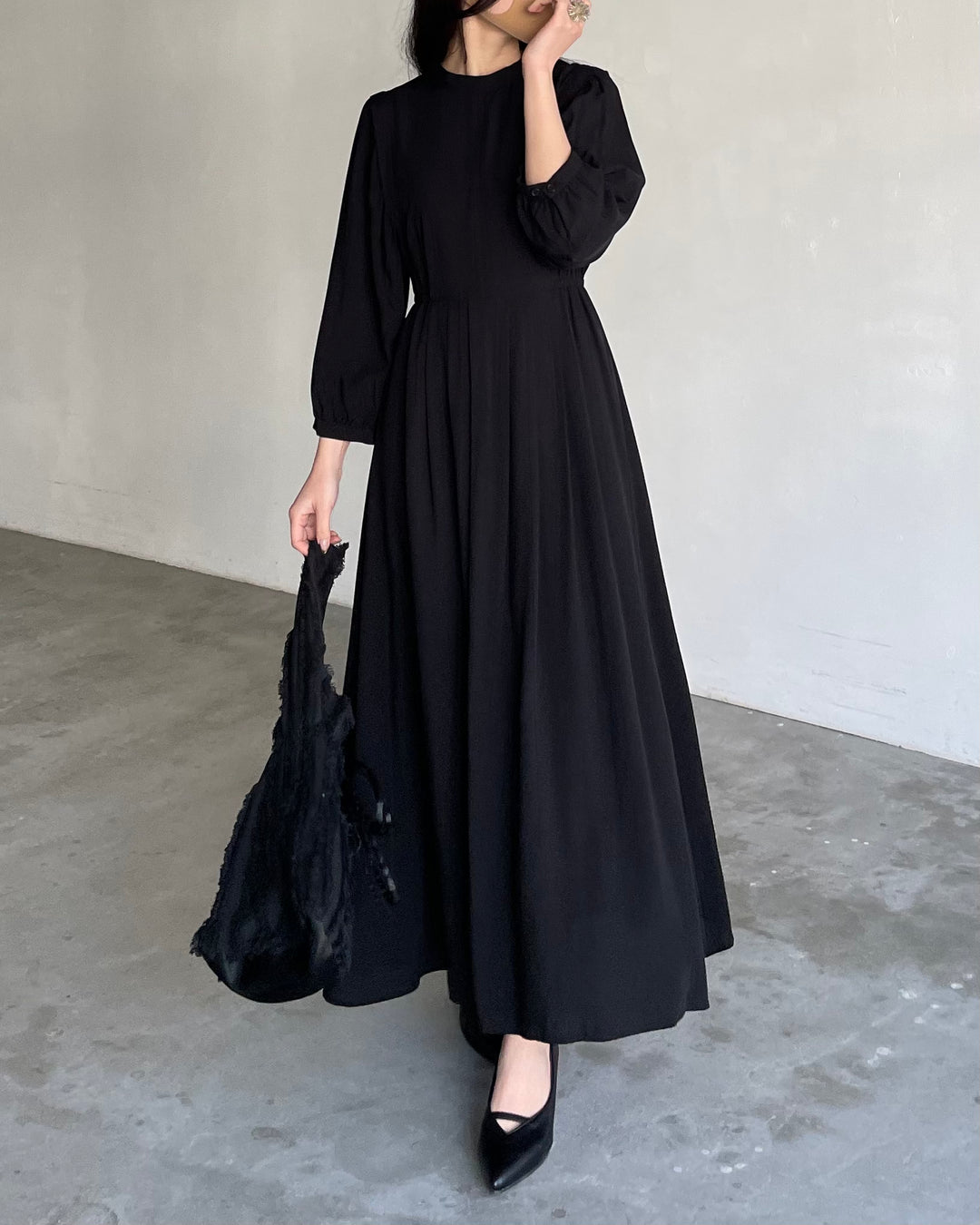 柔らかいブラウス生地の軽やかなワンピースに、パンプスのスタイリッシュさが引き立つ上品BLACKコーデ。シンプルながら、ワンピースとパンプスのシルエットがしっかり女性らしさを演出してくれます。