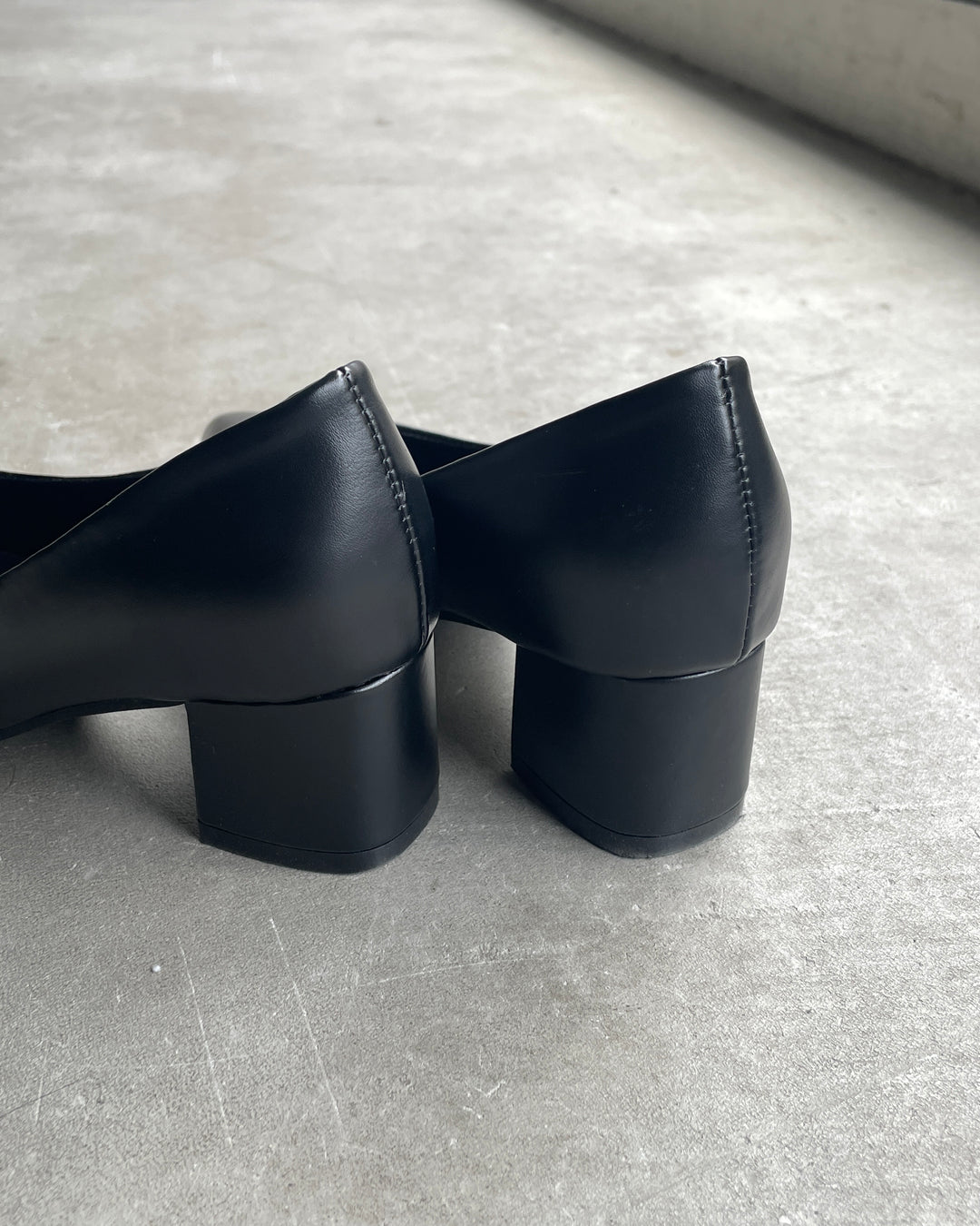 感動の歩きやすさでスタッフからも大人気のパンプス。歩く時の安定感だけでなく美脚効果もあるチャンキーヒールがポイントです。