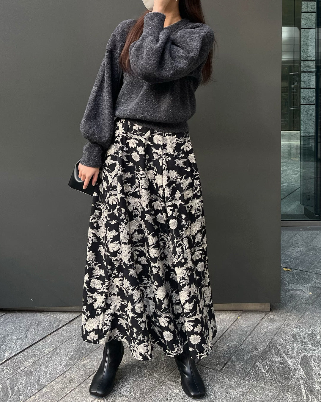 繊細な花柄の主役スカート。バックゴム仕様なのでウエストをすっきり引き締めながらもヒップまわりを綺麗にカバーしてくれます。