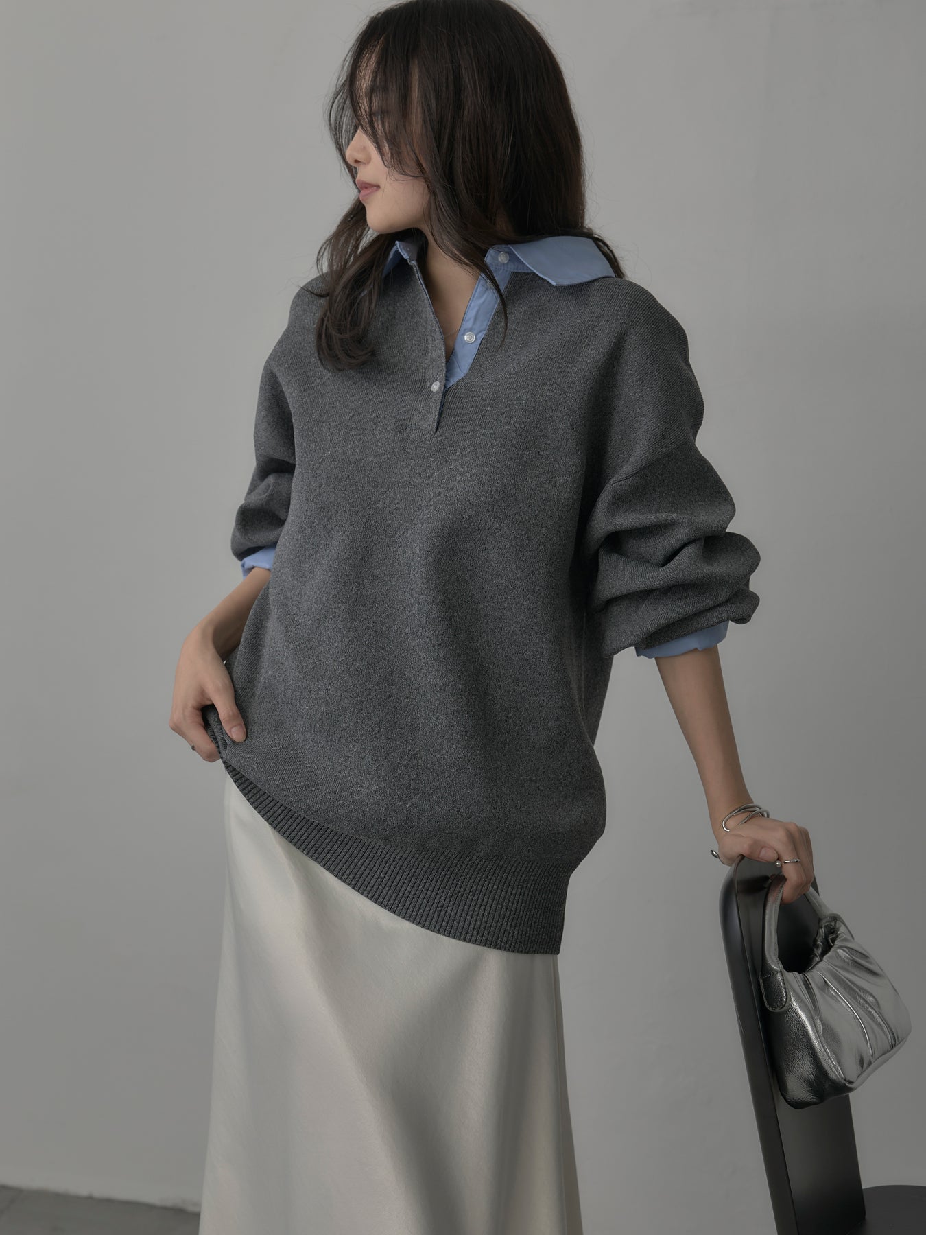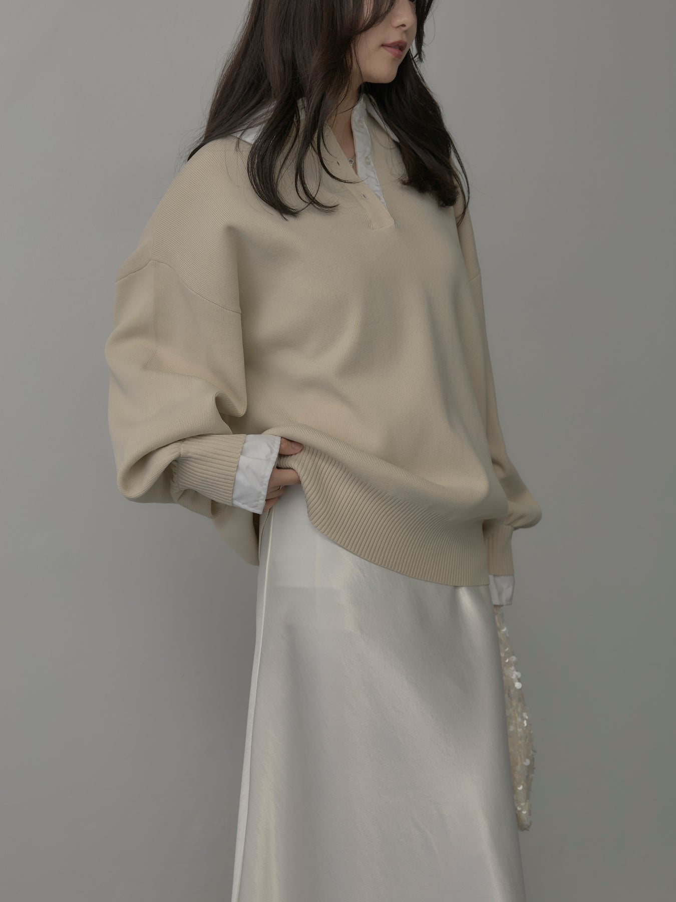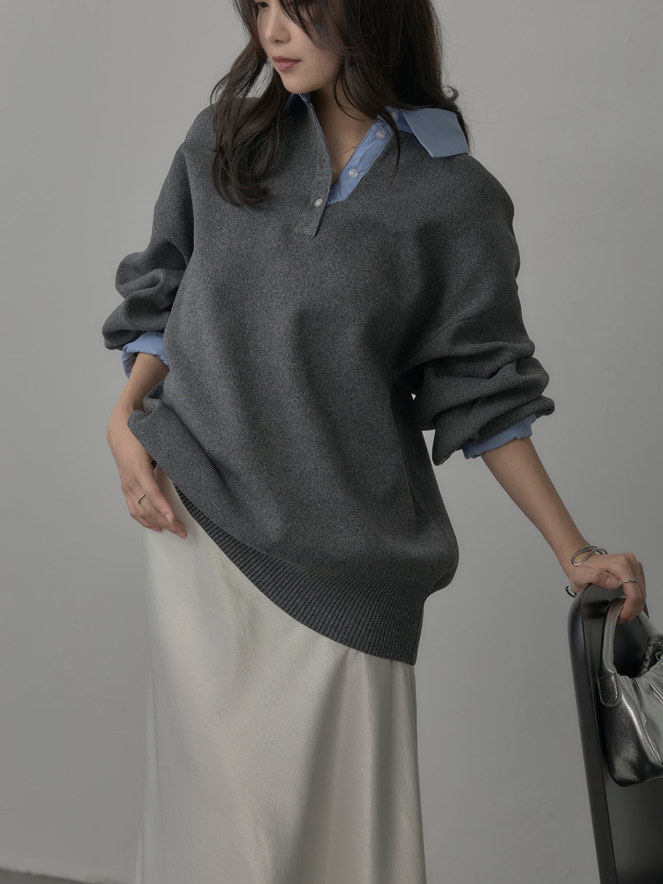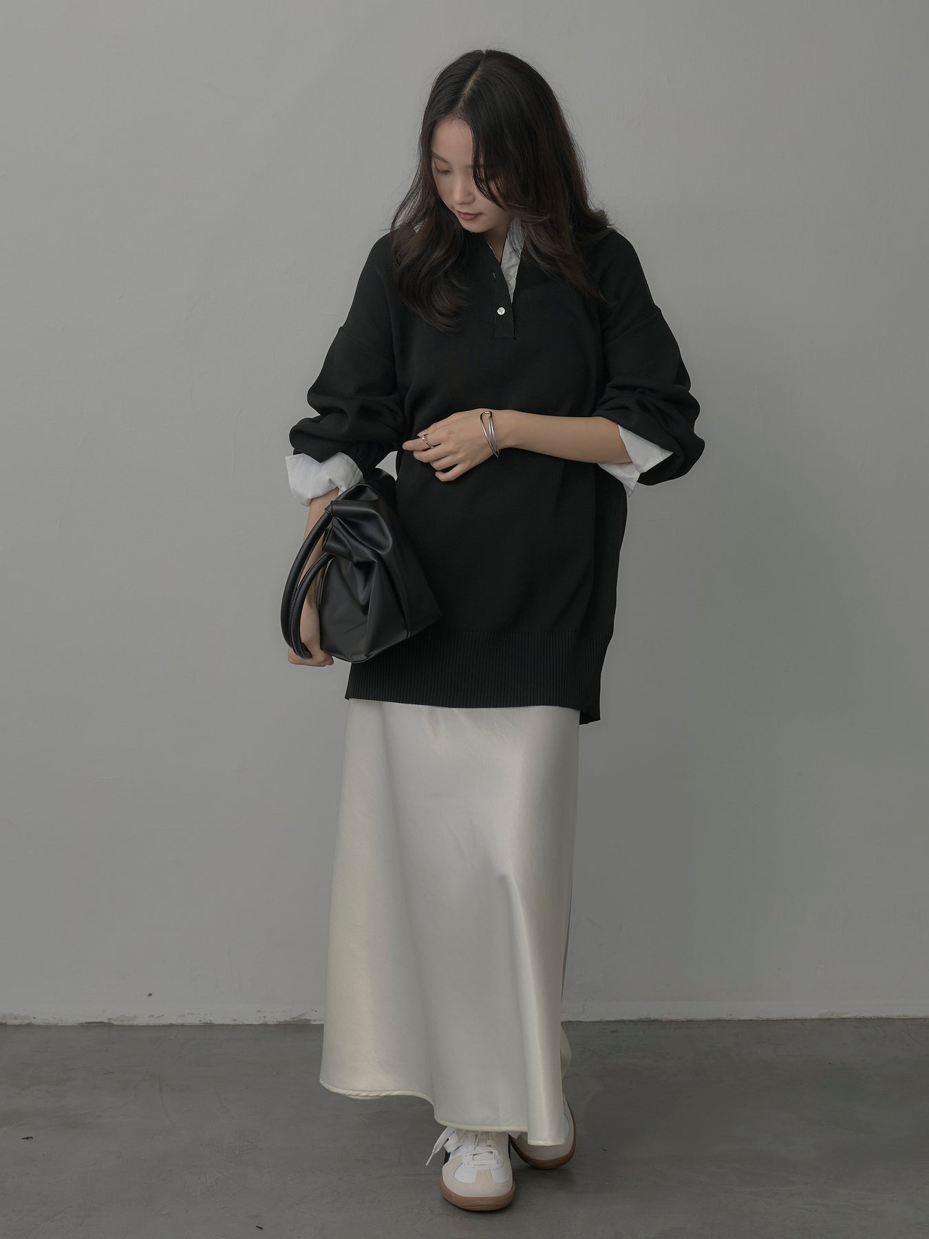 襟付きデザインで気軽にレイヤードスタイルが楽しめるポロトップス。ゆったりとしたシルエットにドロップショルダーを組み合わせ、リラックス感のある着心地に仕上げています。カジュアルながらも襟元がきちんと感をプラスし、幅広いボトムと好相性。