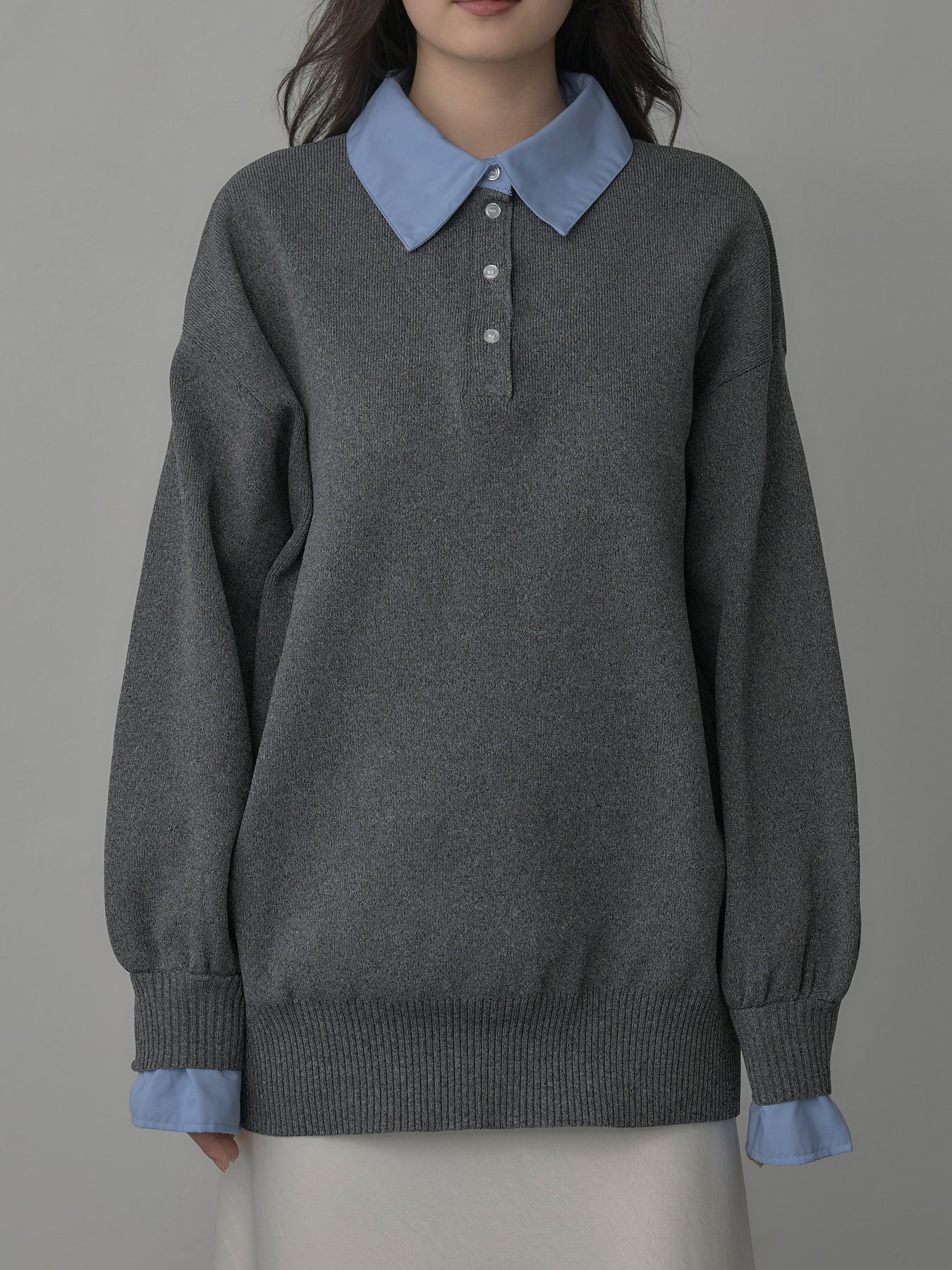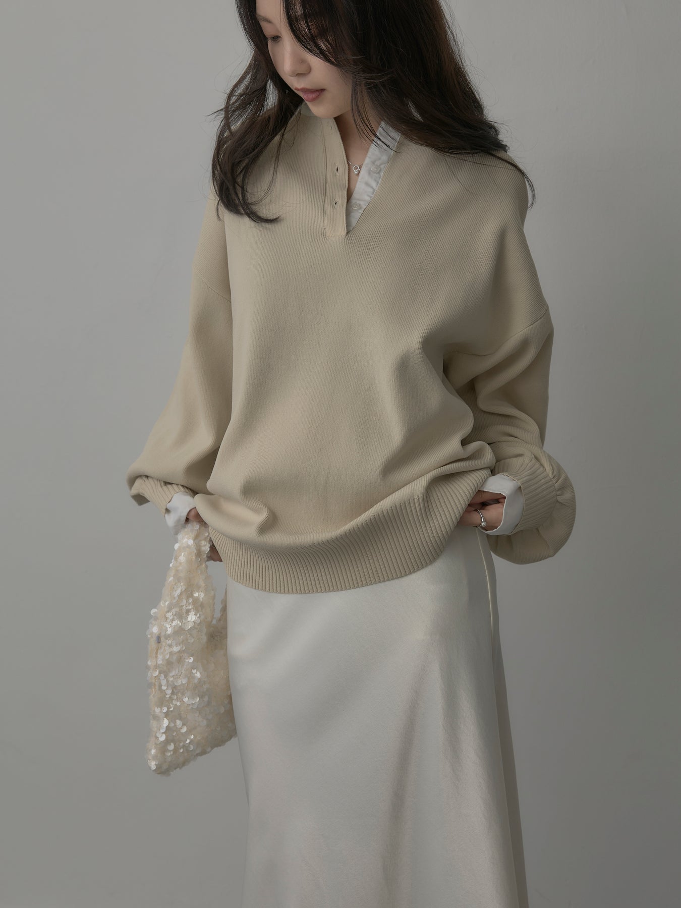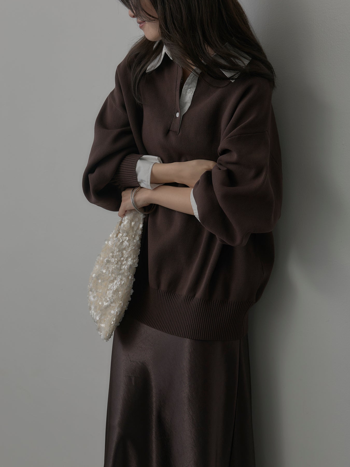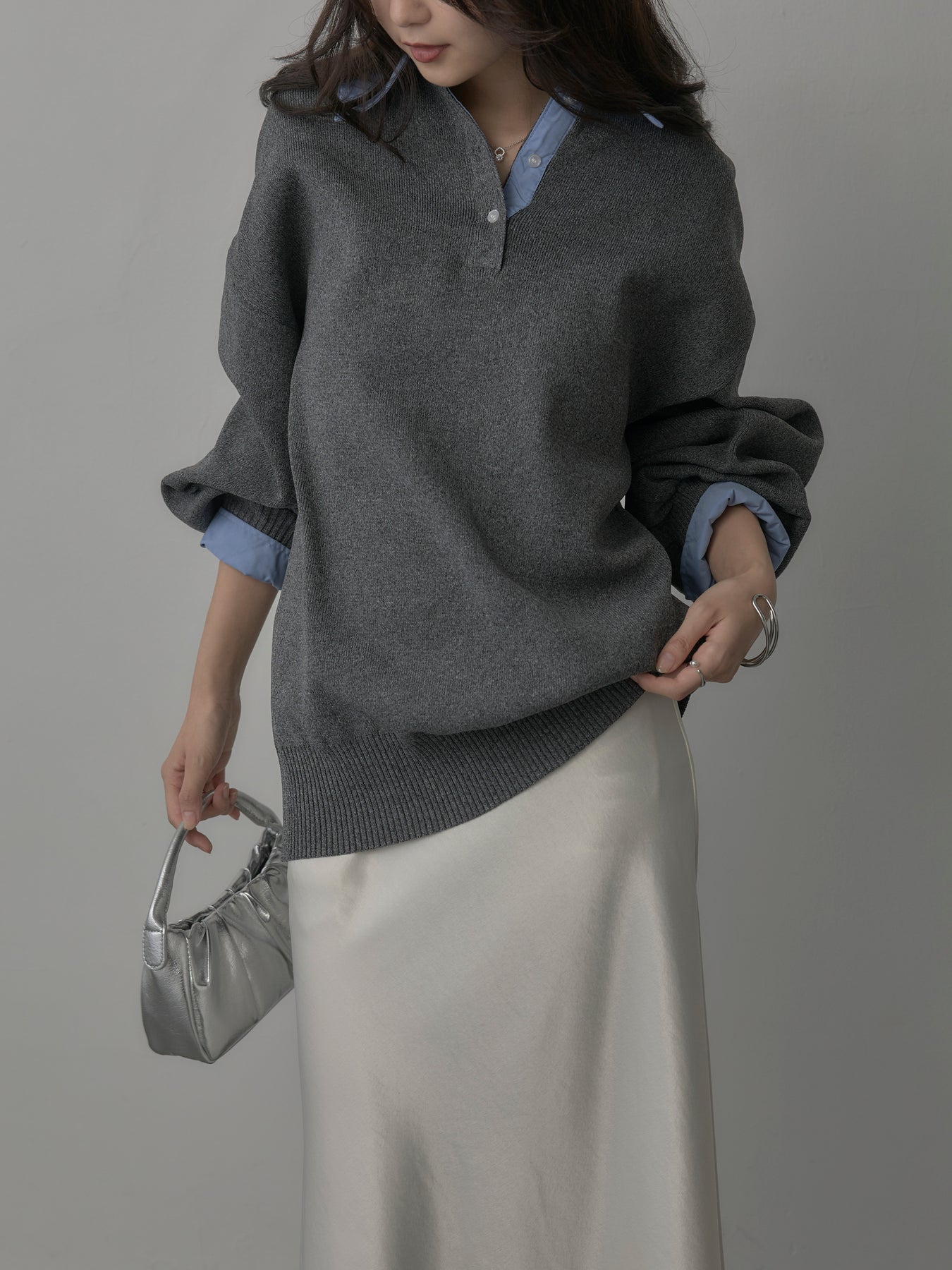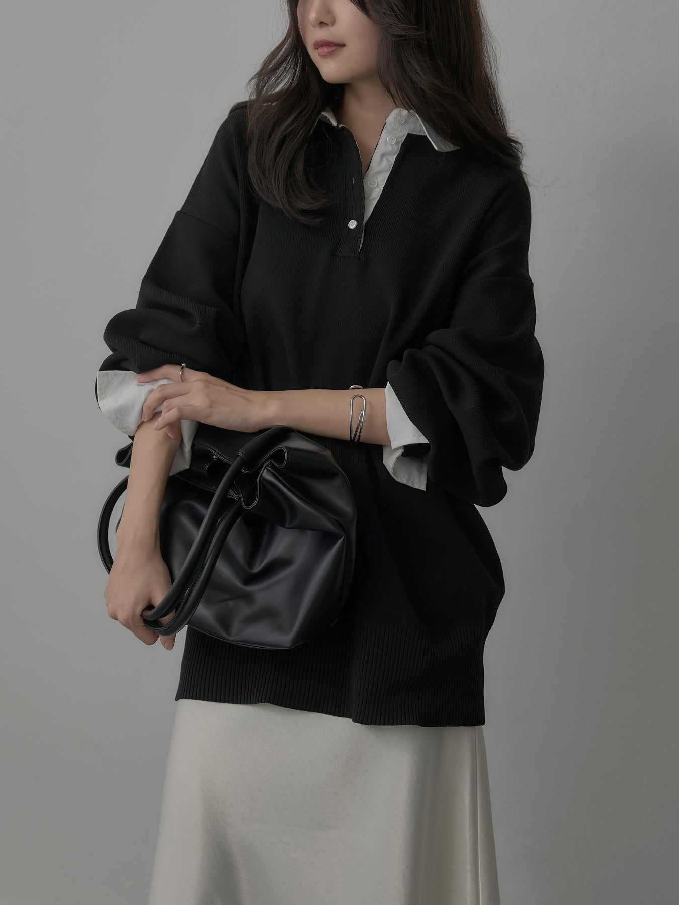 襟付きデザインで気軽にレイヤードスタイルが楽しめるポロトップス。ゆったりとしたシルエットにドロップショルダーを組み合わせ、リラックス感のある着心地に仕上げています。カジュアルながらも襟元がきちんと感をプラスし、幅広いボトムと好相性。
