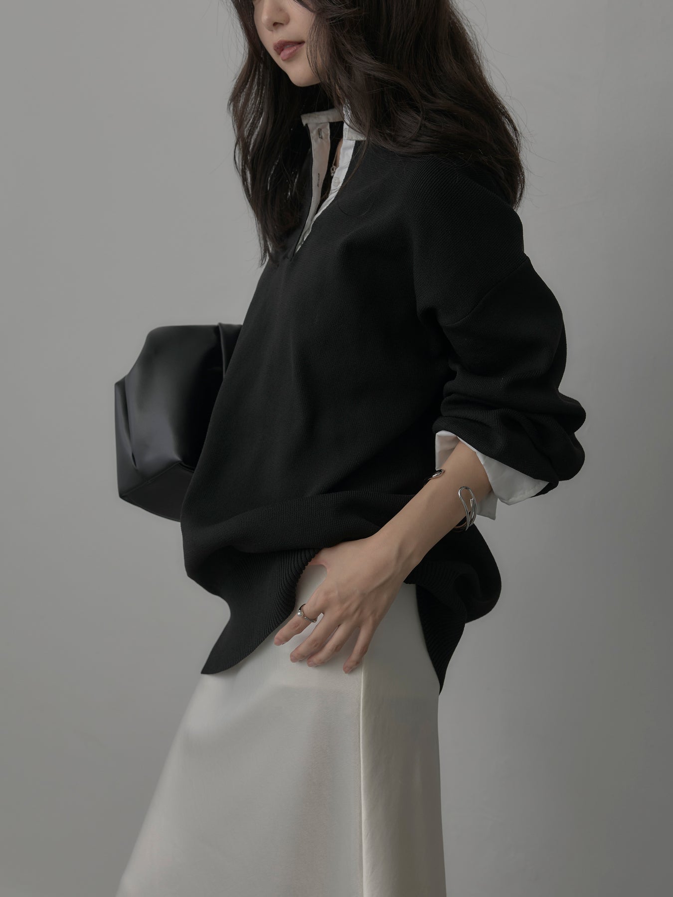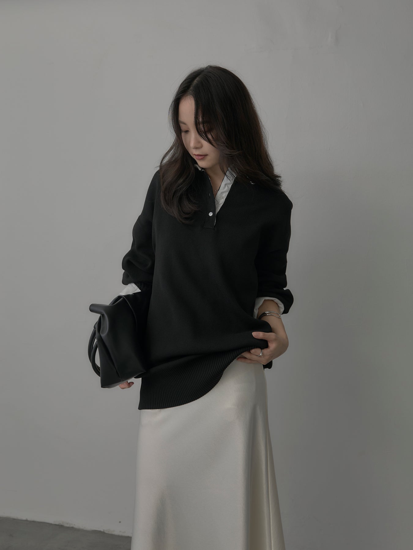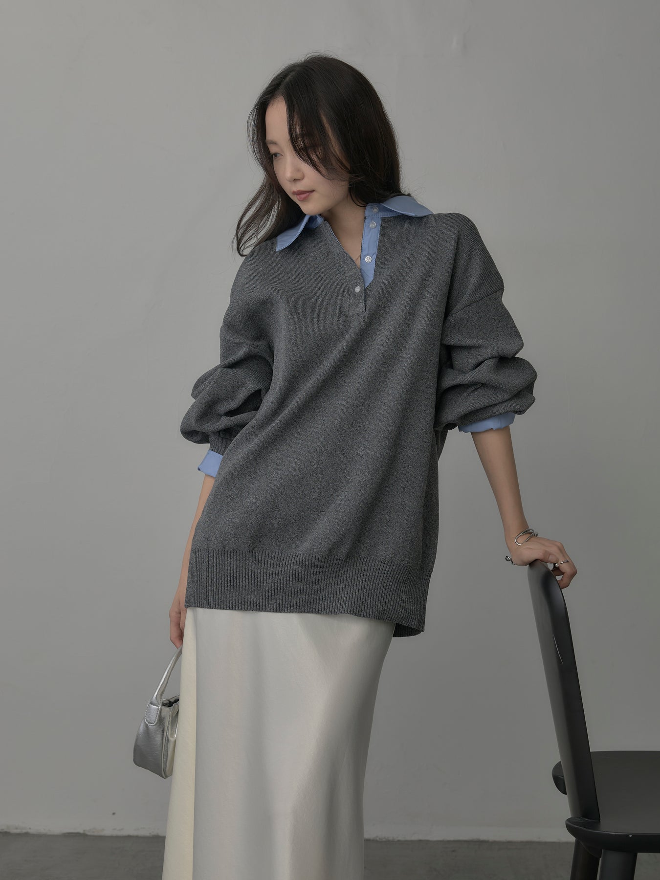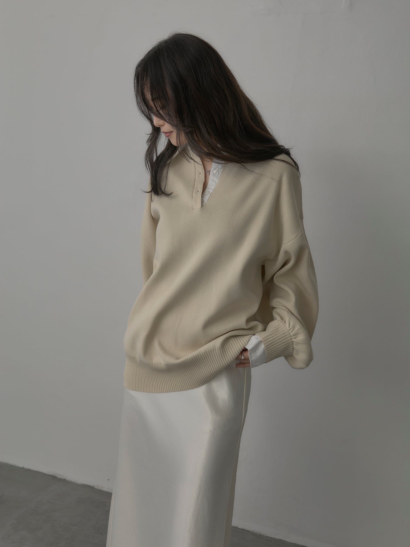 襟付きデザインで気軽にレイヤードスタイルが楽しめるポロトップス。ゆったりとしたシルエットにドロップショルダーを組み合わせ、リラックス感のある着心地に仕上げています。カジュアルながらも襟元がきちんと感をプラスし、幅広いボトムと好相性。