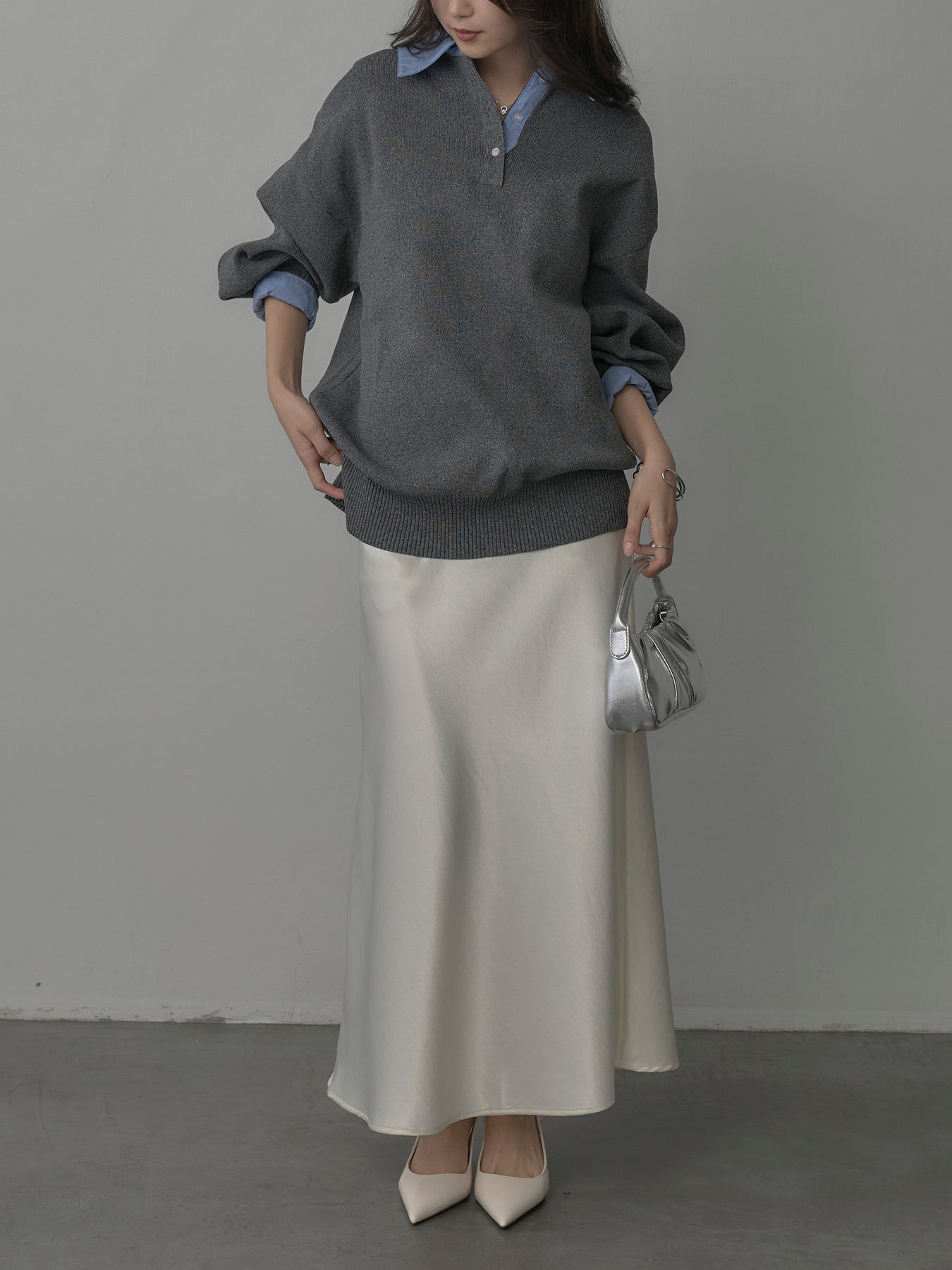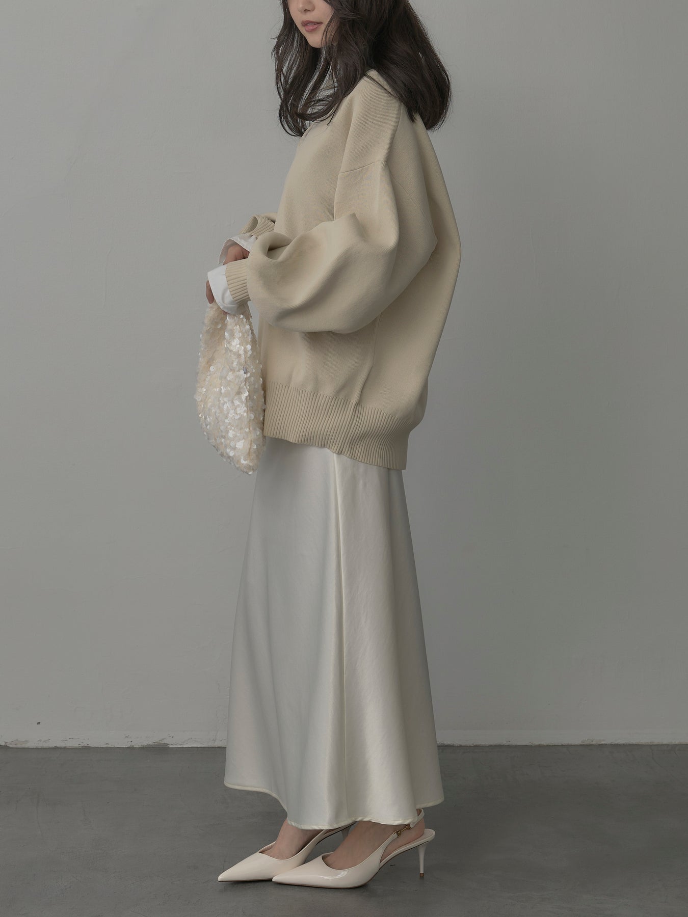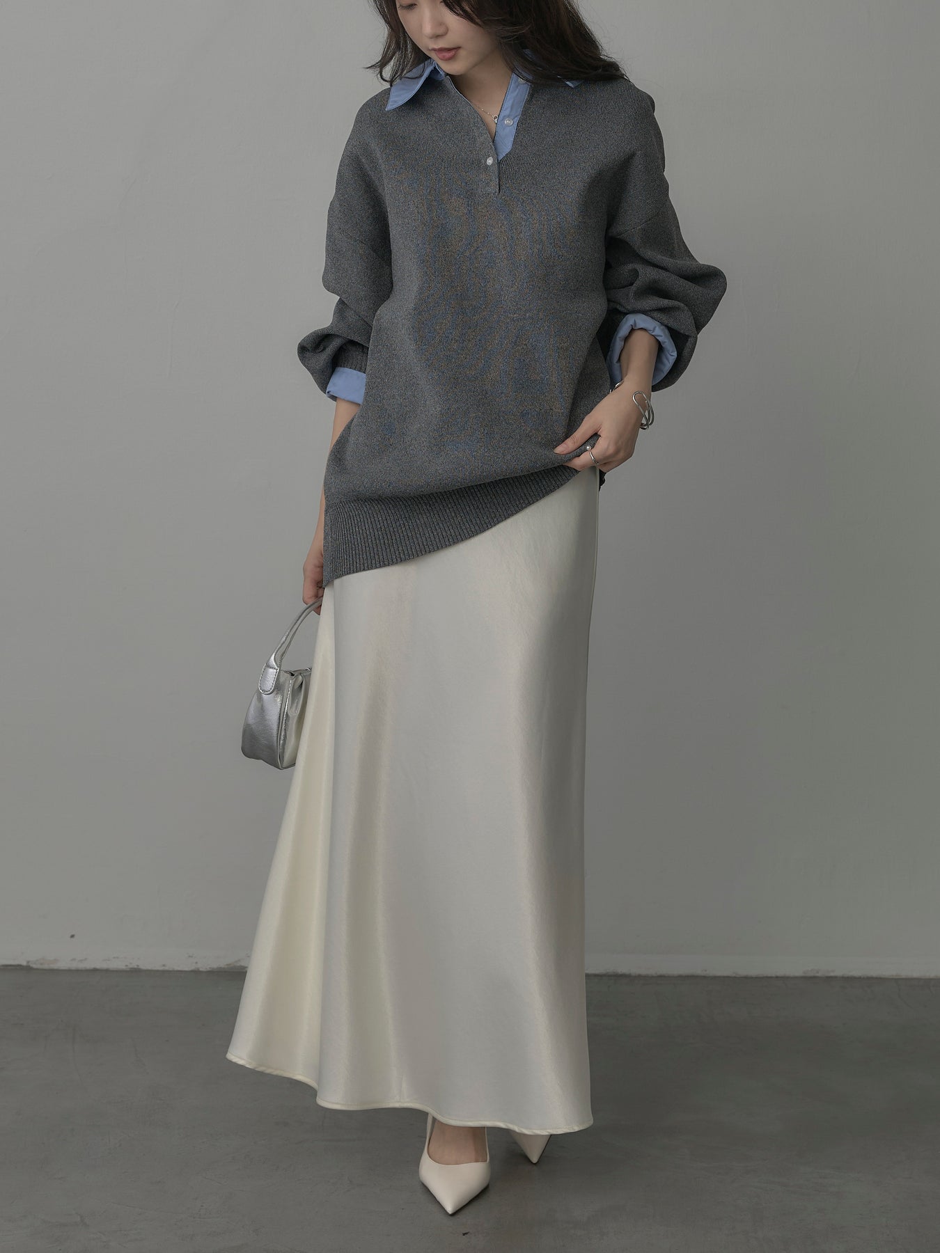美しい光沢感のあるサテン素材を使用したナローAラインスカート。落ち感のあるシルエットが女性らしさを引き立て、幅広いトップスと好相性です。