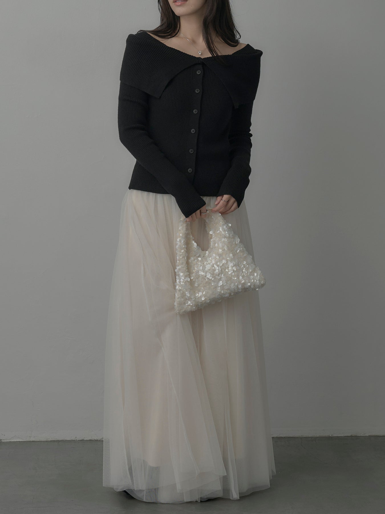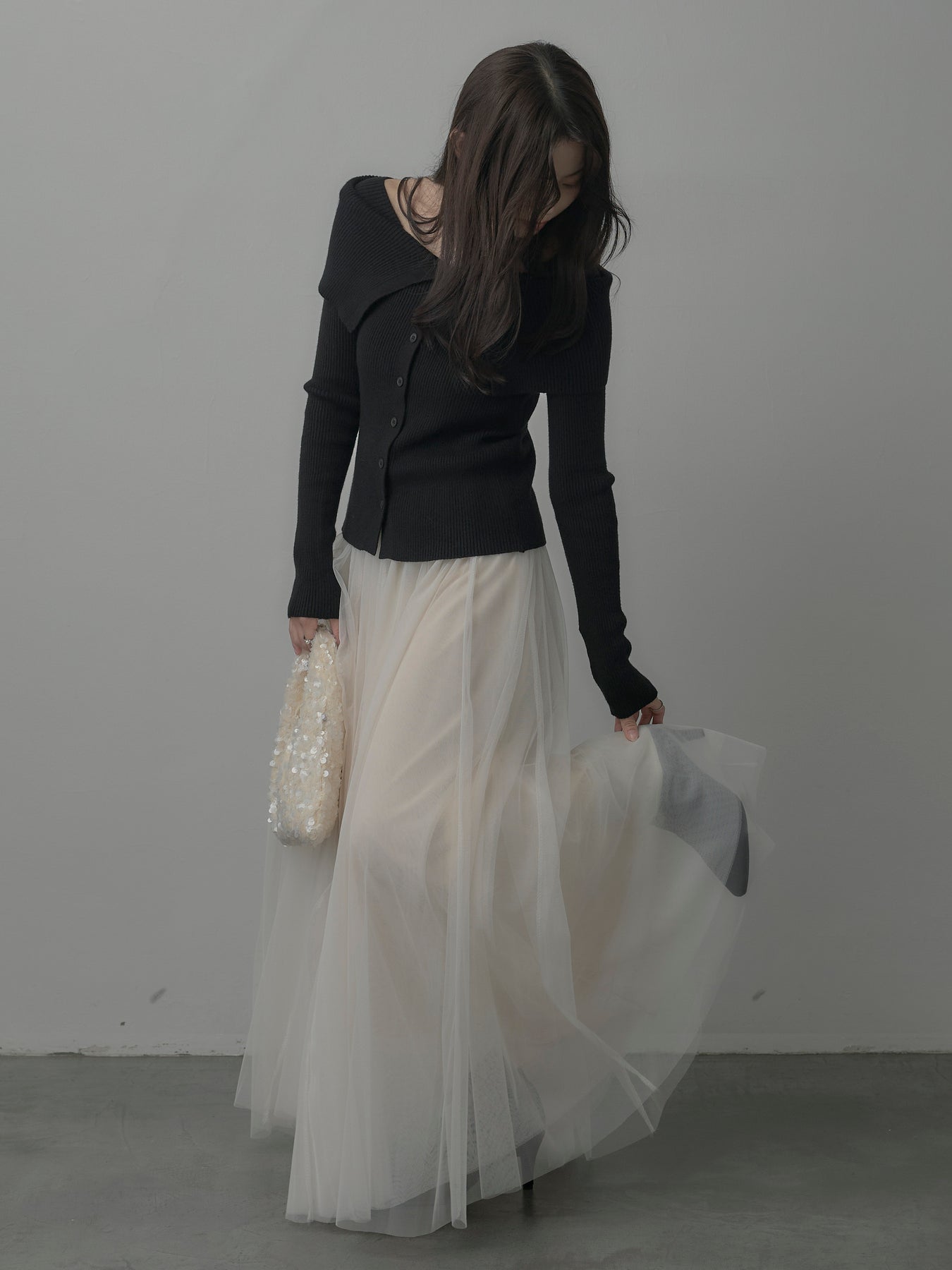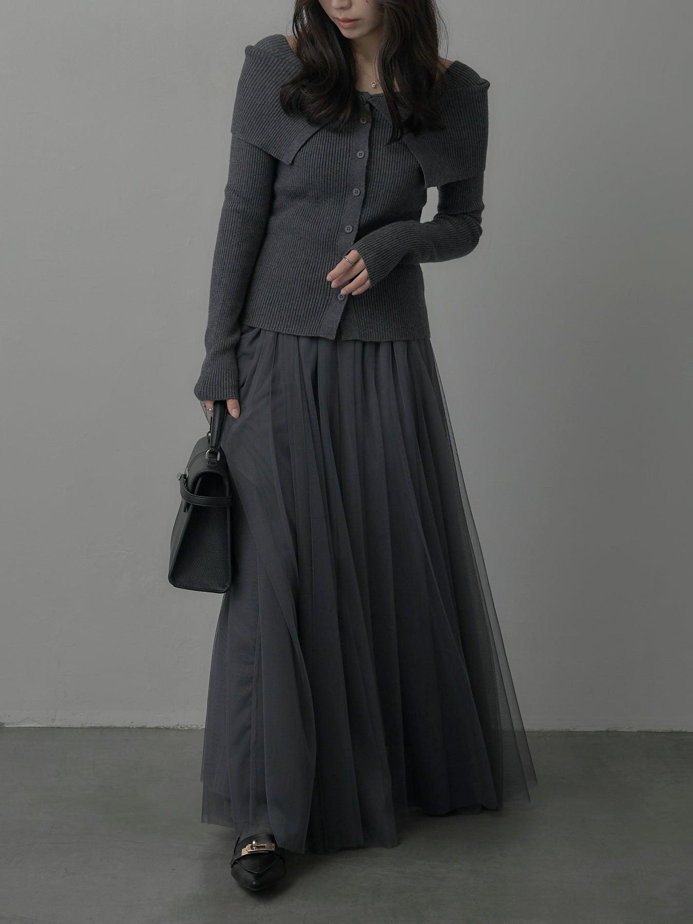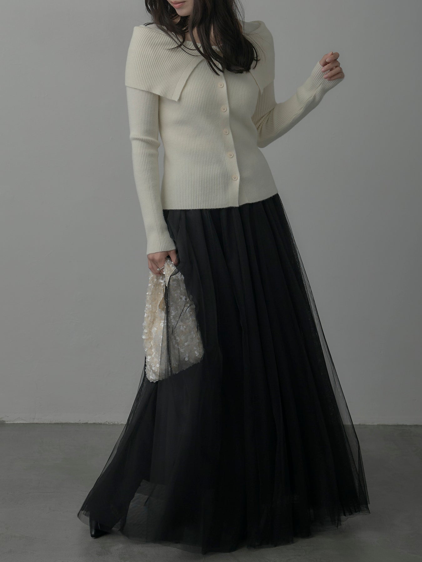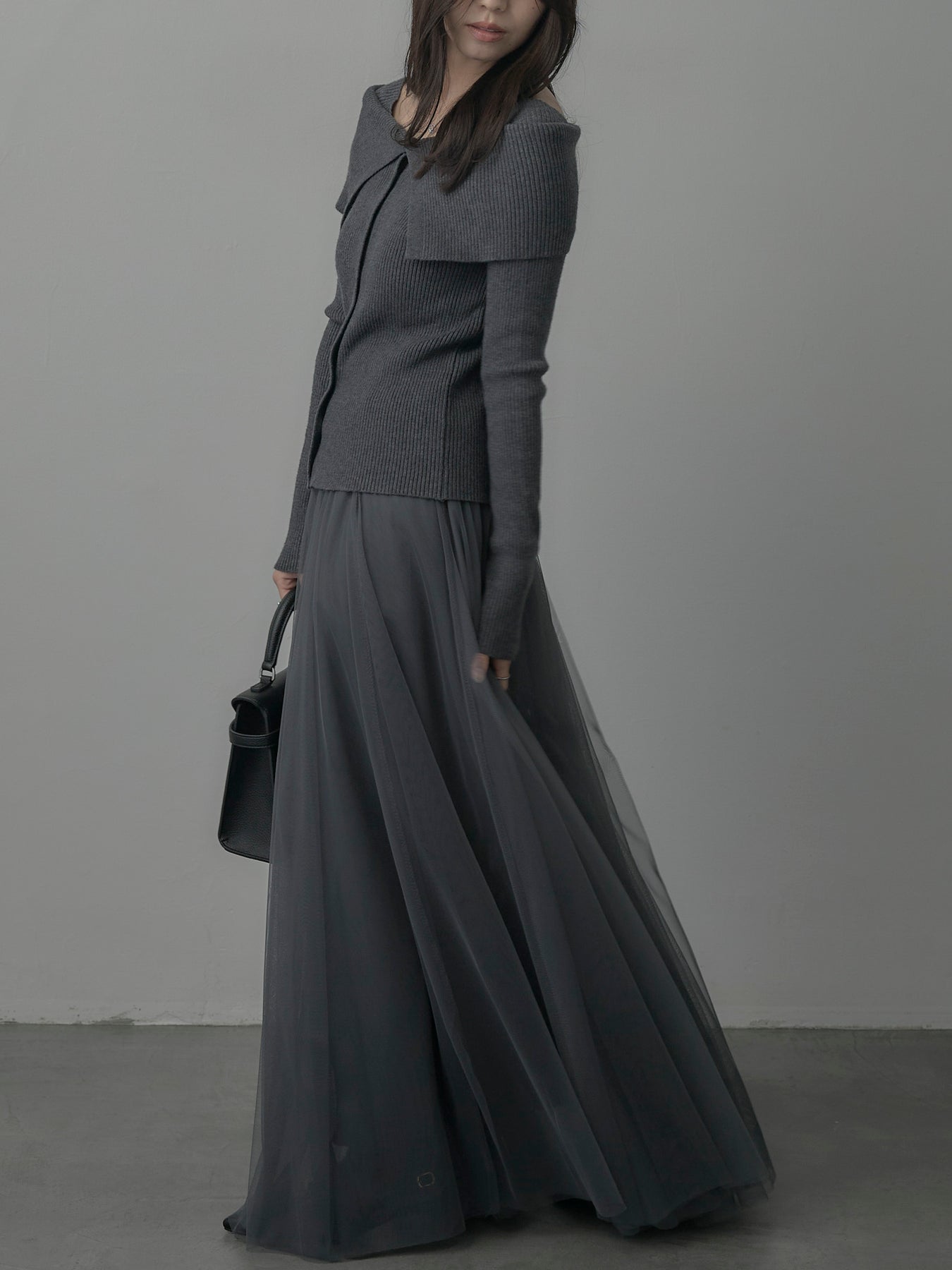 【SET】オフショルライクリブニットトップス+ボリュームチュールスカート(2set)