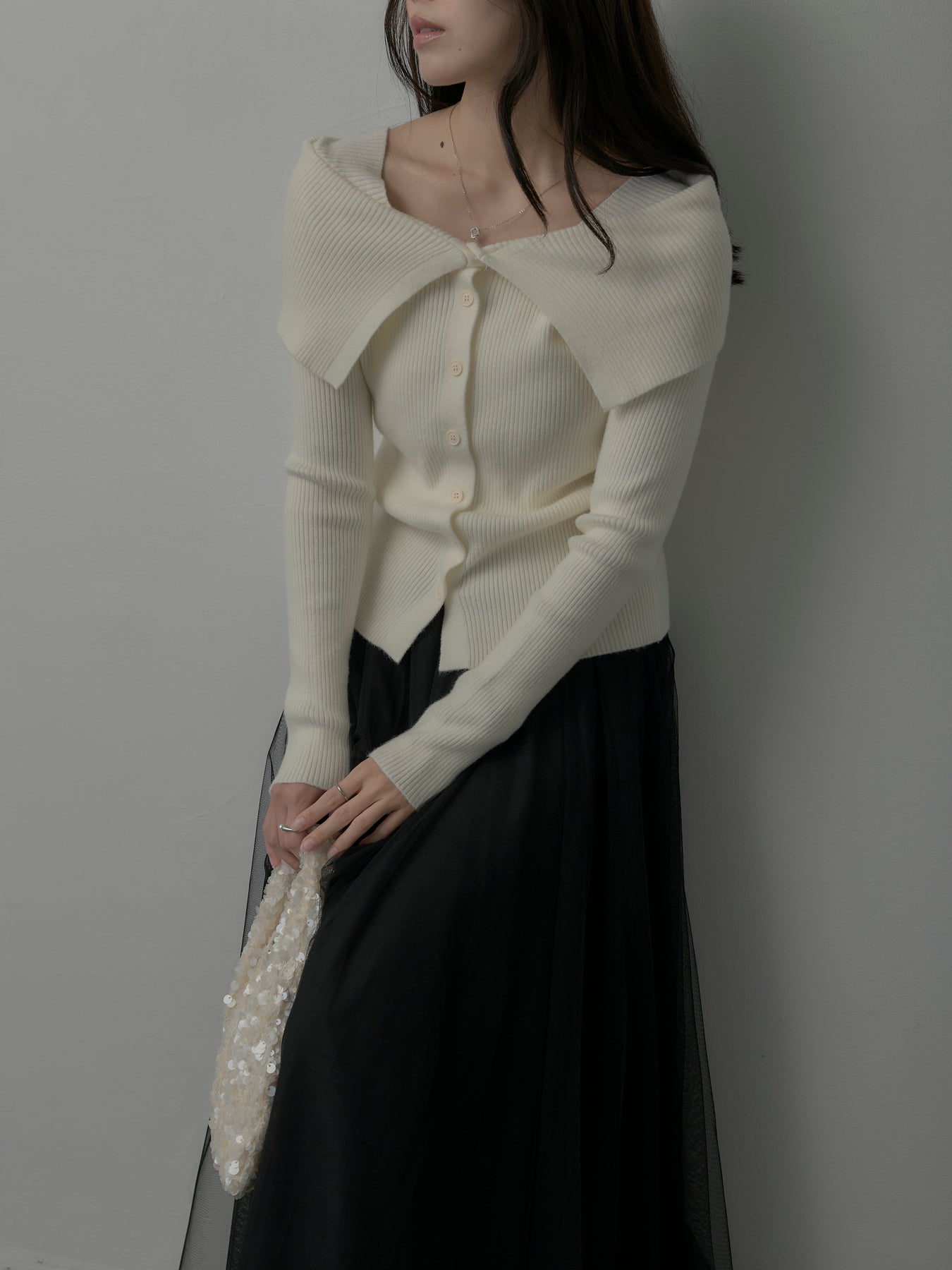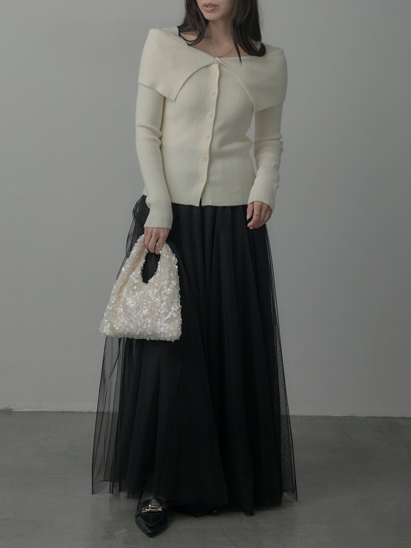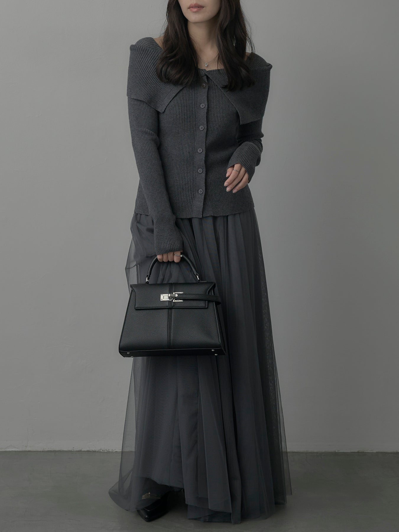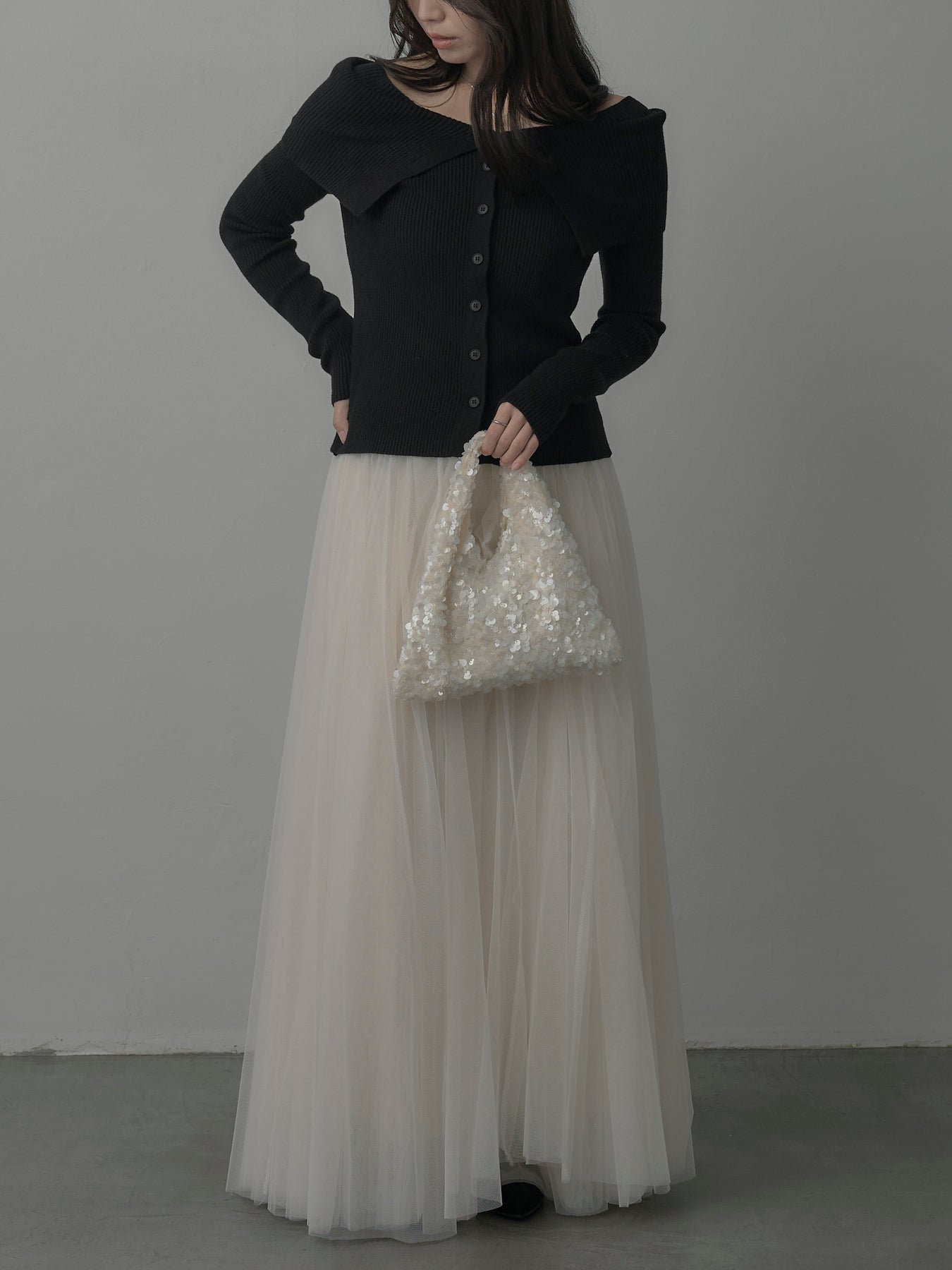 【SET】オフショルライクリブニットトップス+ボリュームチュールスカート(2set)