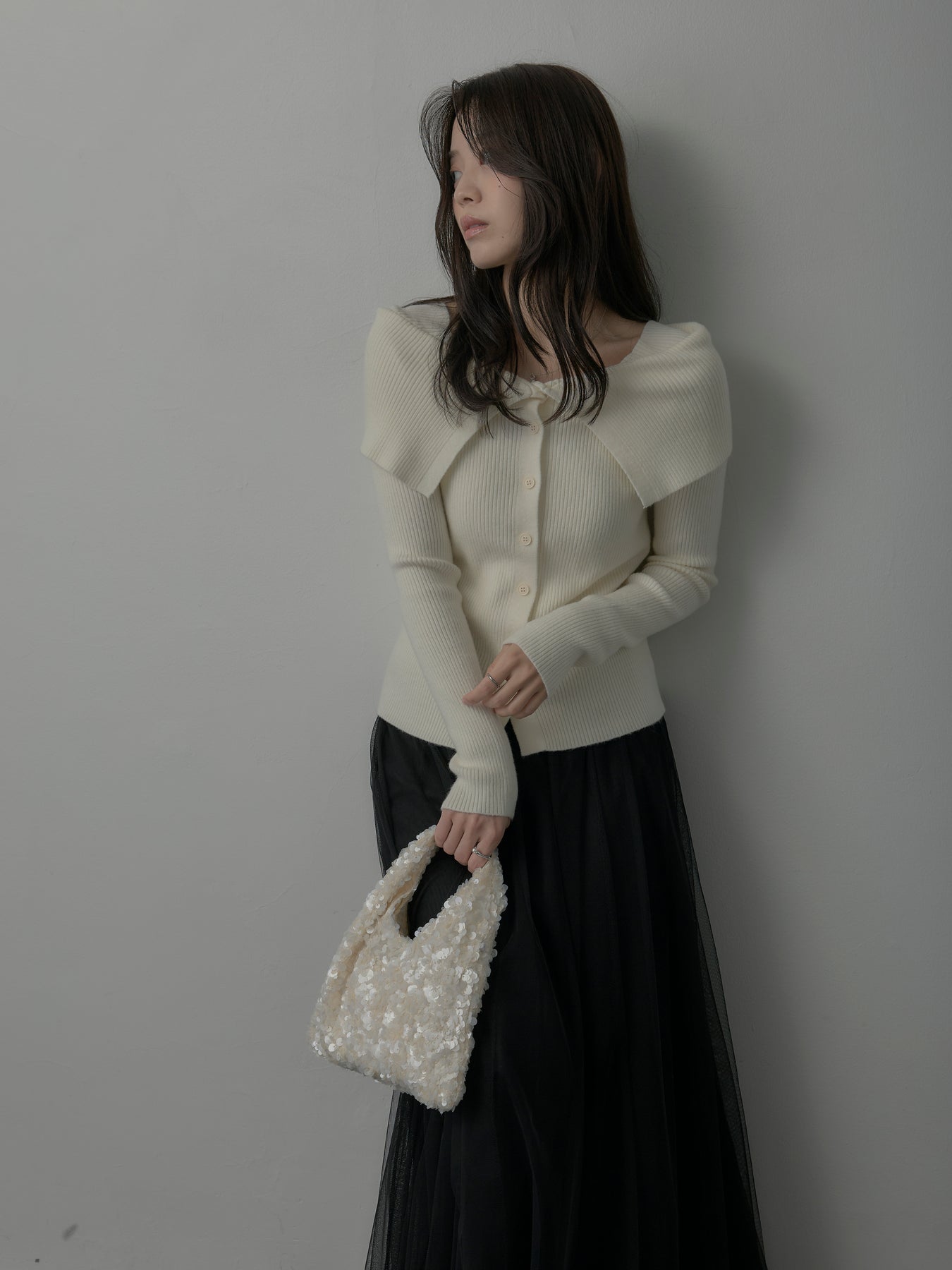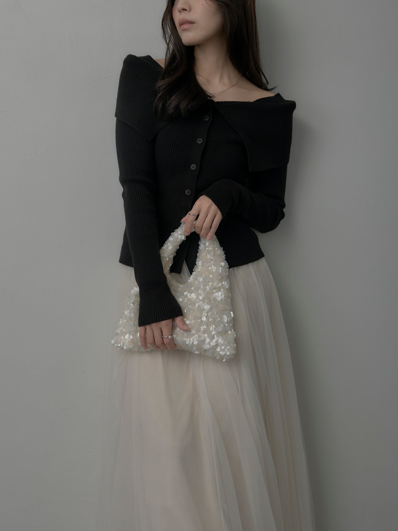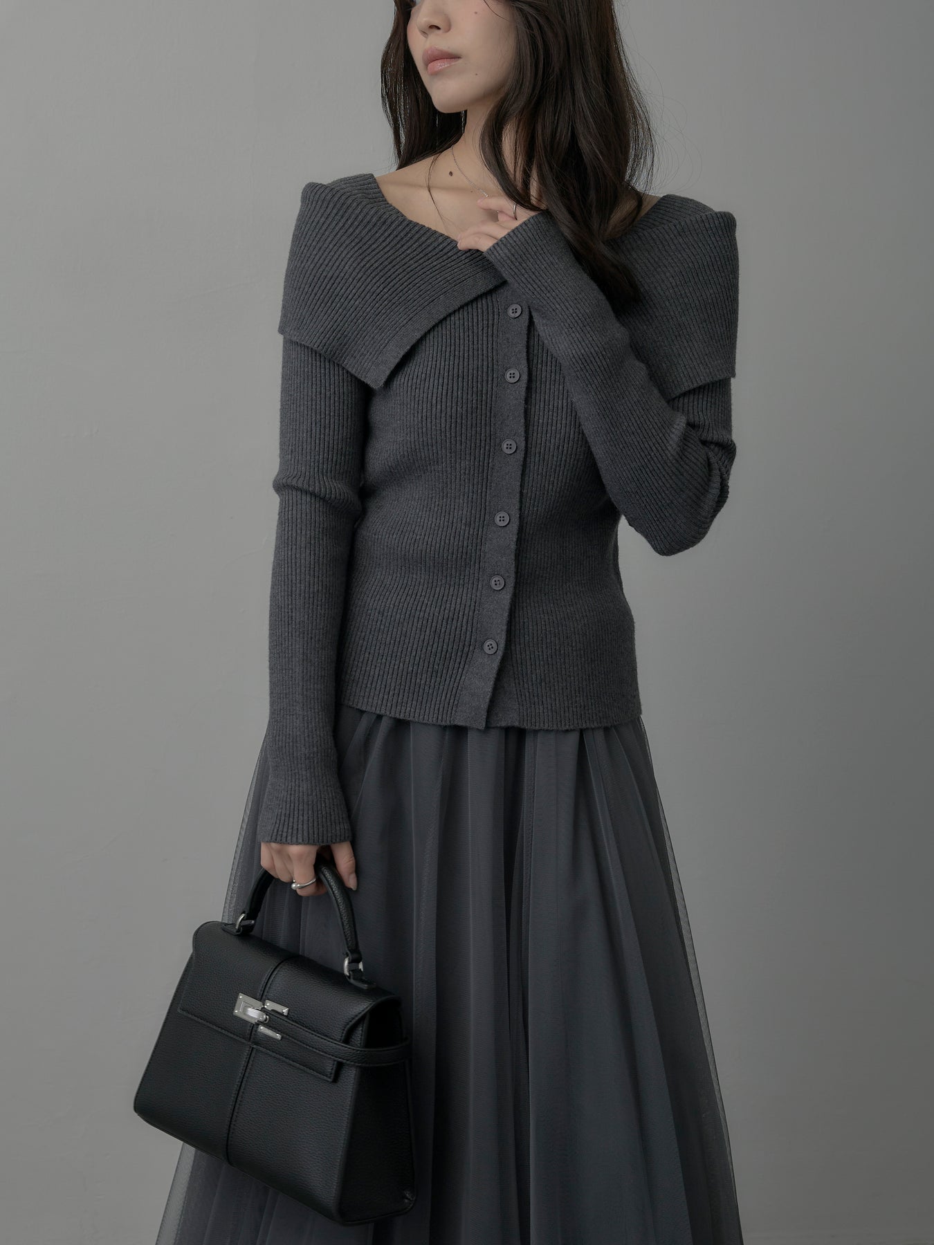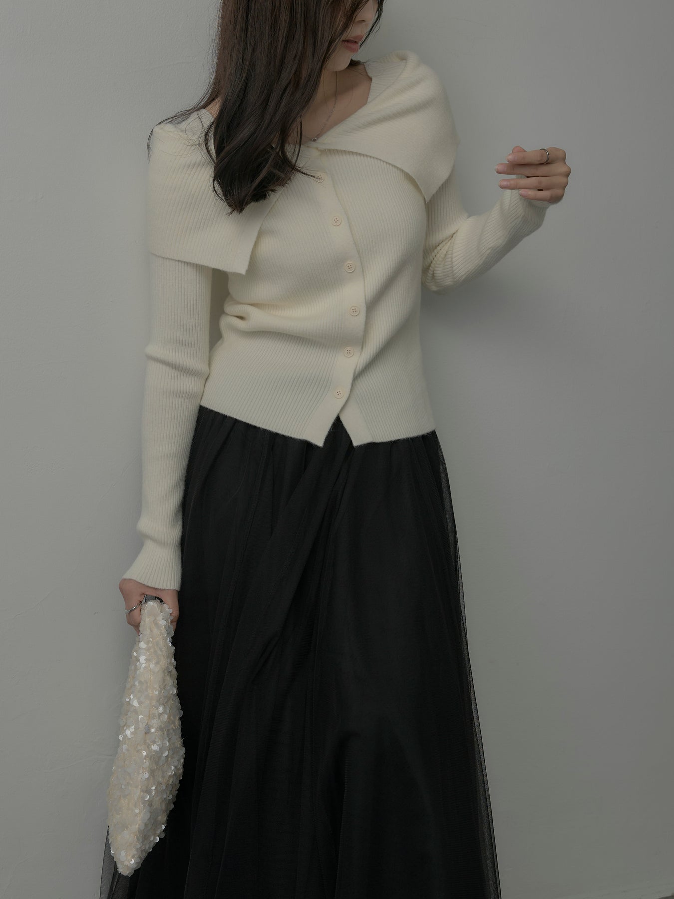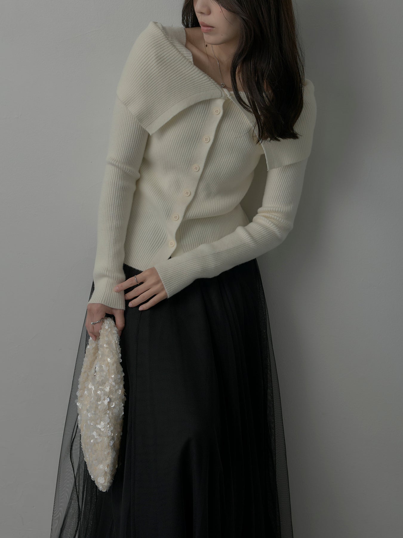 【SET】オフショルライクリブニットトップス+ボリュームチュールスカート(2set)