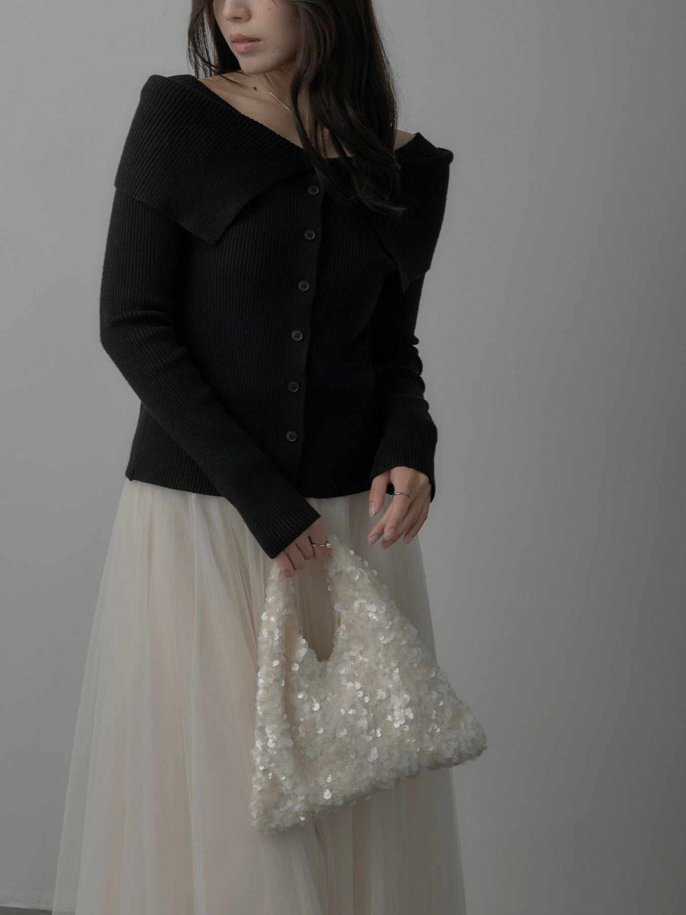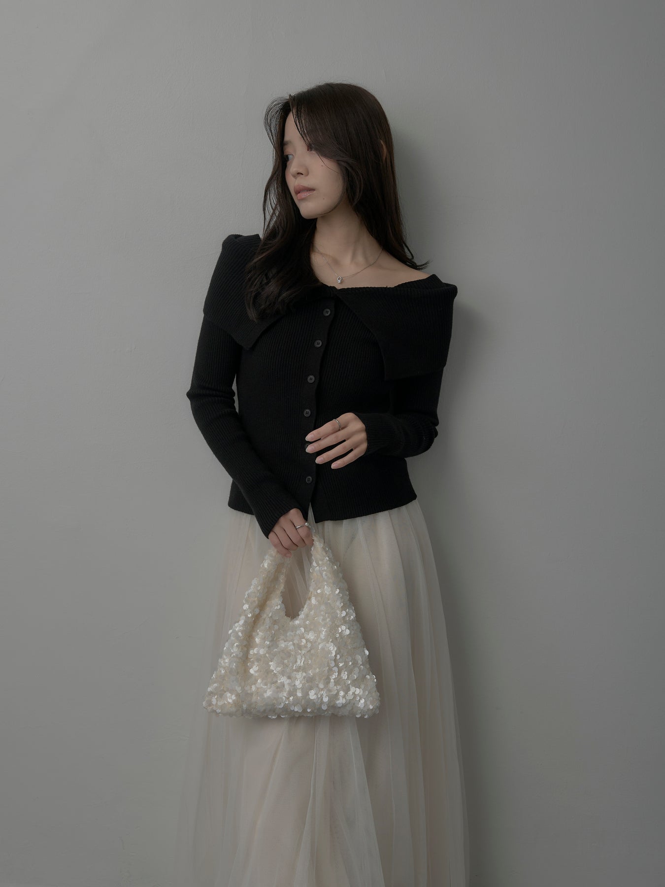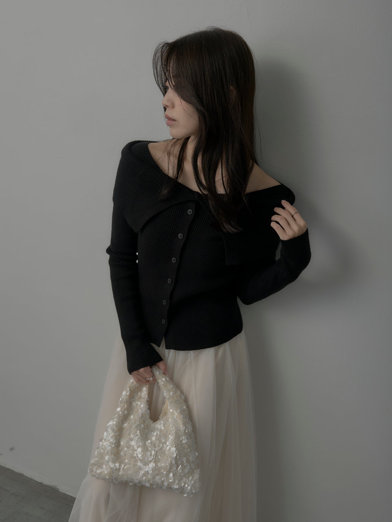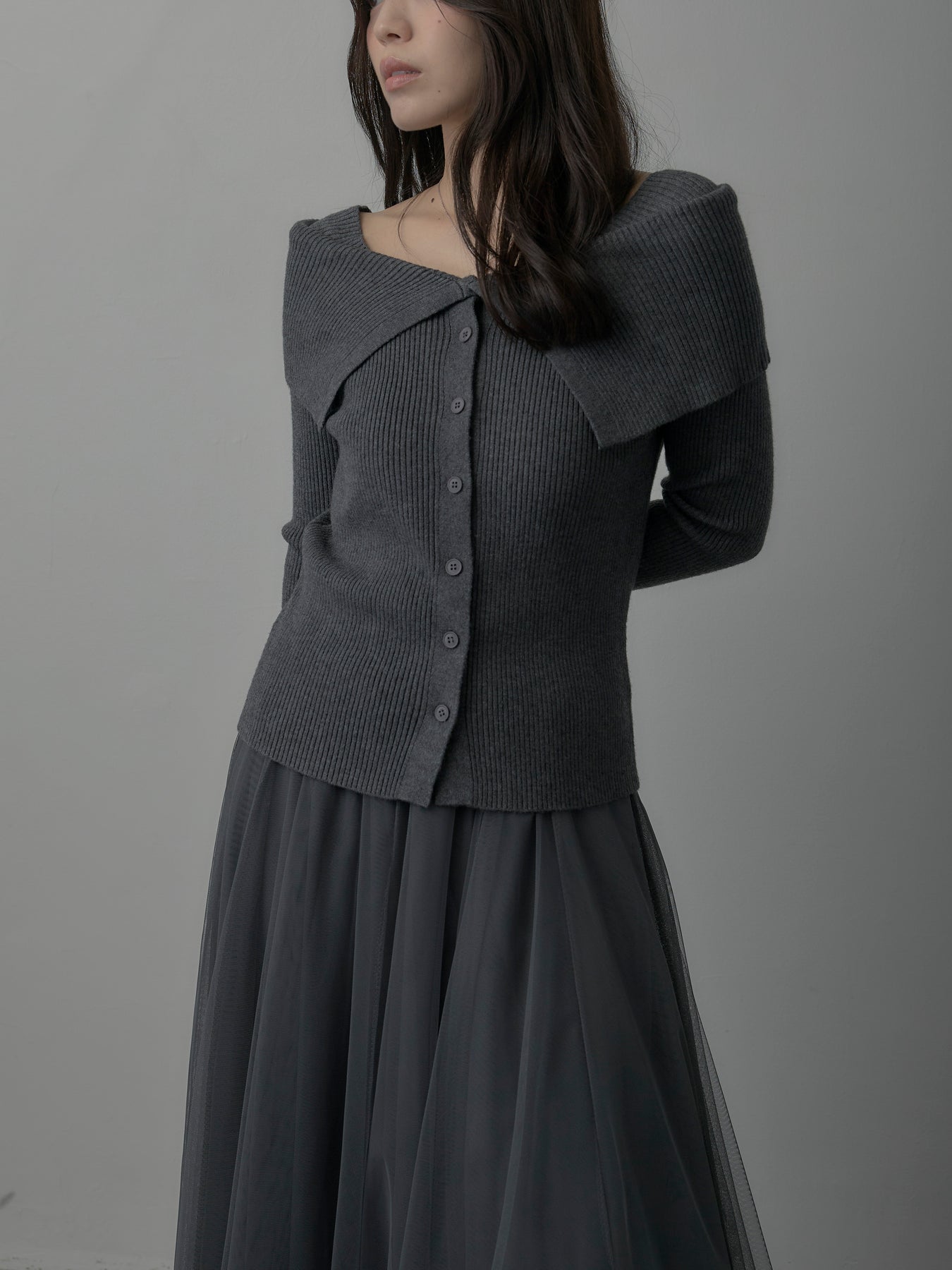 【SET】オフショルライクリブニットトップス+ボリュームチュールスカート(2set)
