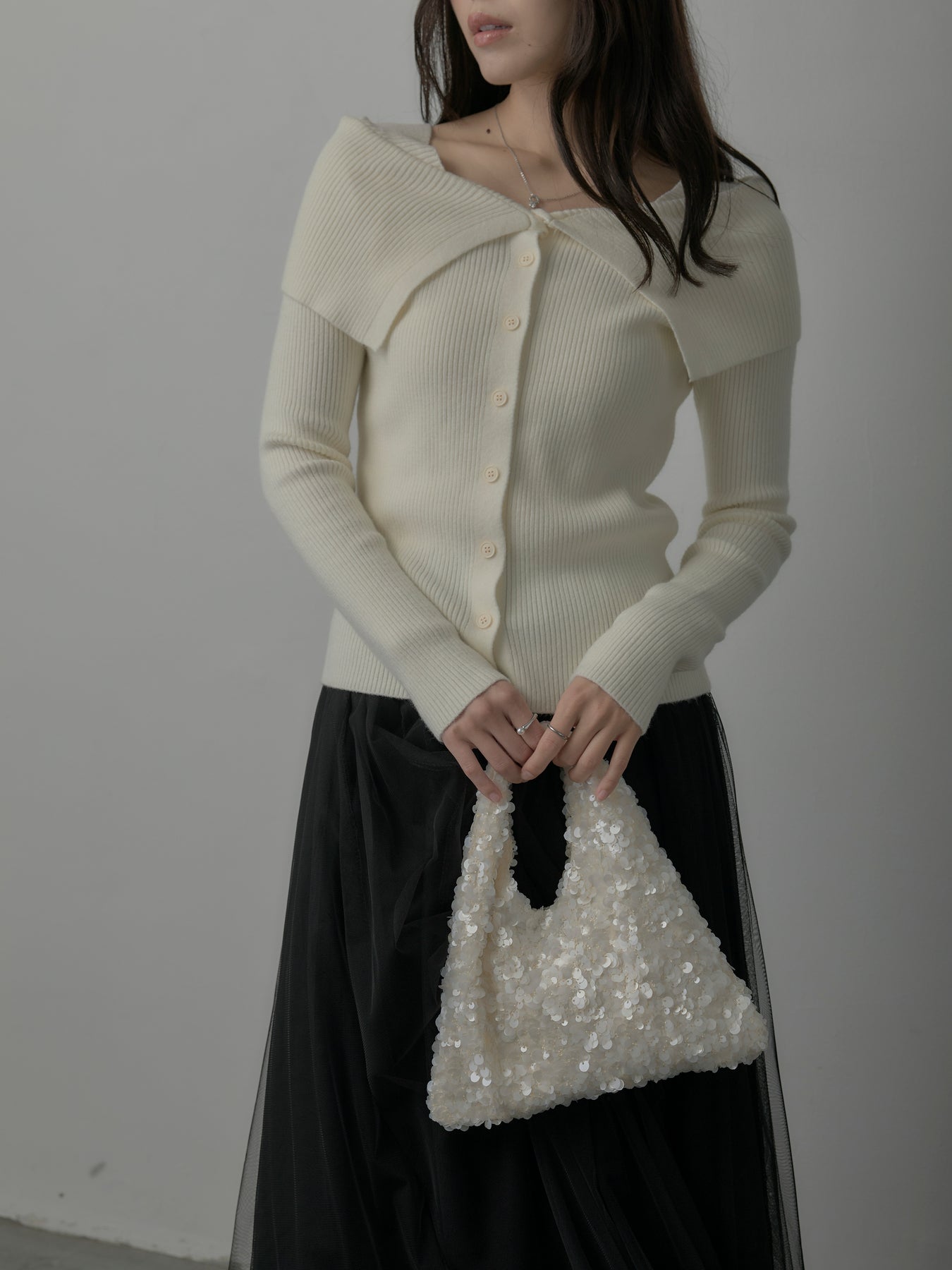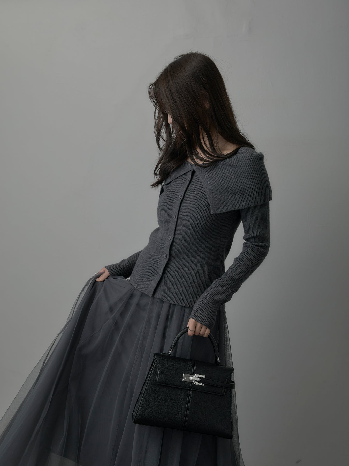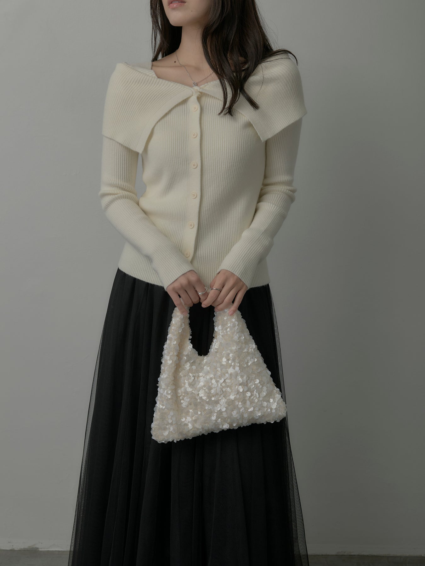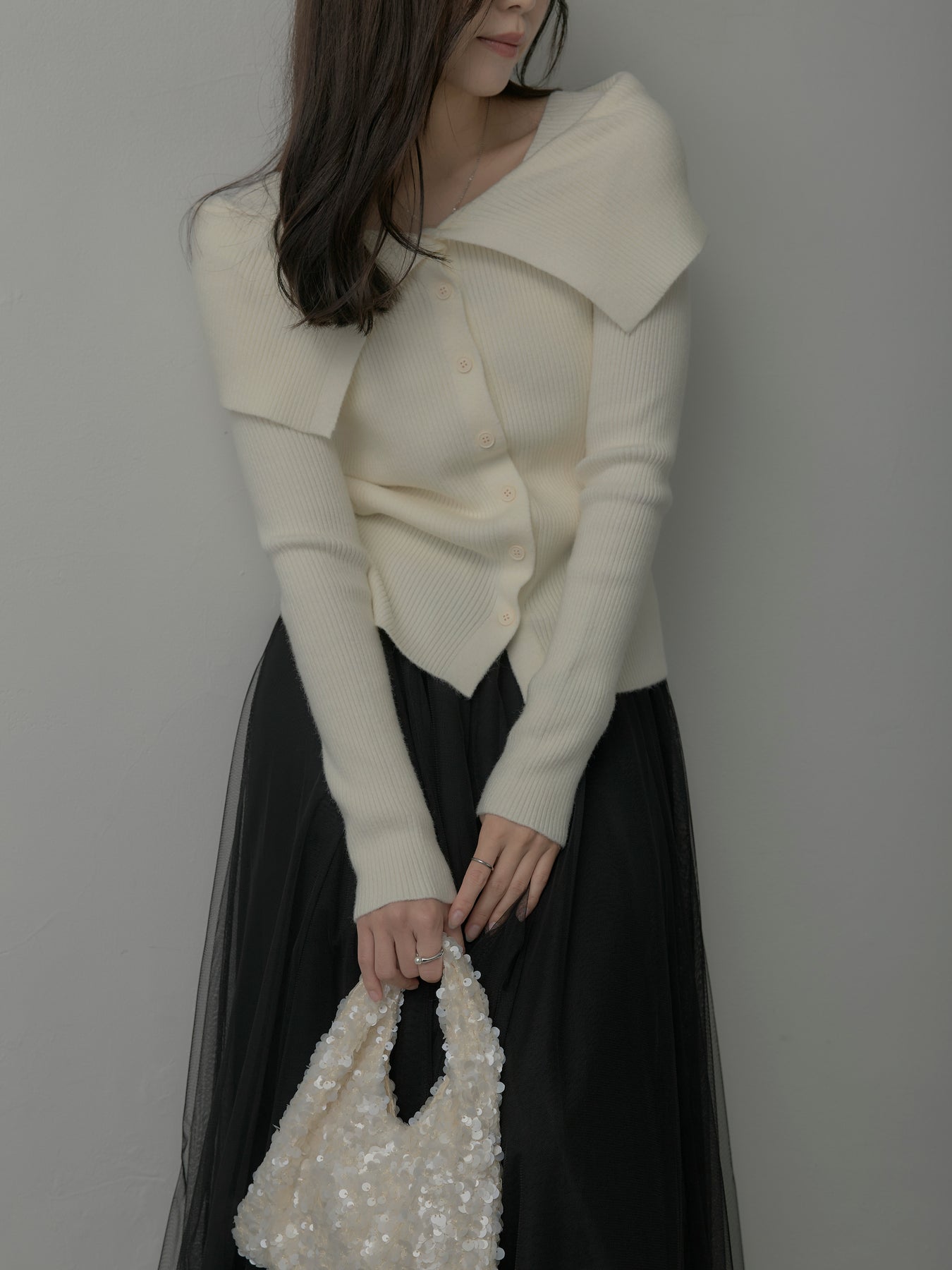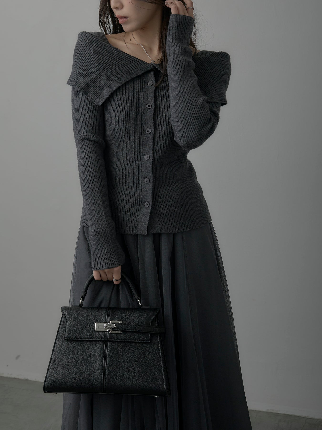 【SET】オフショルライクリブニットトップス+ボリュームチュールスカート(2set)