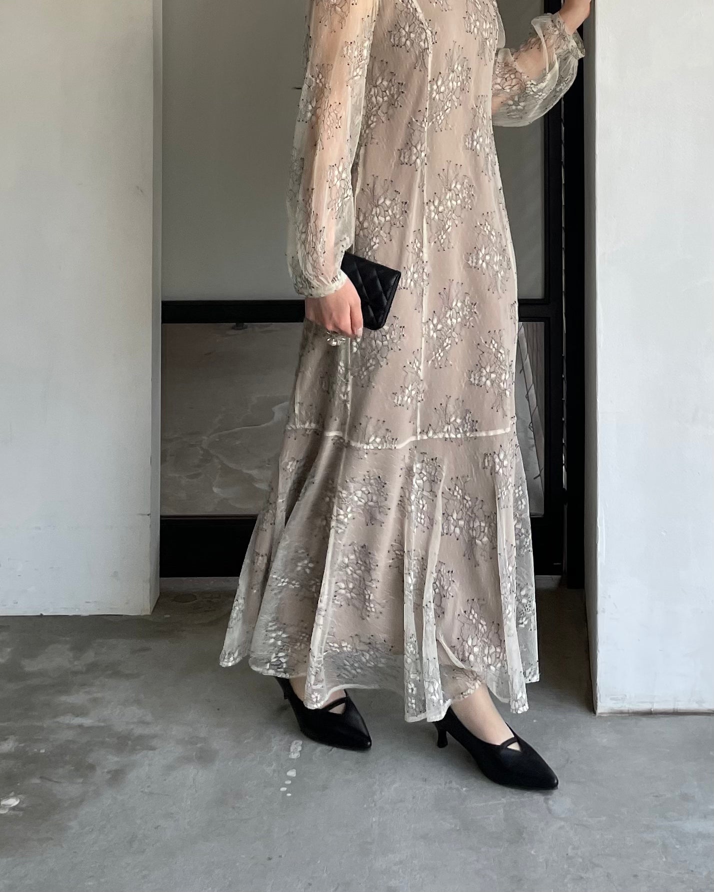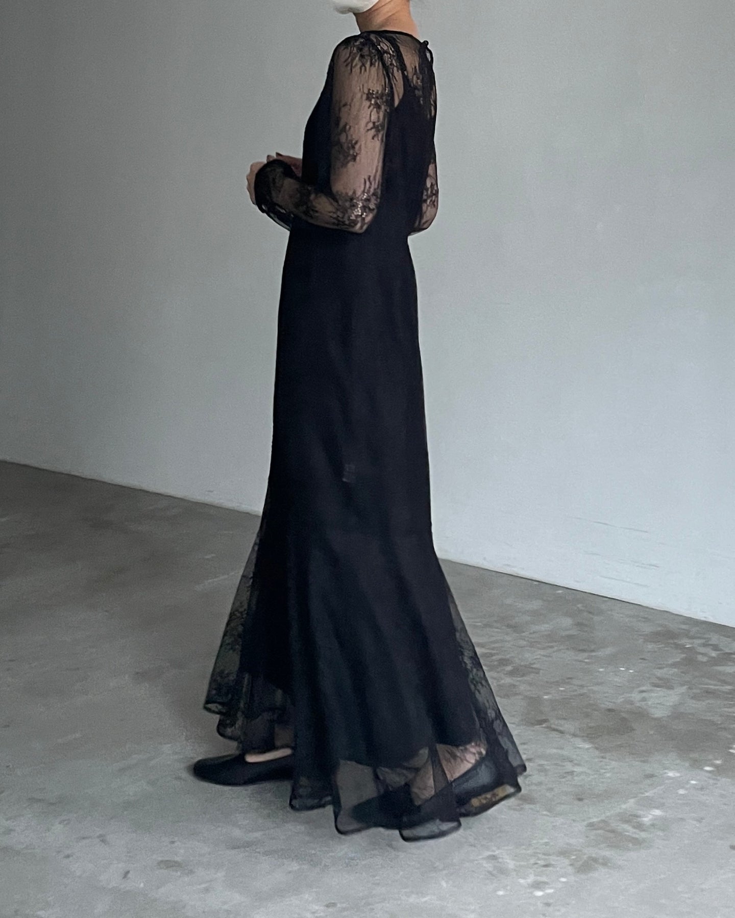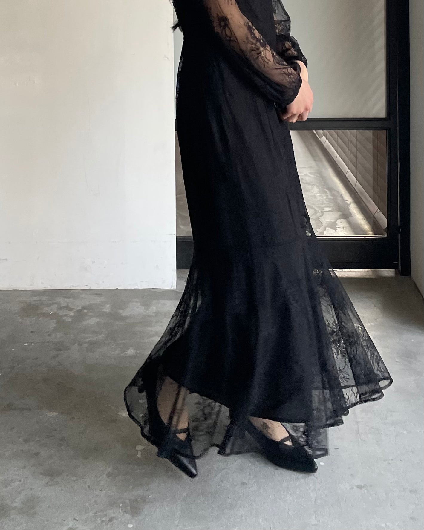 裾から覗く足もとが美しく見えるよう、インナーとレースの丈感にもこだわりました。