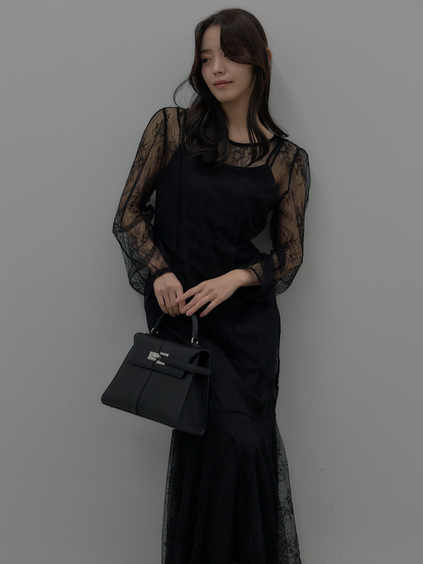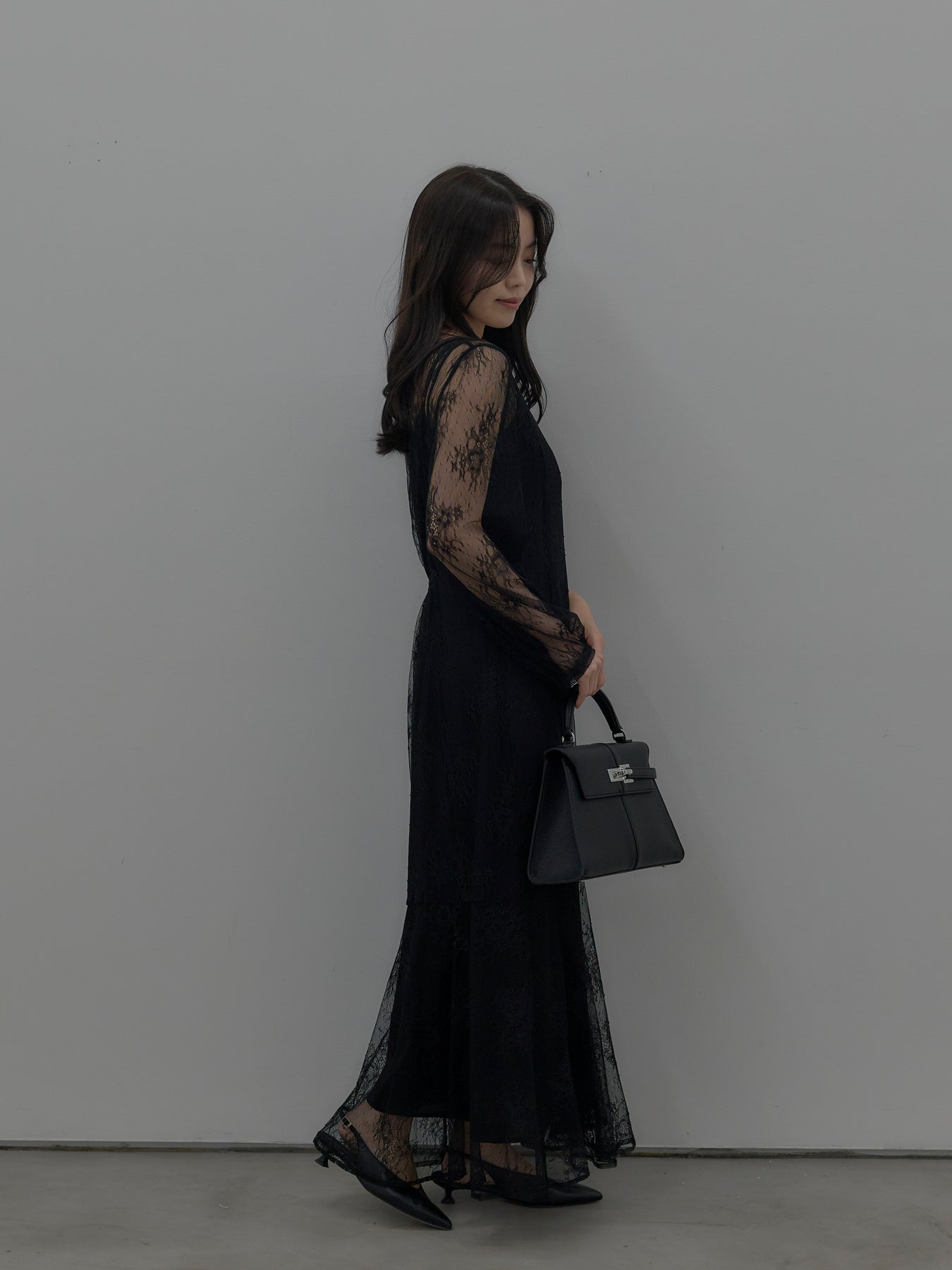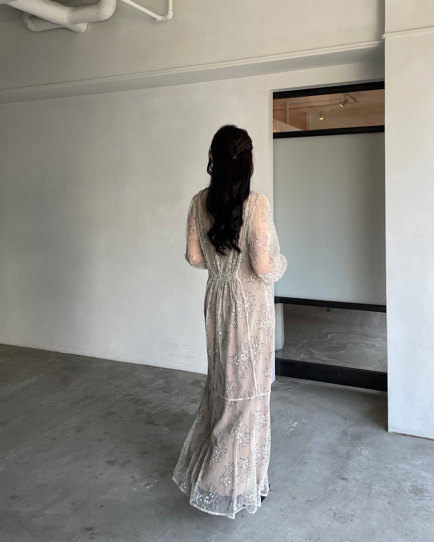 裾から覗く足もとが美しく見えるよう、インナーとレースの丈感にもこだわりました。