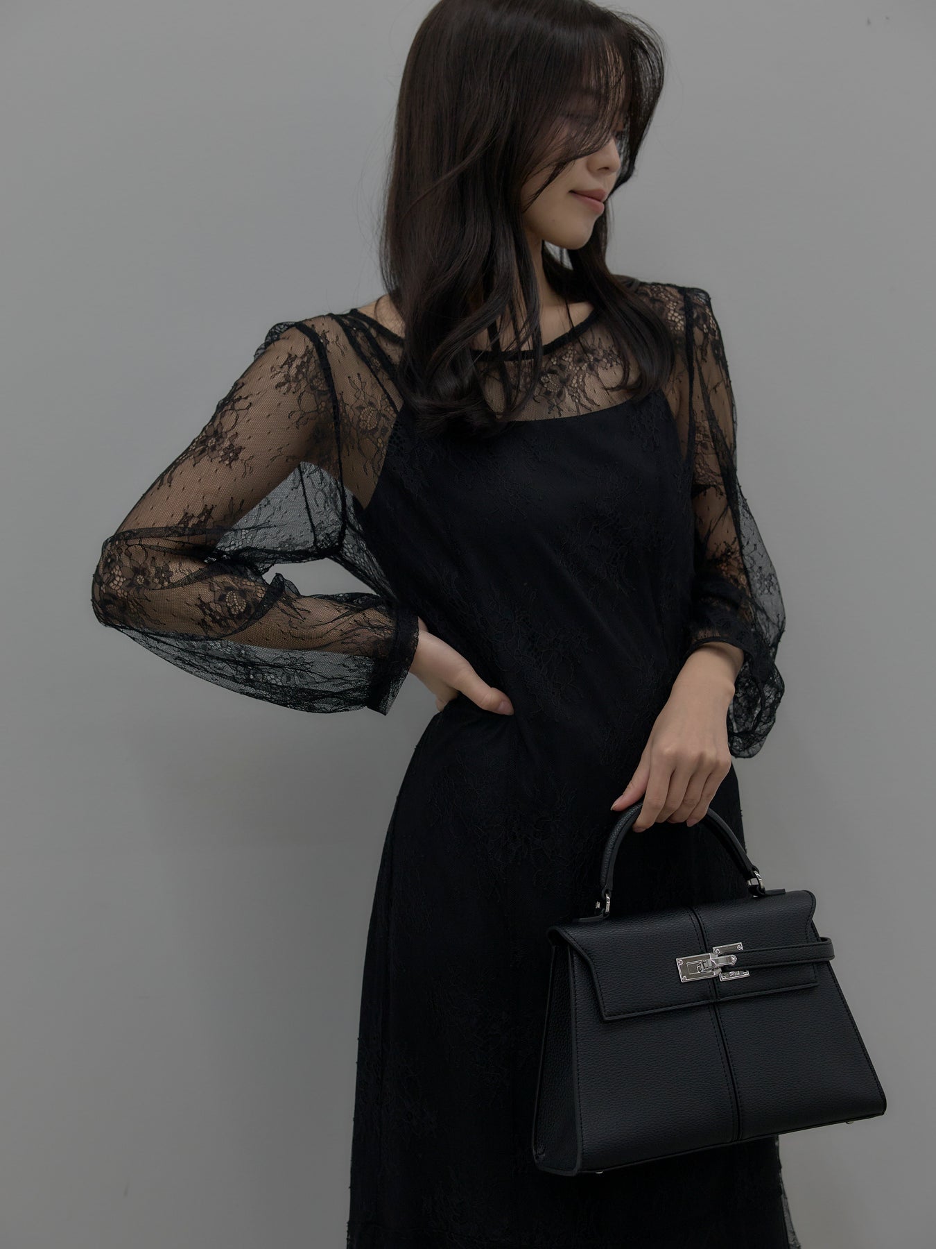 デコルテが綺麗に見えるネックラインは、レースでカバーされているため胸元が気になる方にもおすすめです。