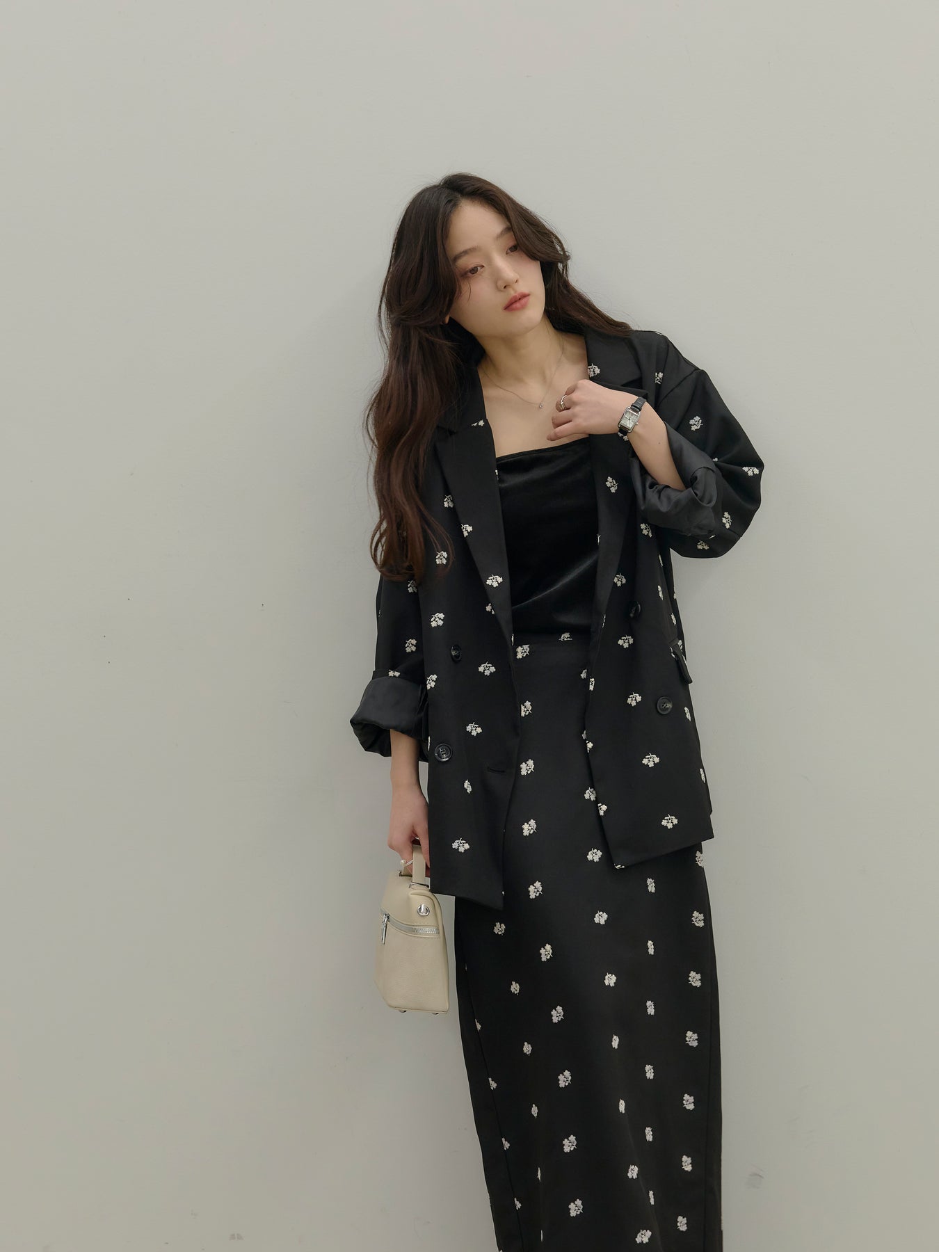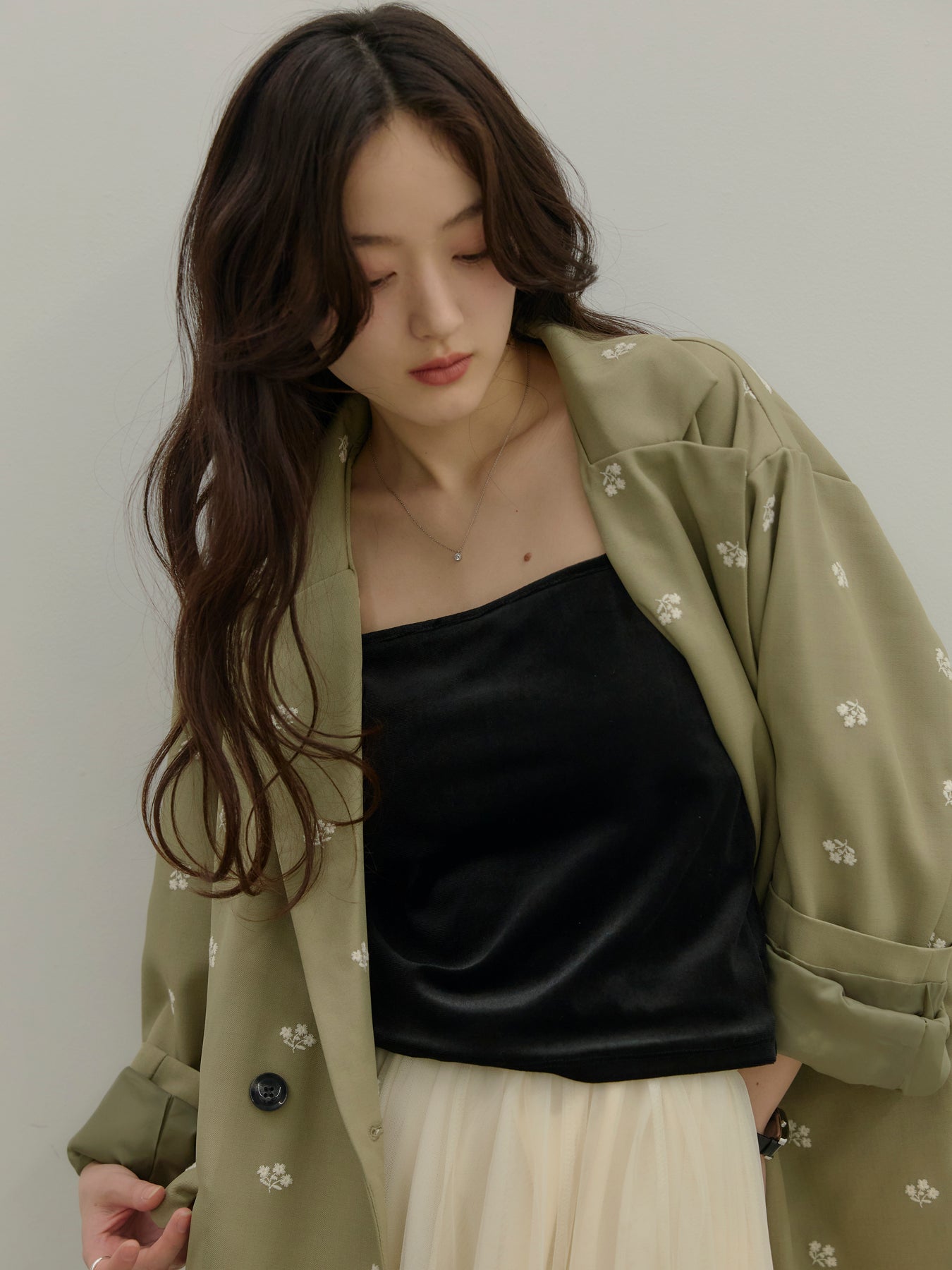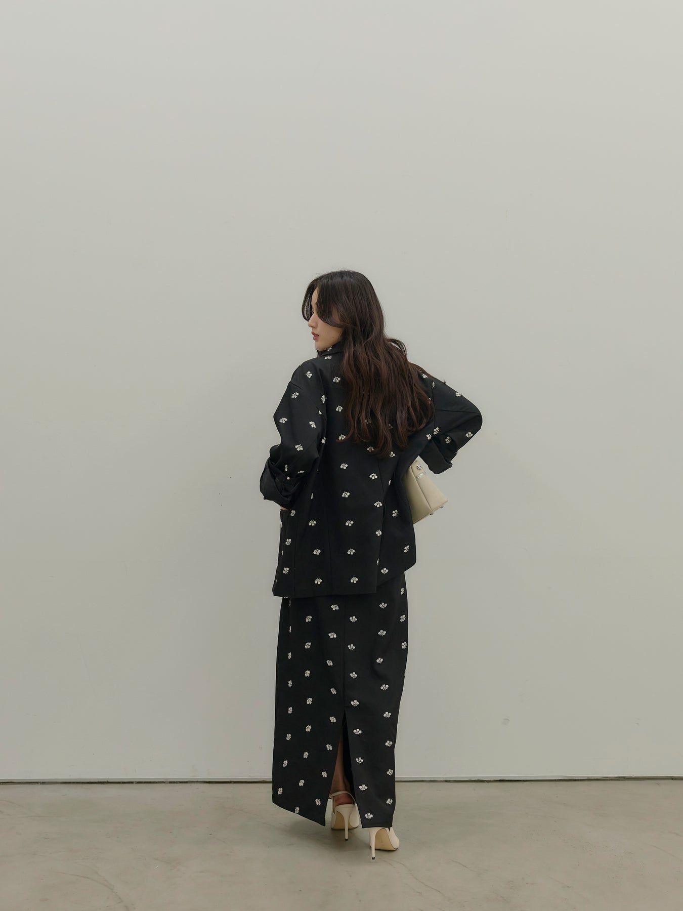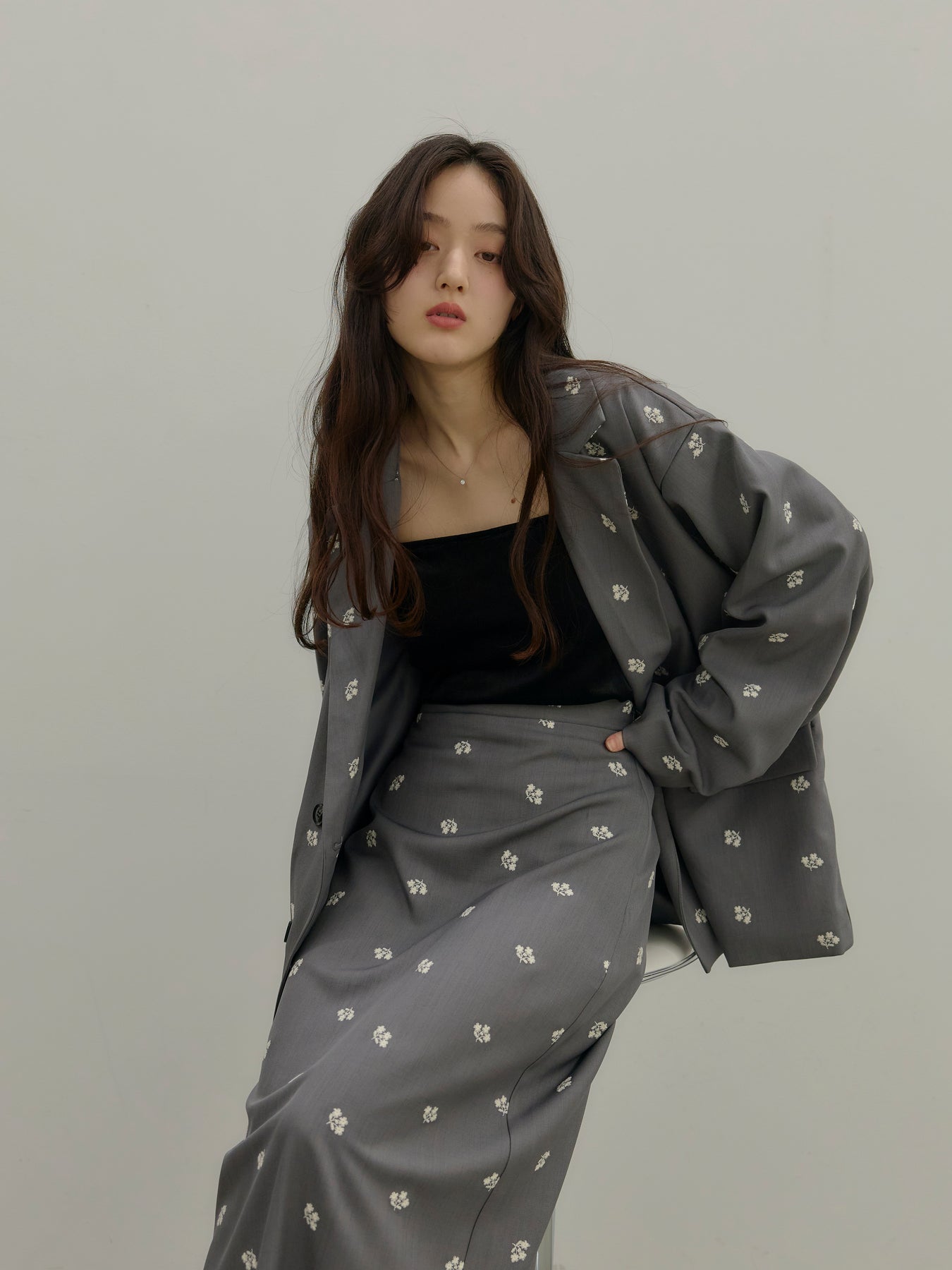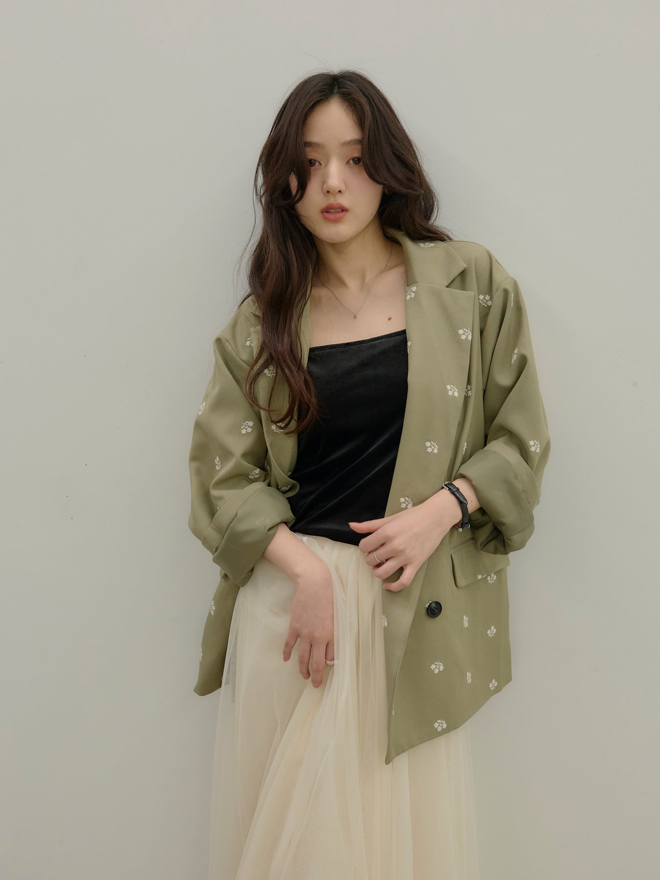 フラワー刺繍が施されたテーラードジャケット。今の気分にぴったりなやや大きめなつくりなのでスタイリングに抜け感を生んでくれます。白で統一された刺繍でさりげないガーリーなアクセントになってくれます。一着で華やかなのでボトムはシンプルな組み合わせを楽しんでいただけます。裏地付き。