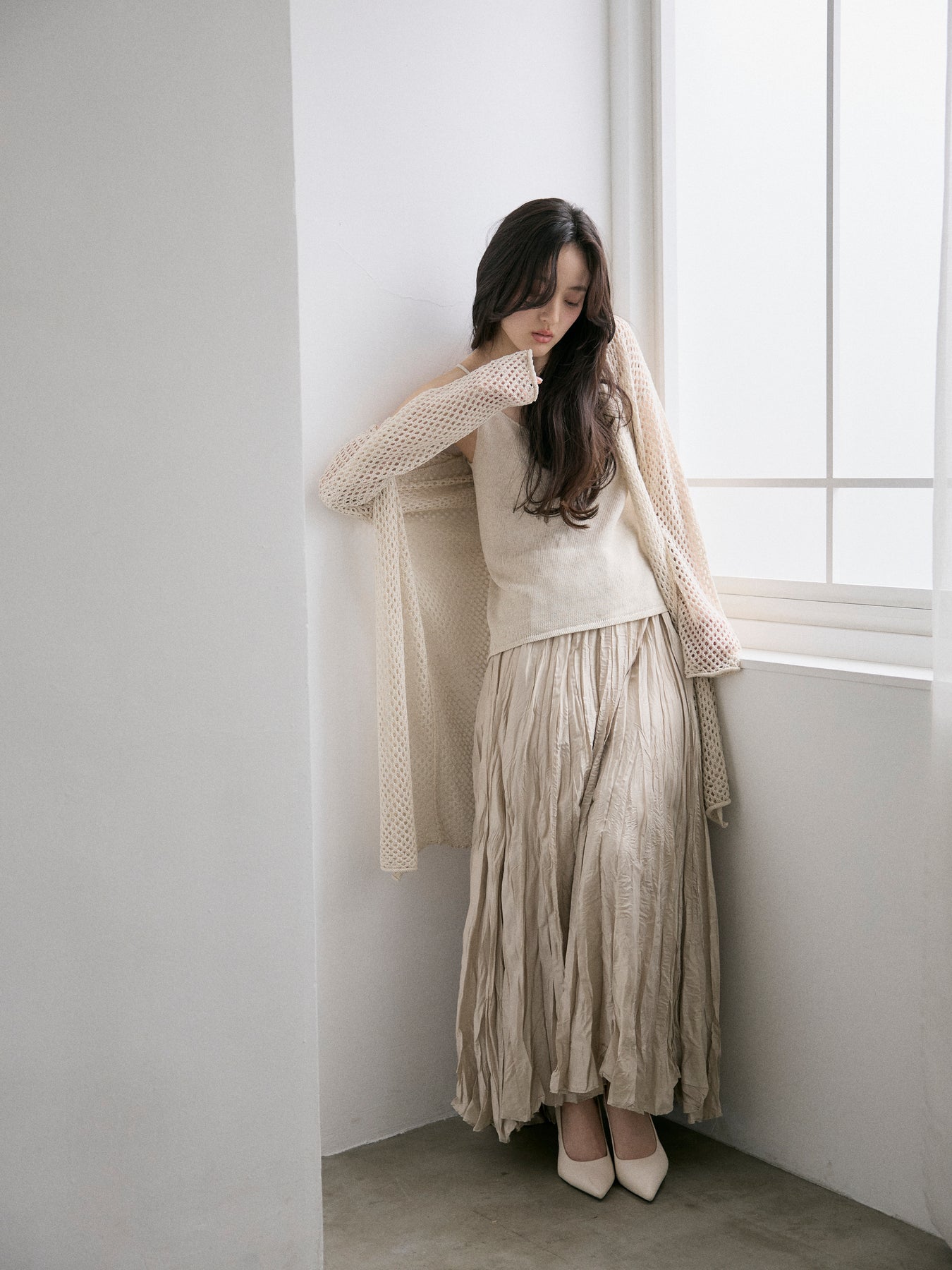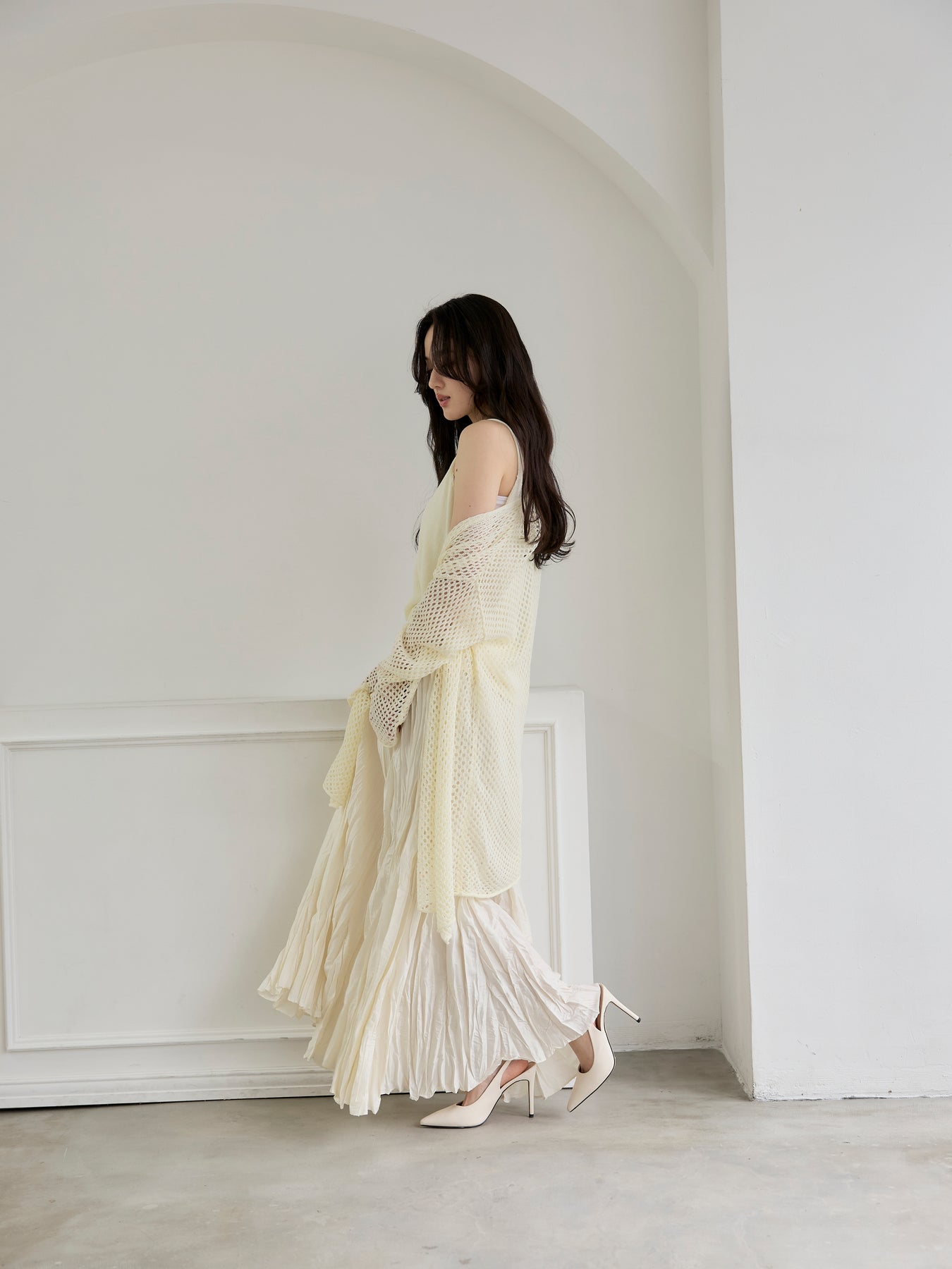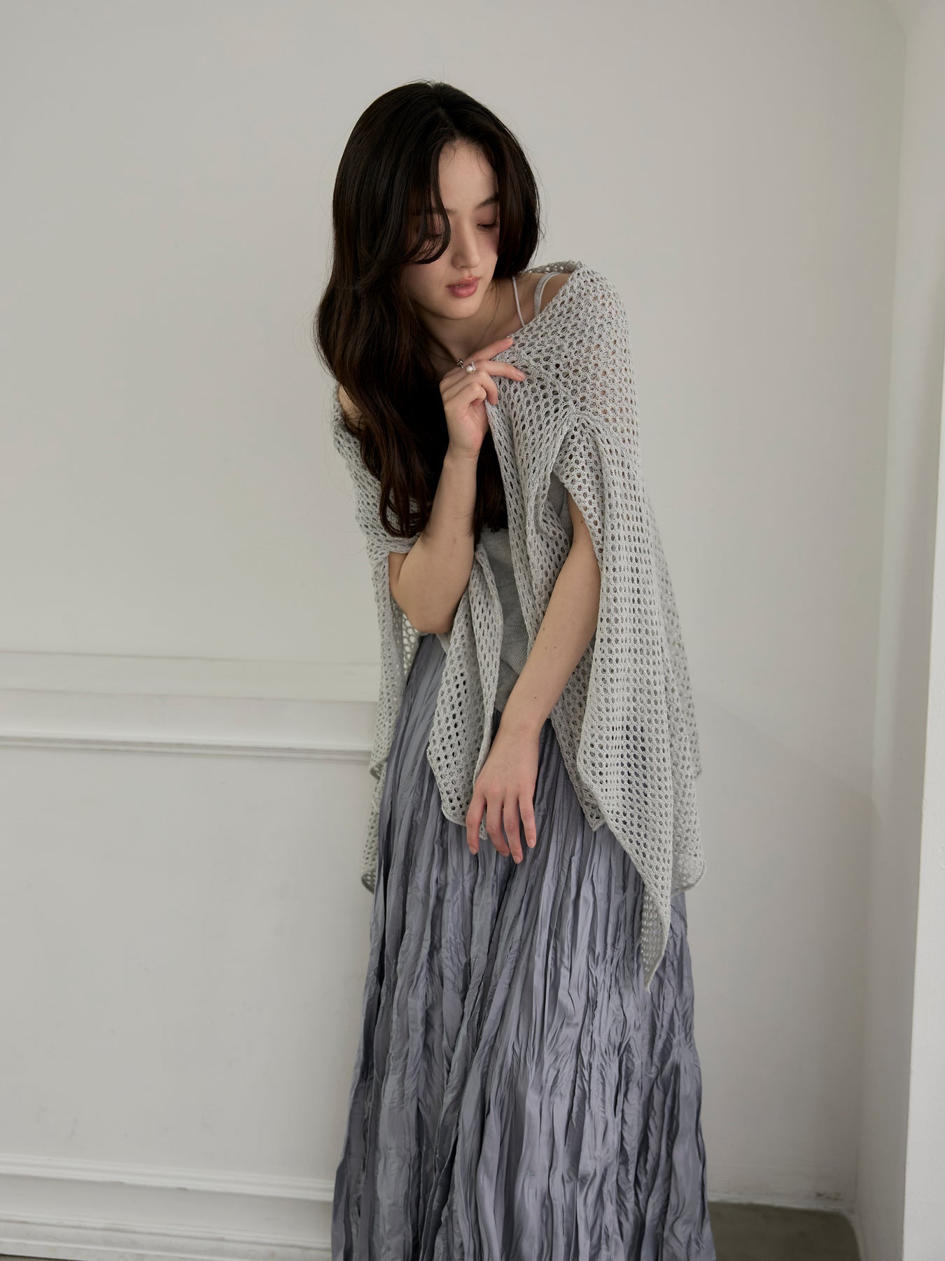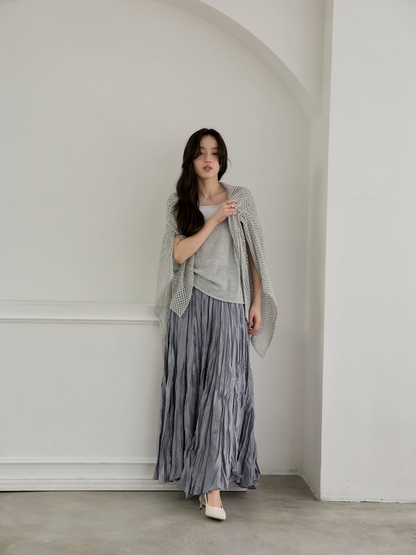 動くたびに揺れる軽やかなシルエットが、女性らしいニュアンスを演出します。