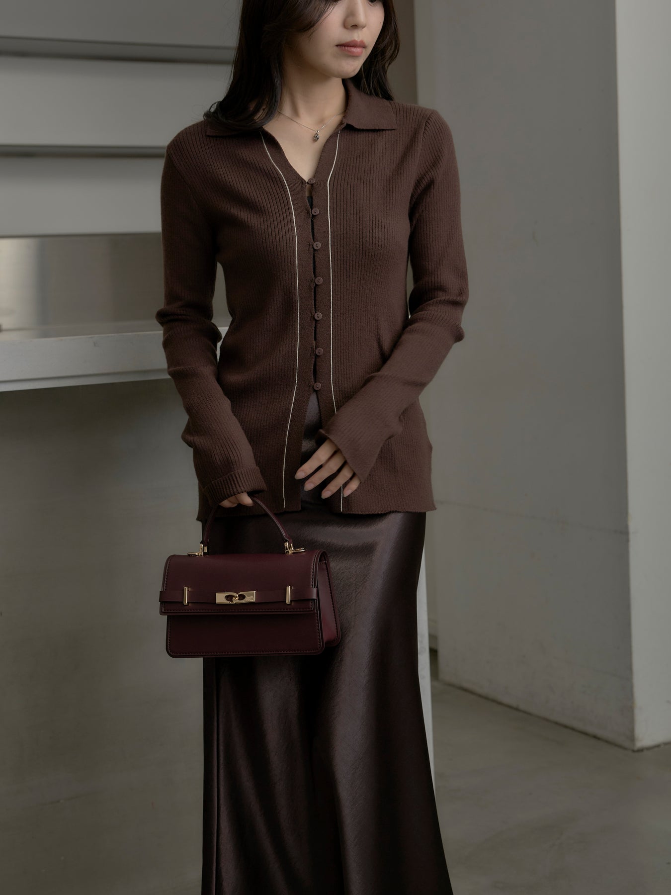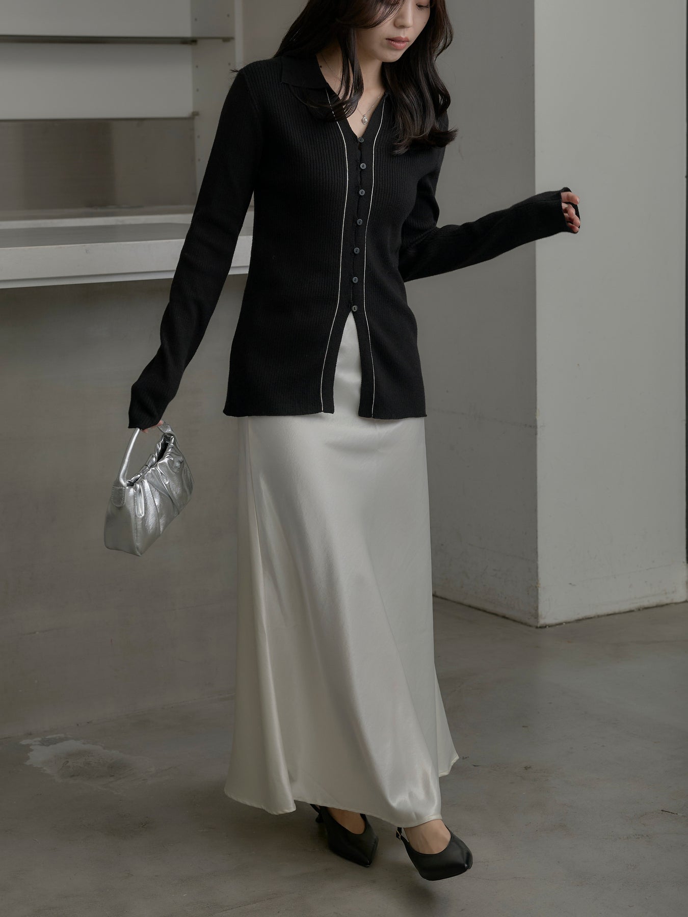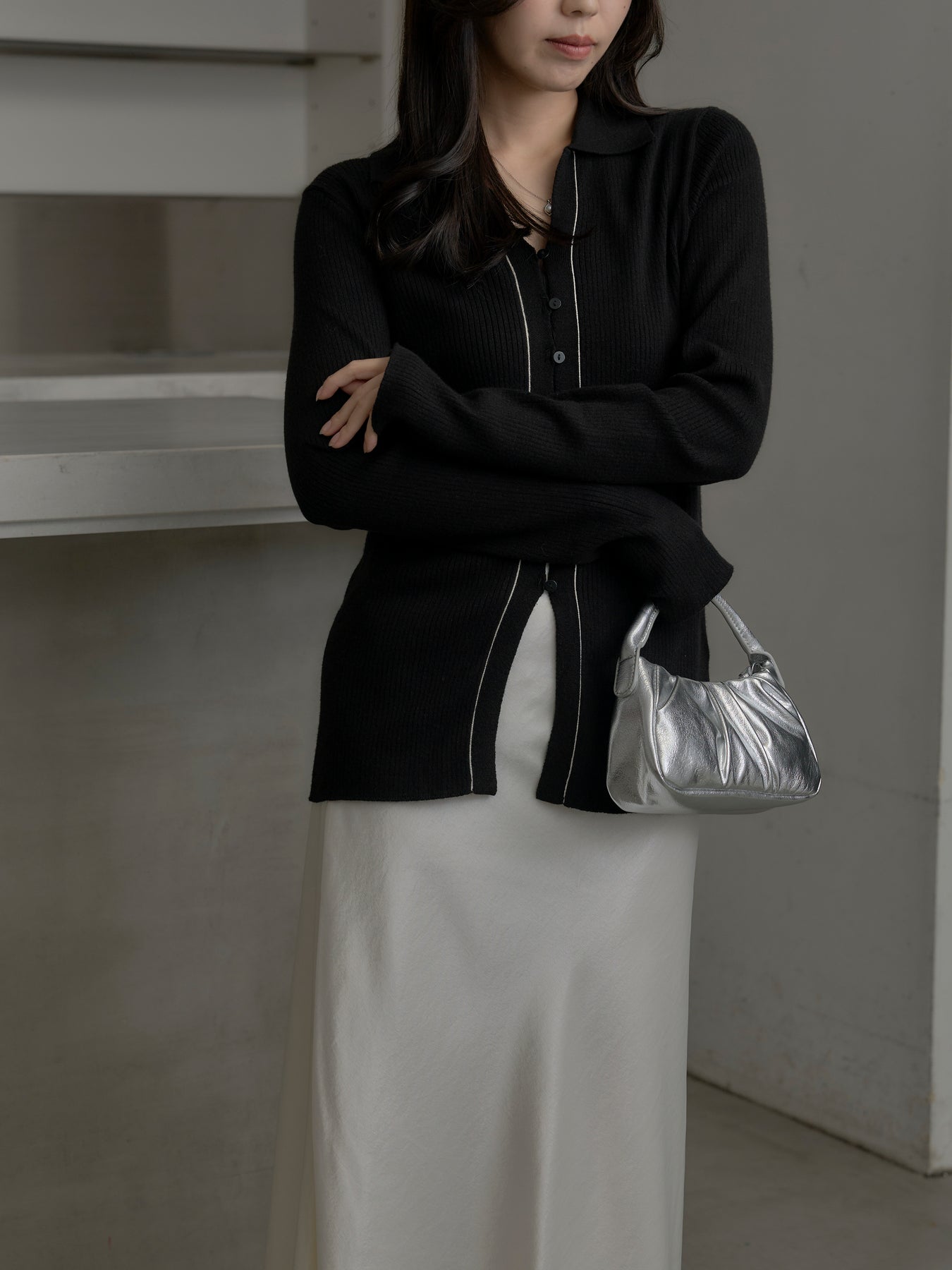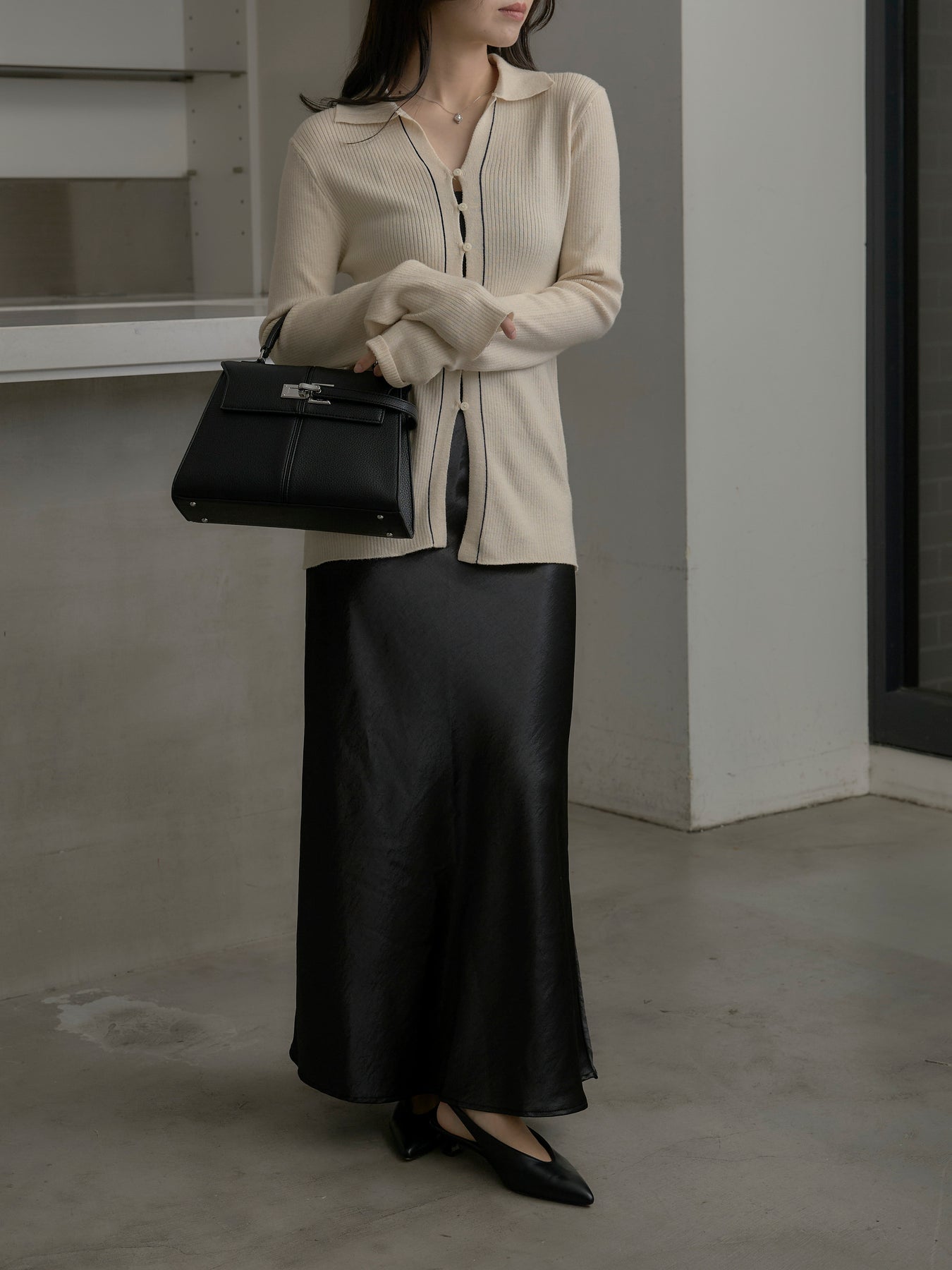 フロントの配色ラインがアクセントになったリブニットカーディガン。