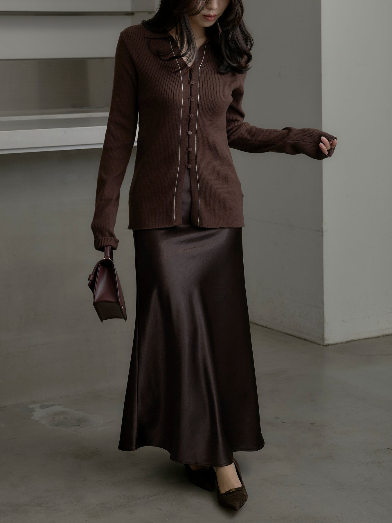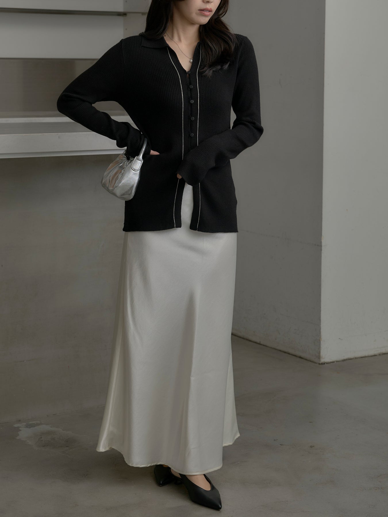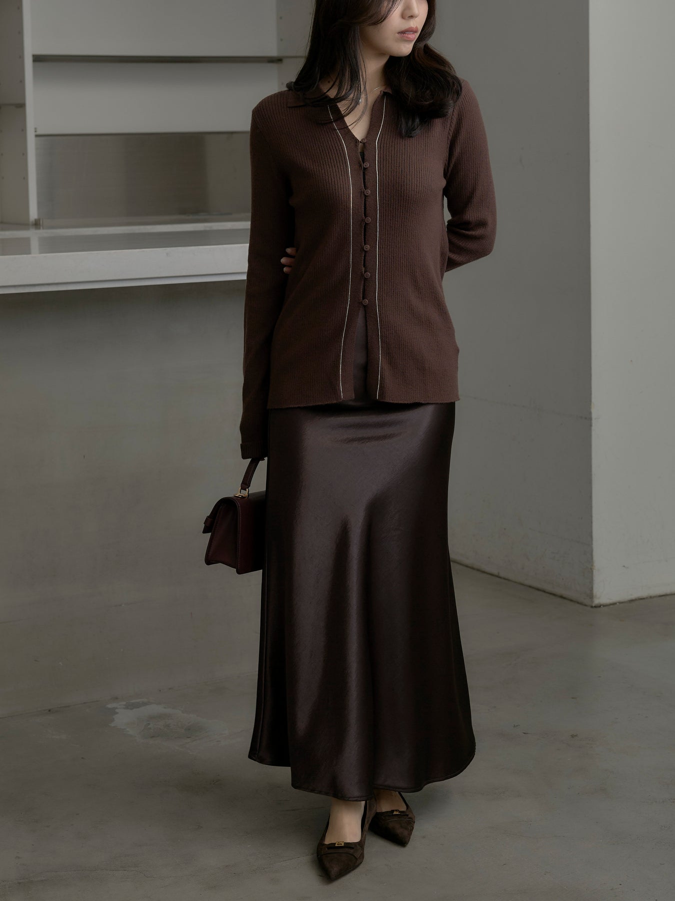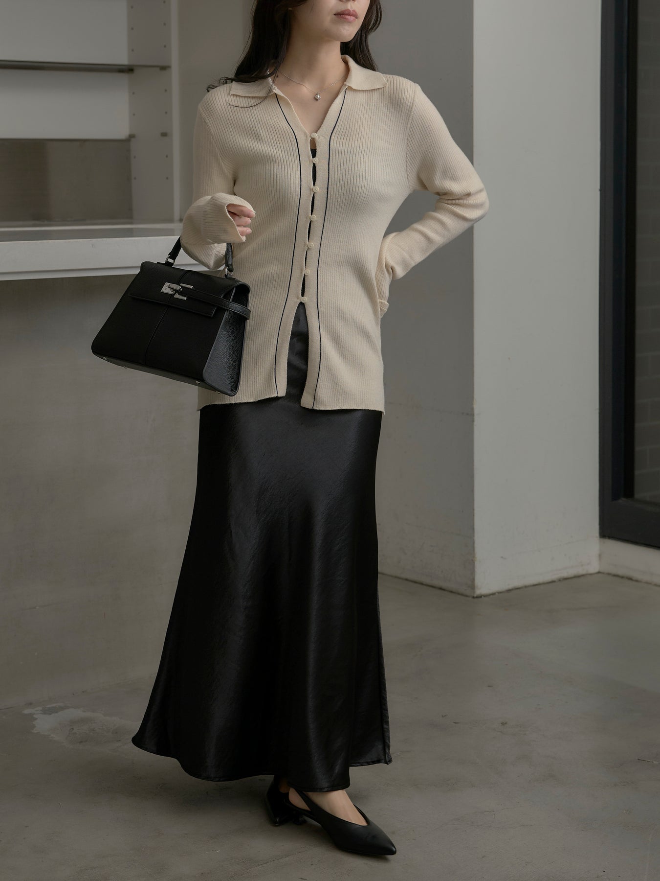 フロントの配色ラインがアクセントになったリブニットカーディガン。