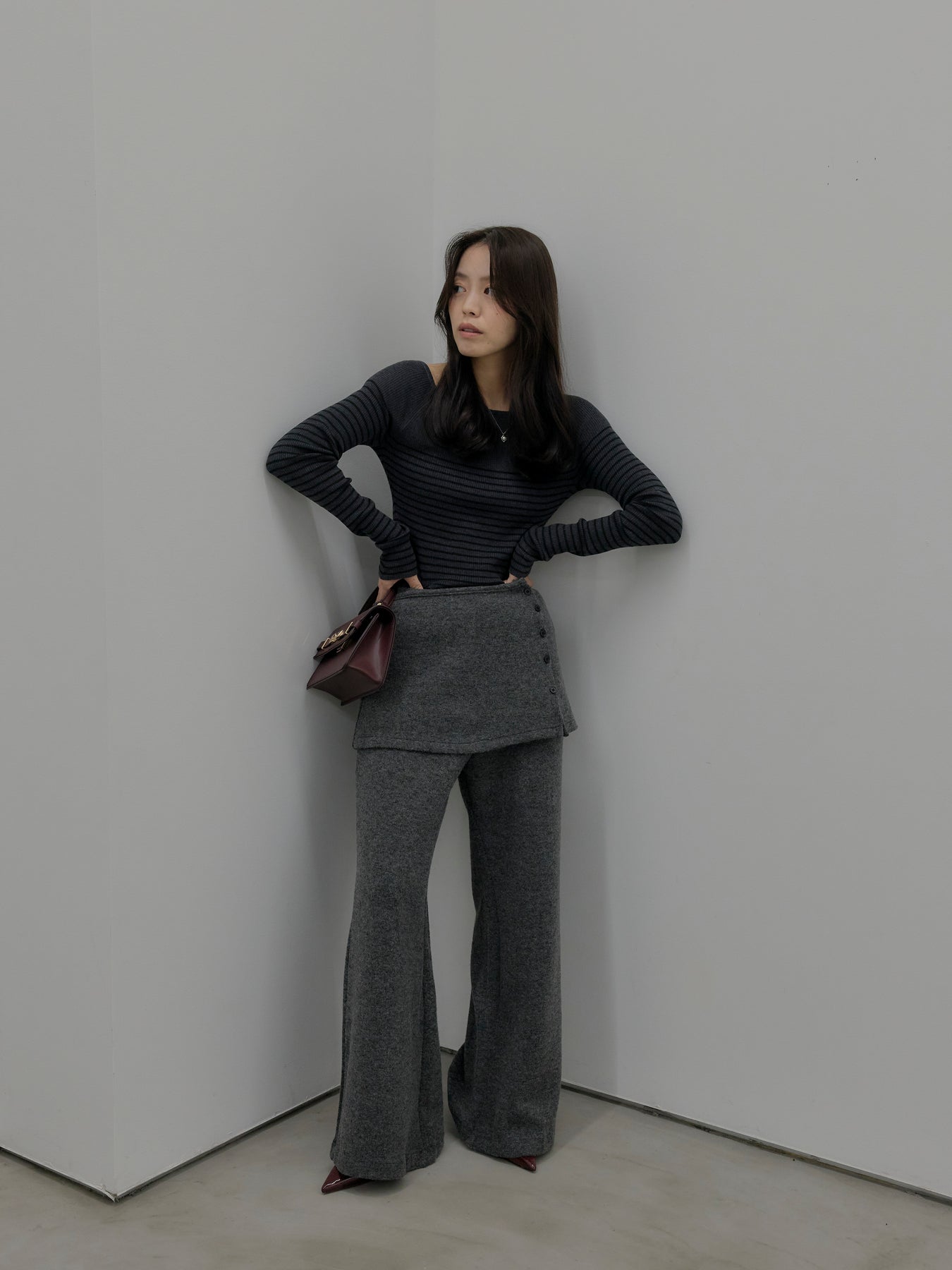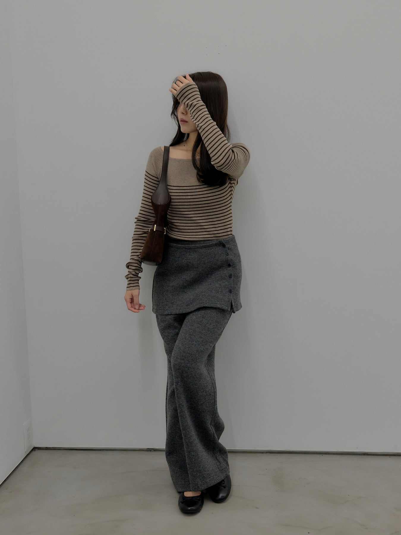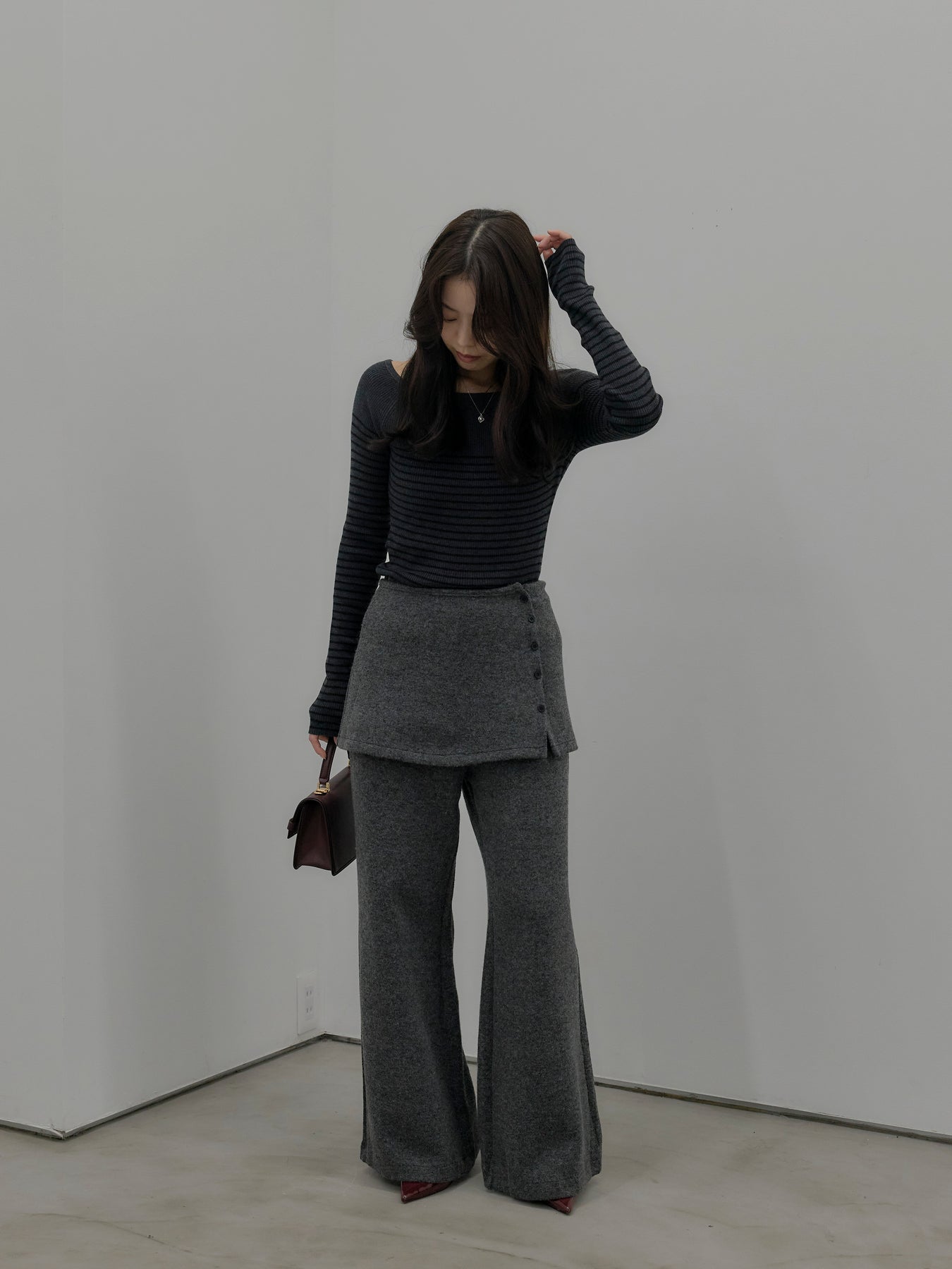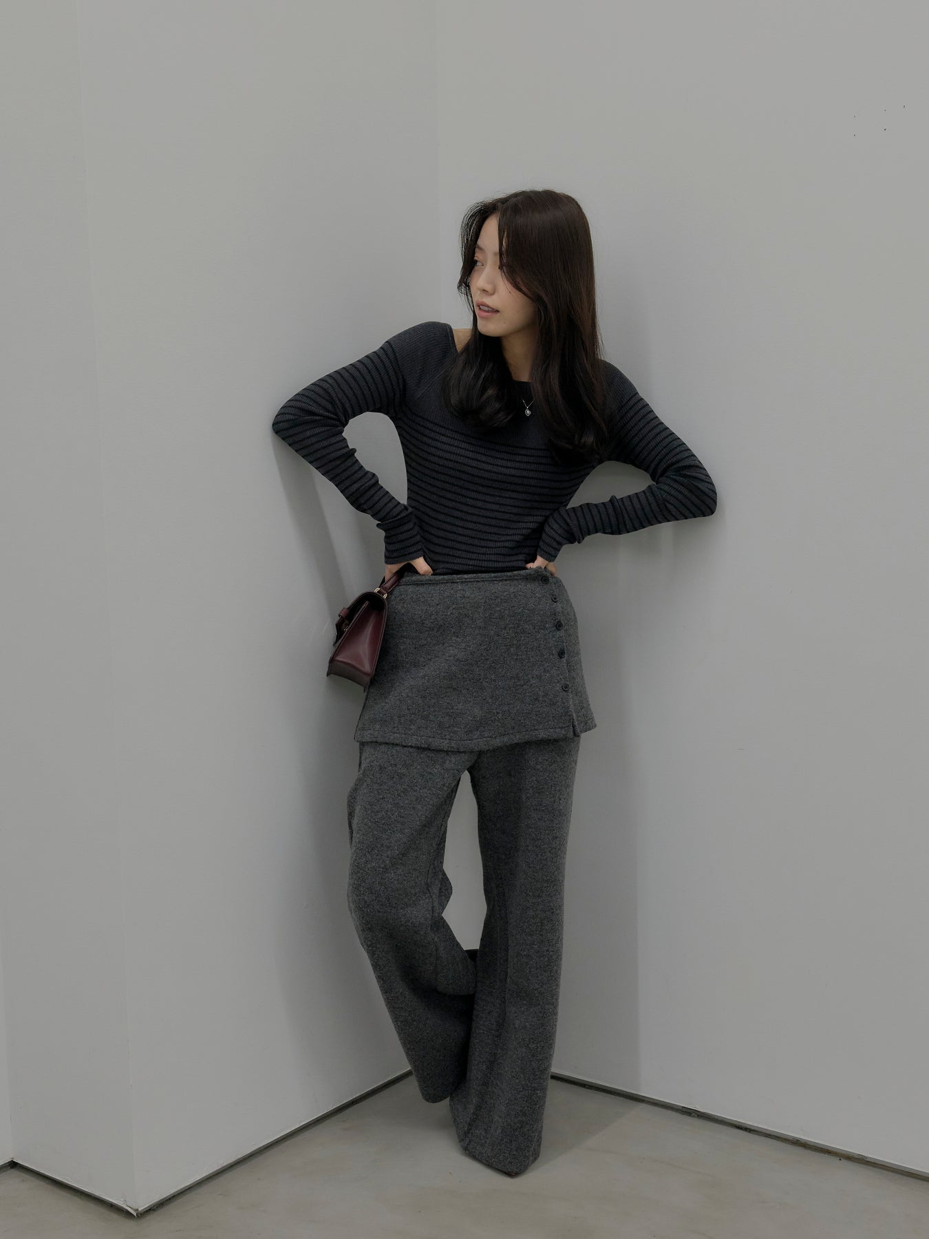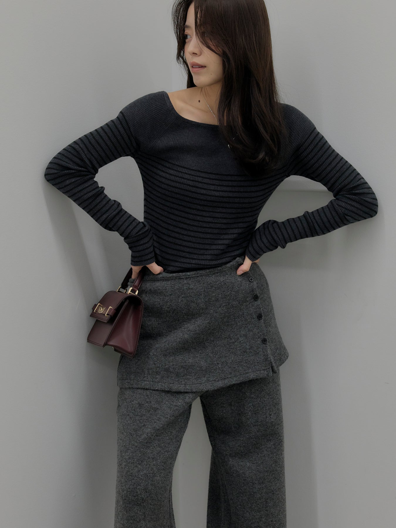 ラップデザインが動きのあるシルエットを生み出し、リラックス感の中にもこなれた印象をプラス。