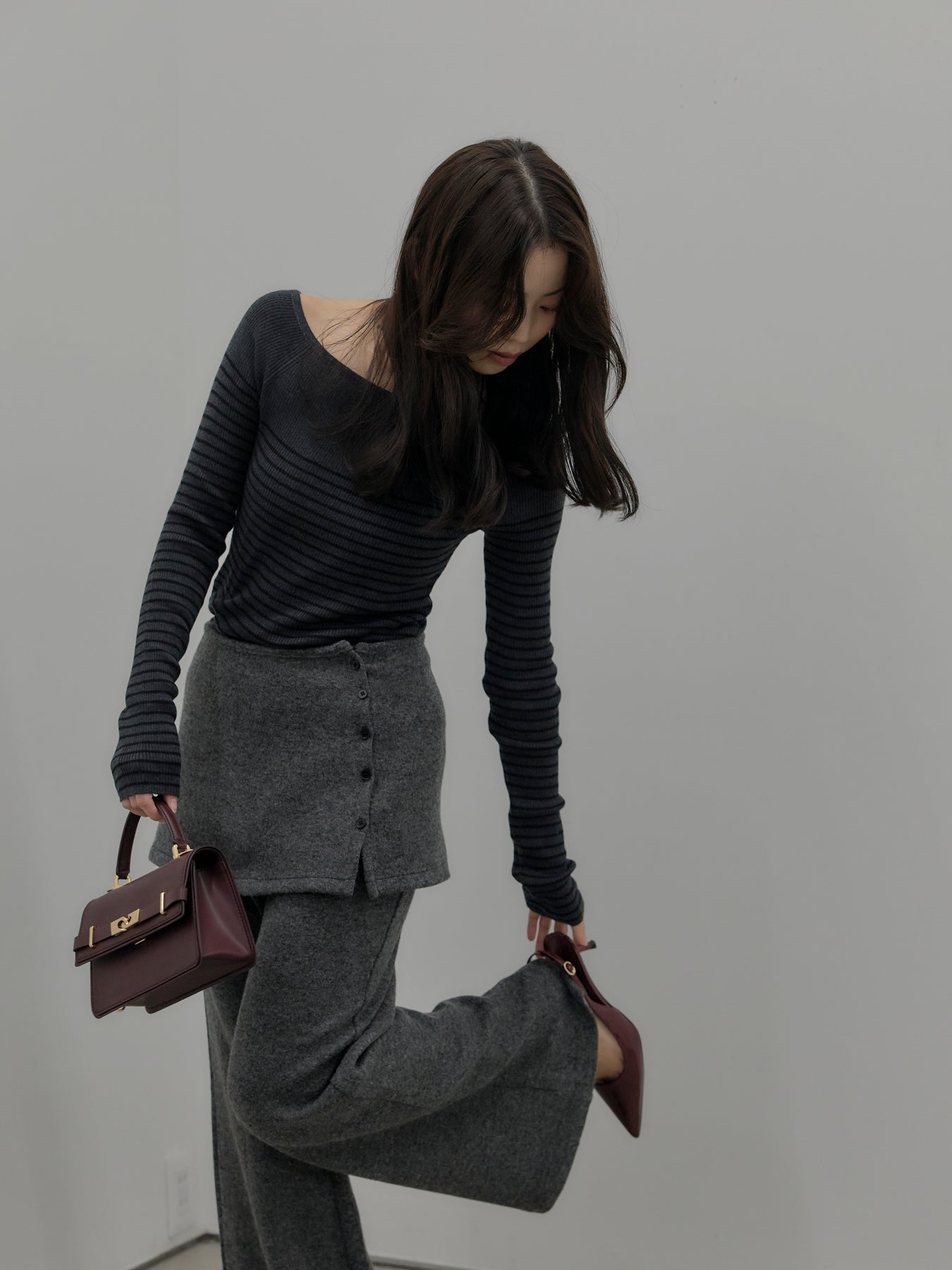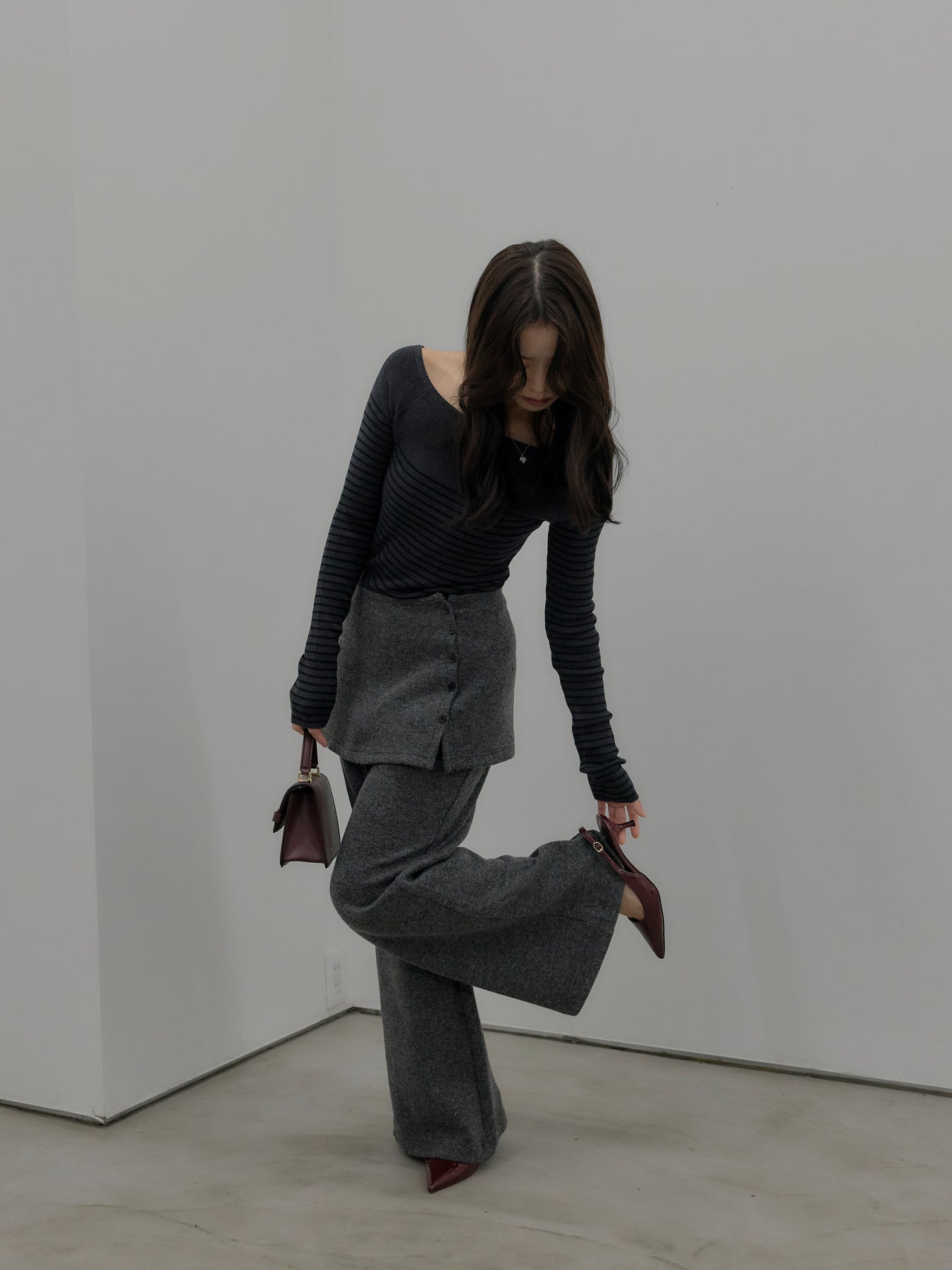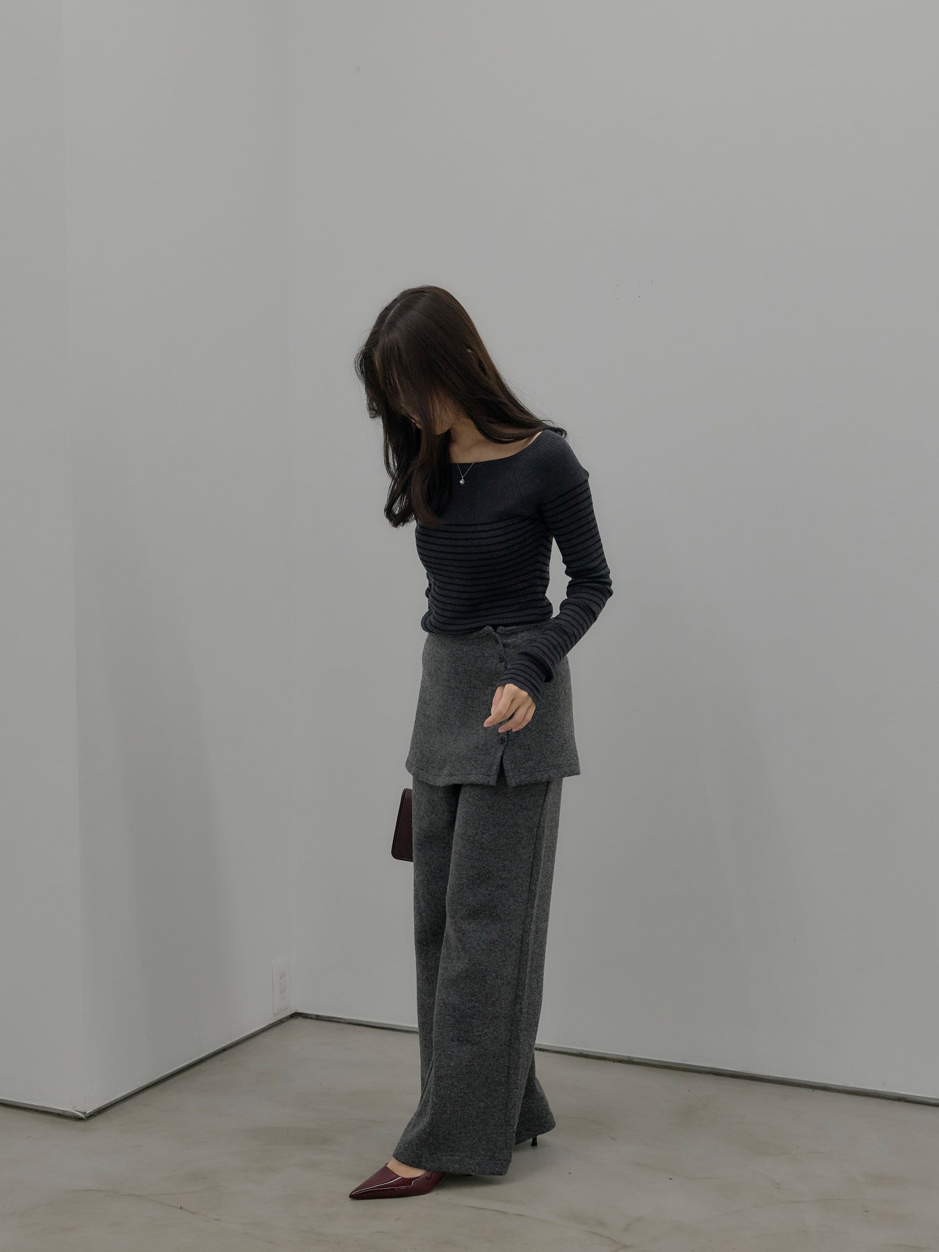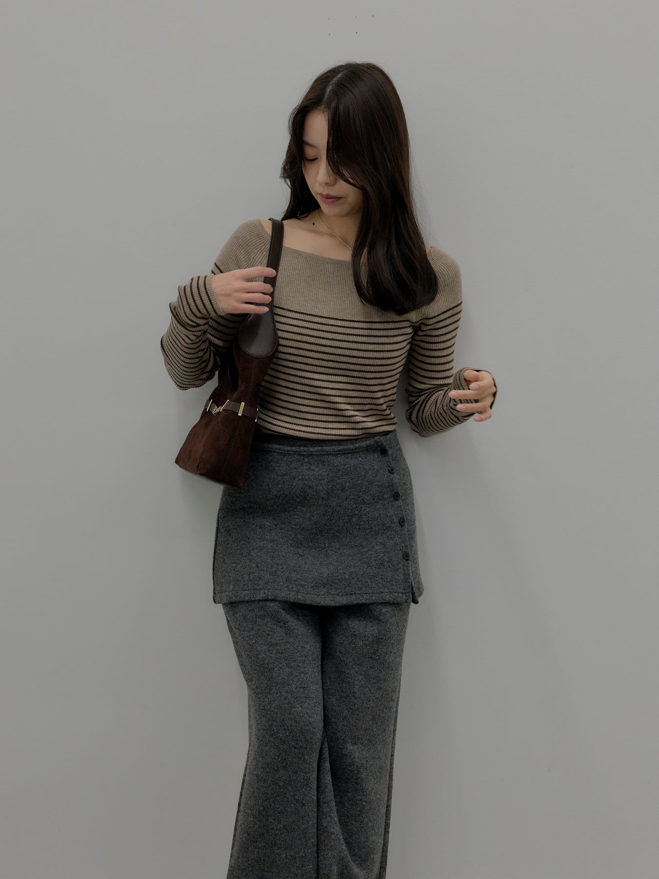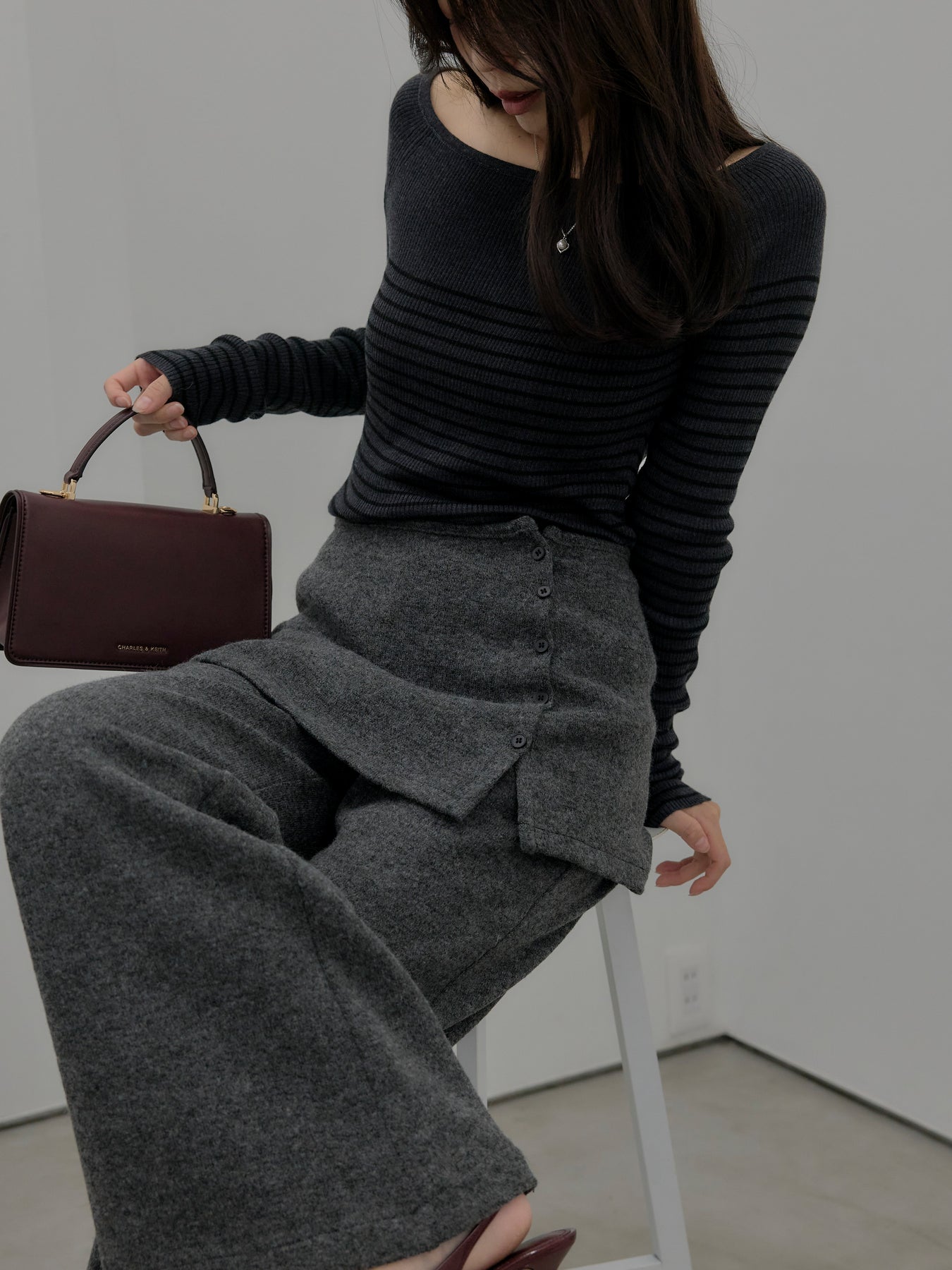 ラップデザインが動きのあるシルエットを生み出し、リラックス感の中にもこなれた印象をプラス。
