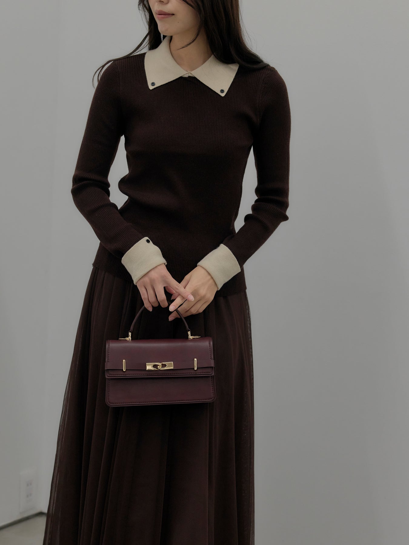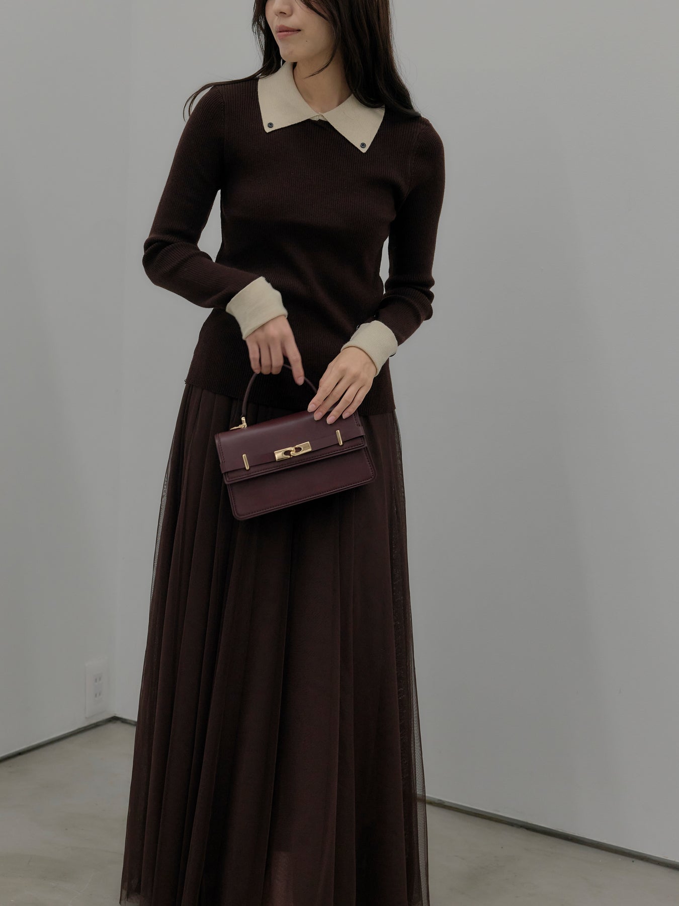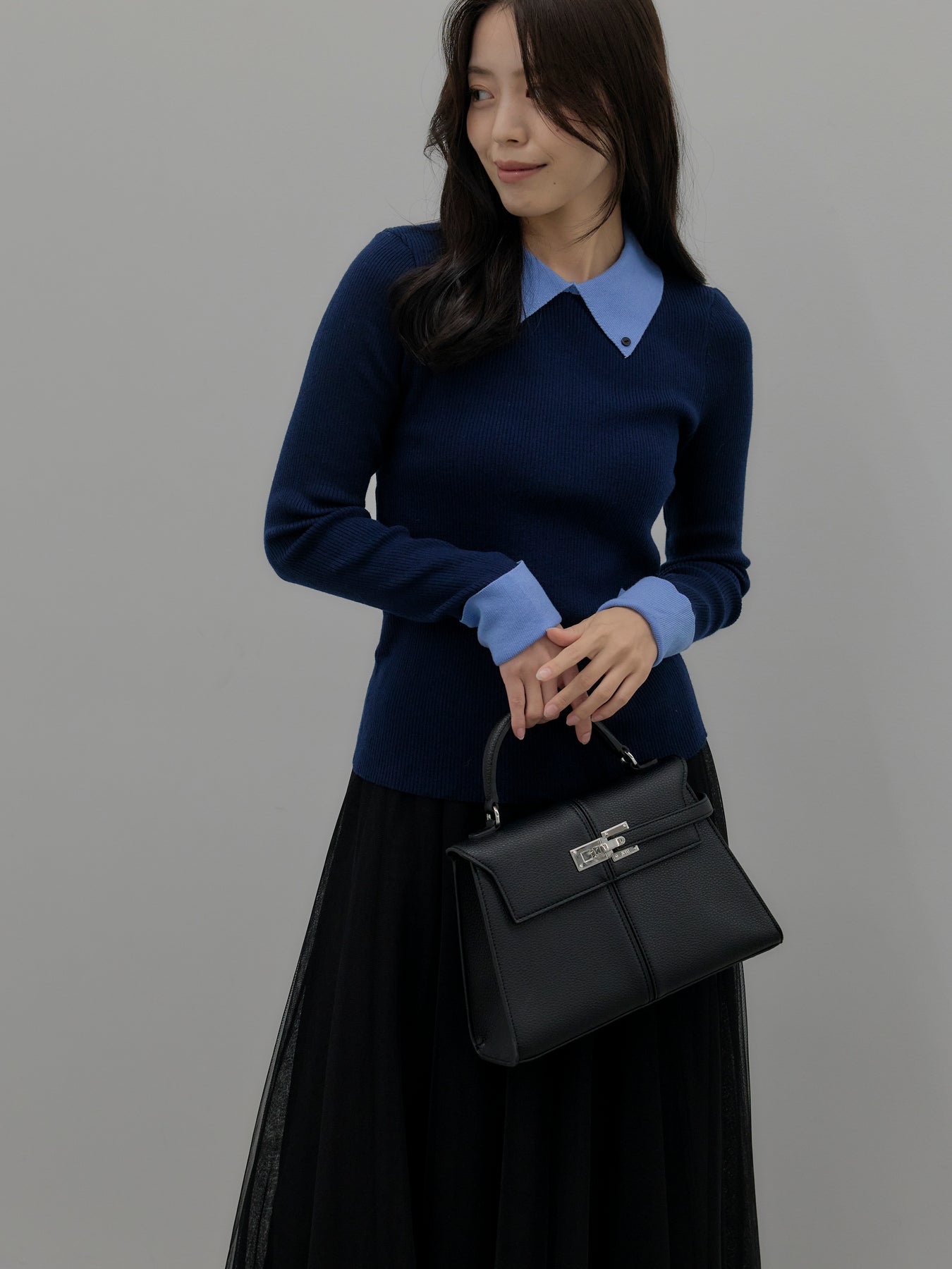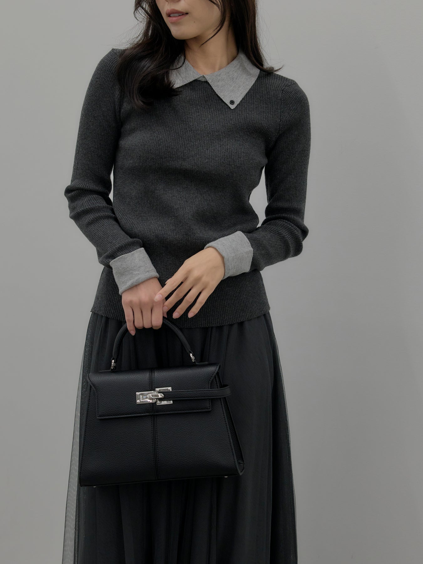 襟付きデザインがきちんと感をプラスし、デニムからスカートまで幅広いスタイリングにマッチします。