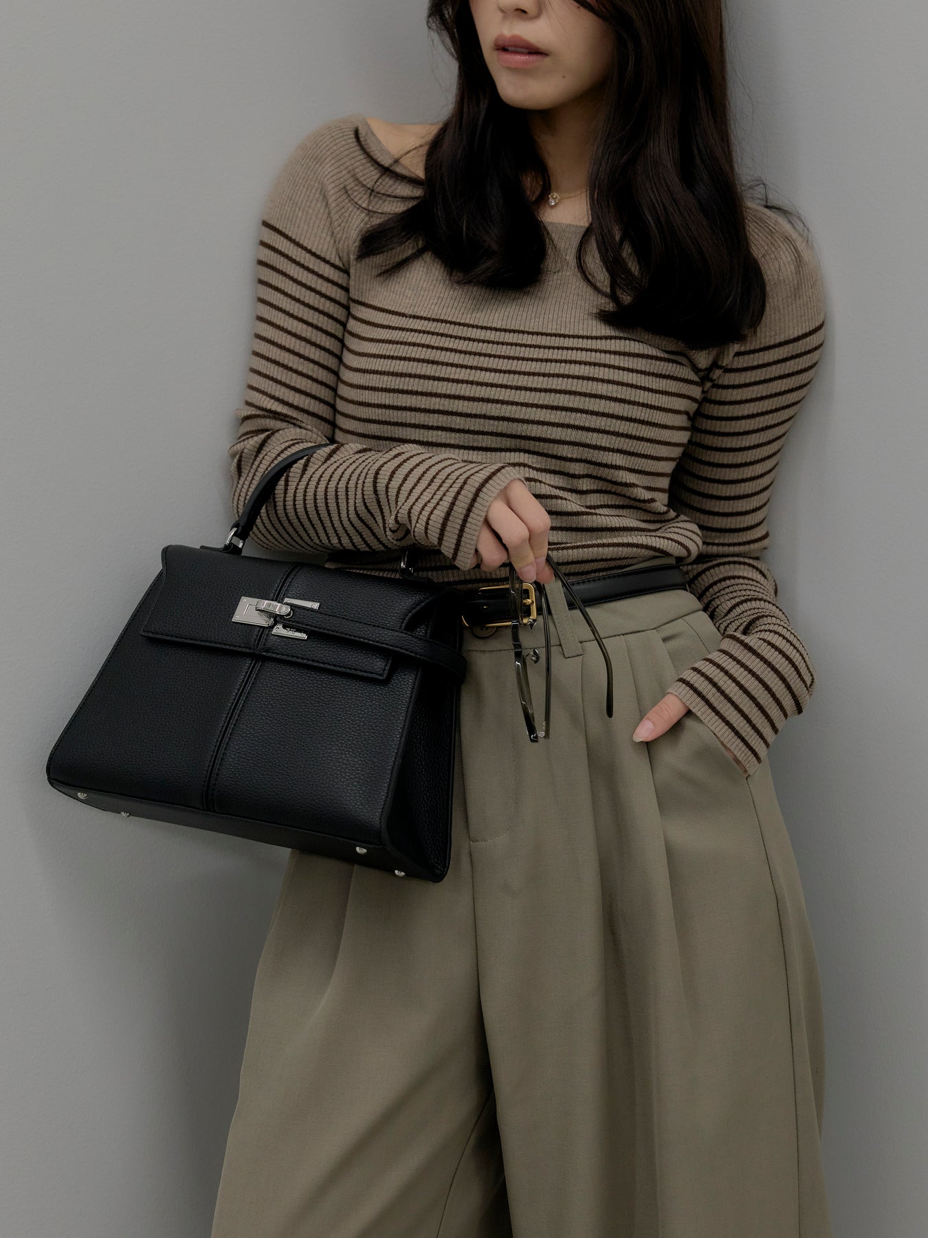 シンプルながらも存在感のあるデザインで、デニムやスカートなど幅広いコーデにマッチする万能アイテムです。