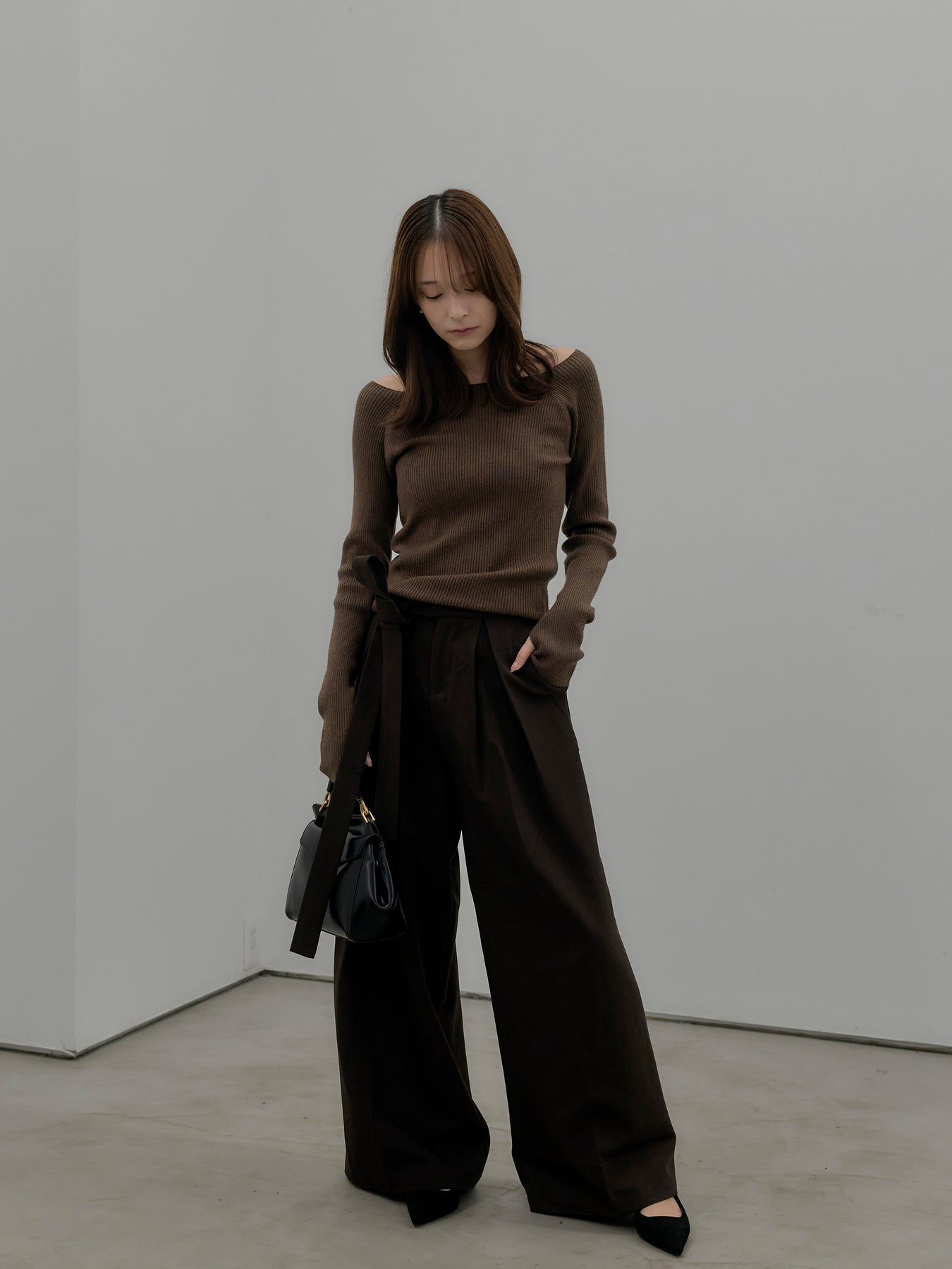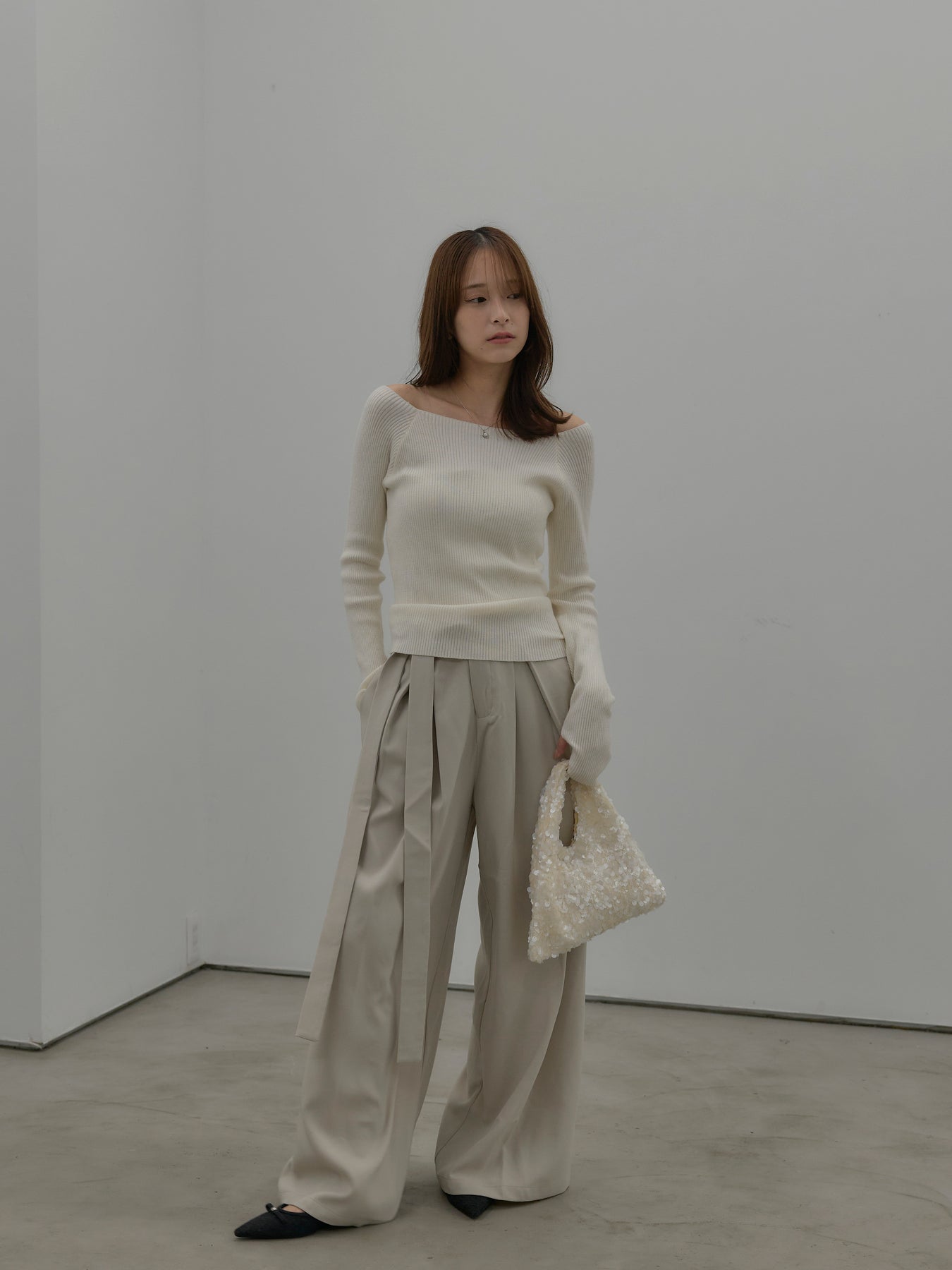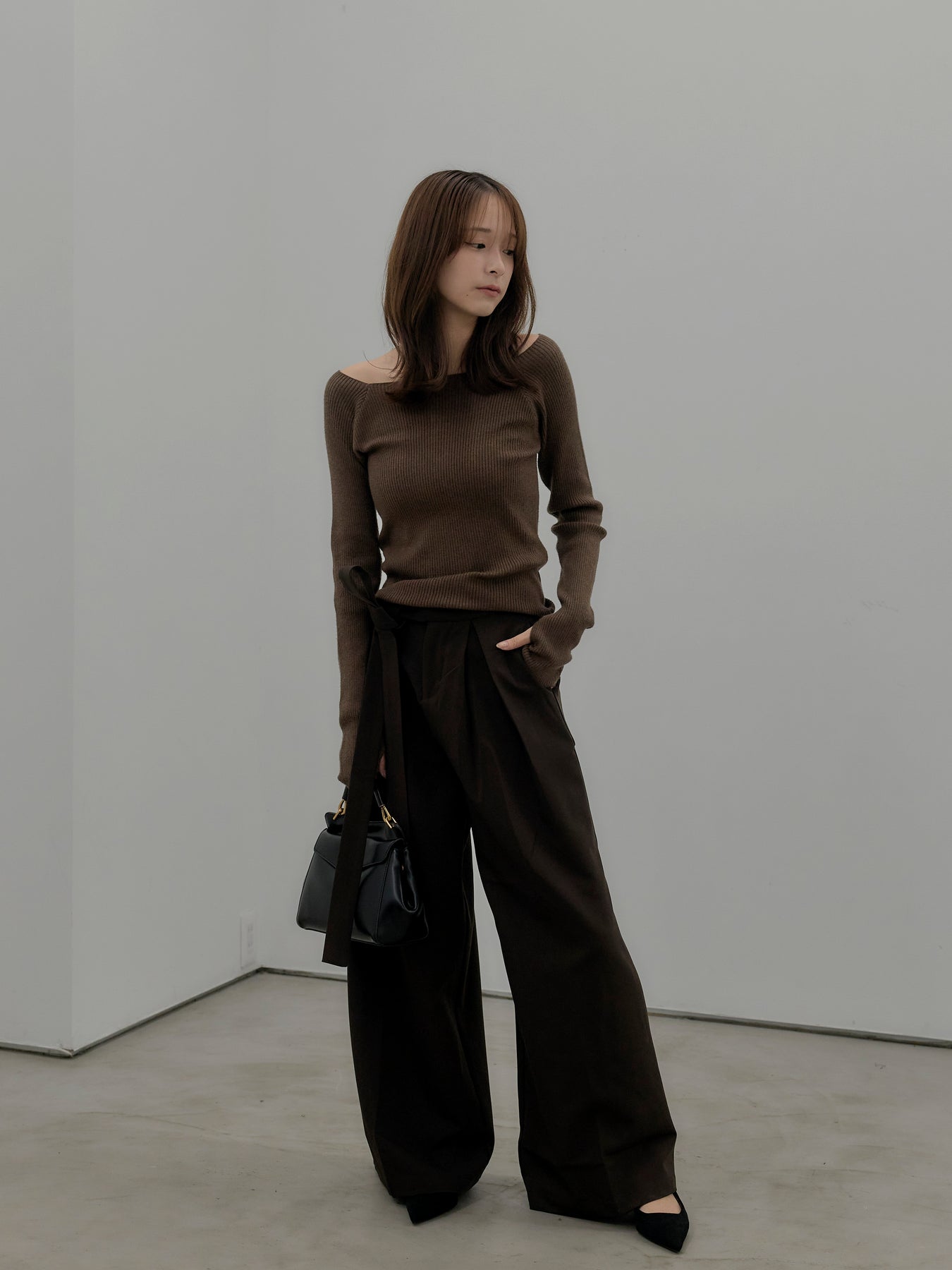 ウエストのリボンデザインがポイントのワイドパンツ。