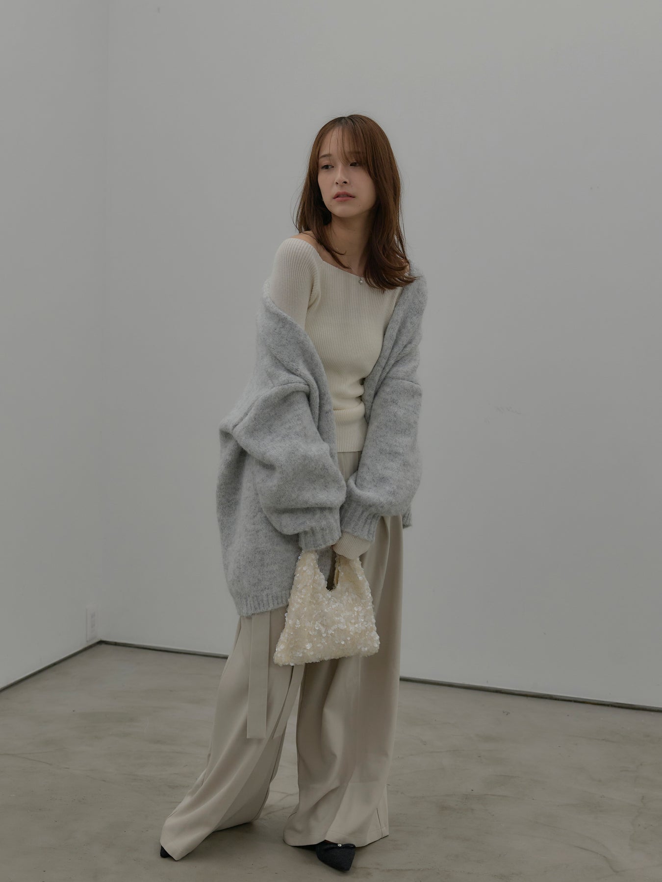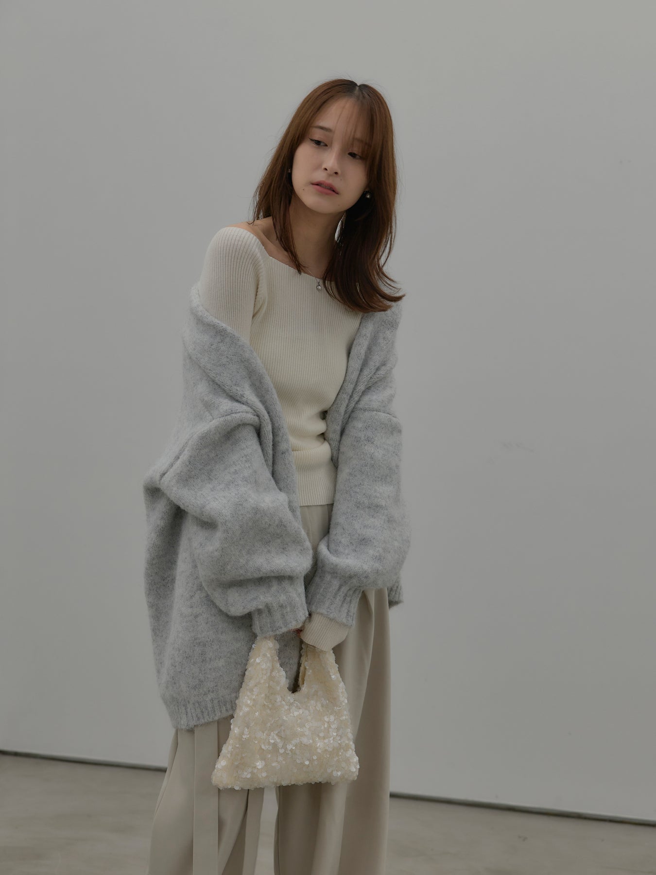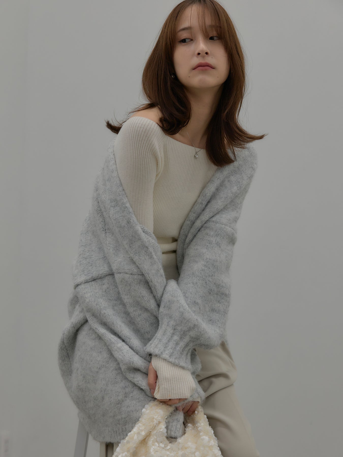 ふんわりとした毛足の長いモヘアライク素材が魅力のオーバーカーディガン。