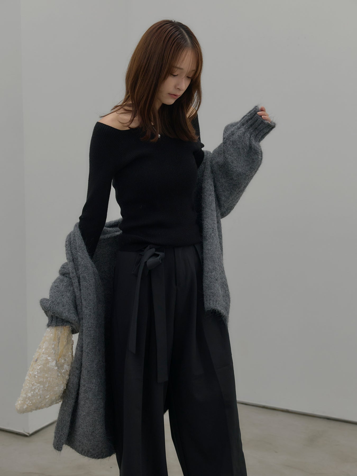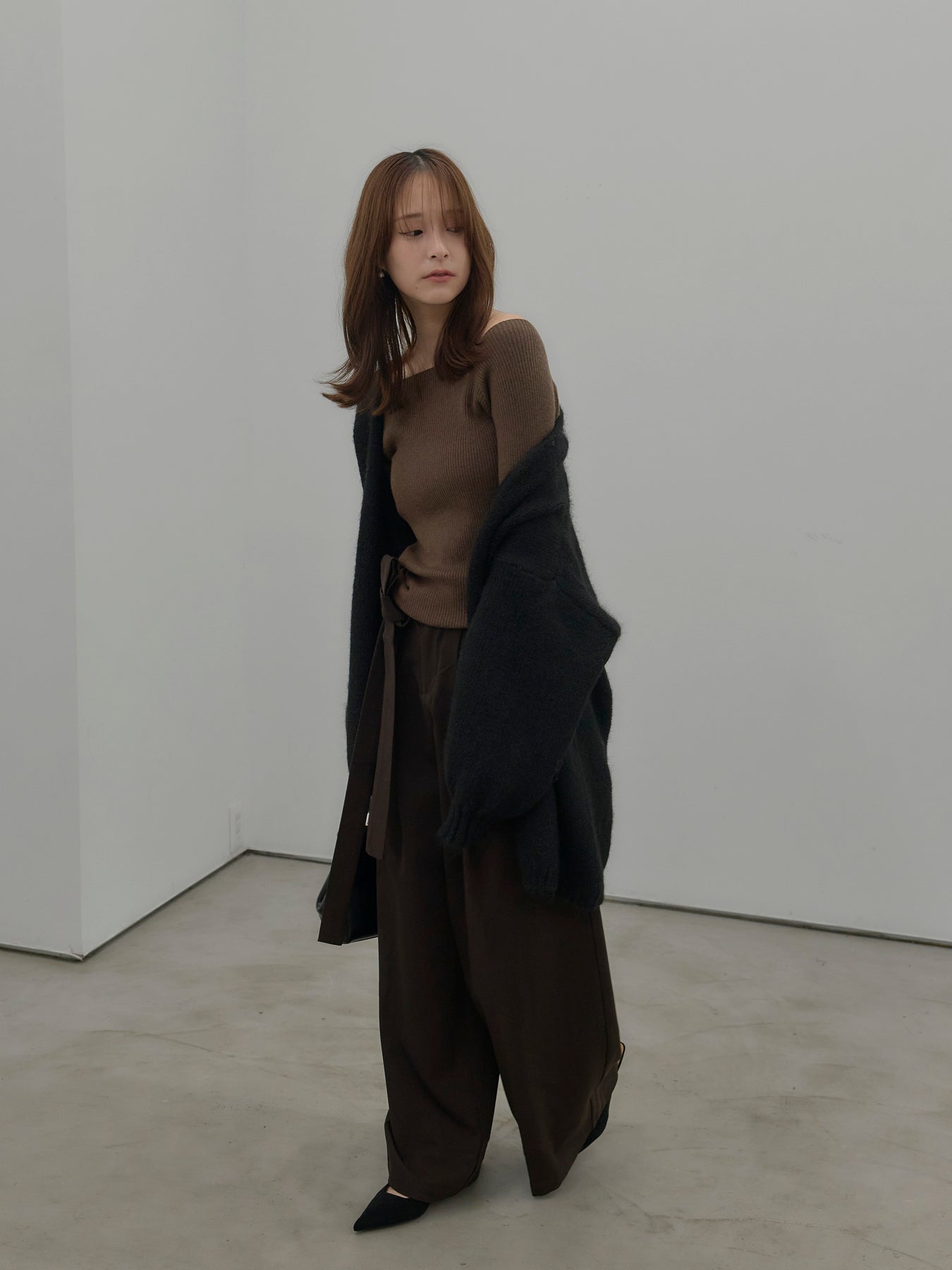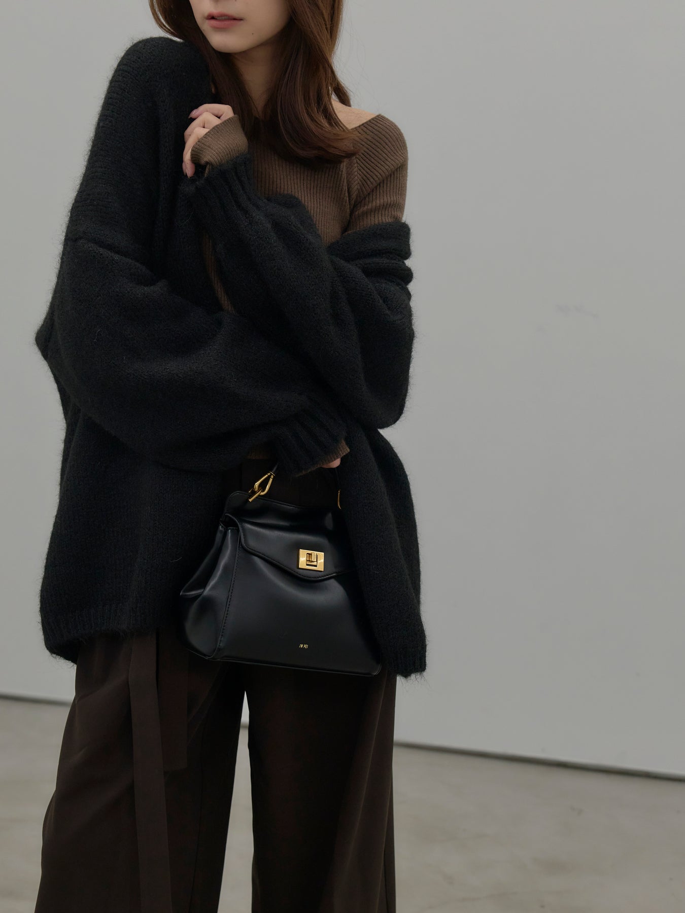ふんわりとした毛足の長いモヘアライク素材が魅力のオーバーカーディガン。