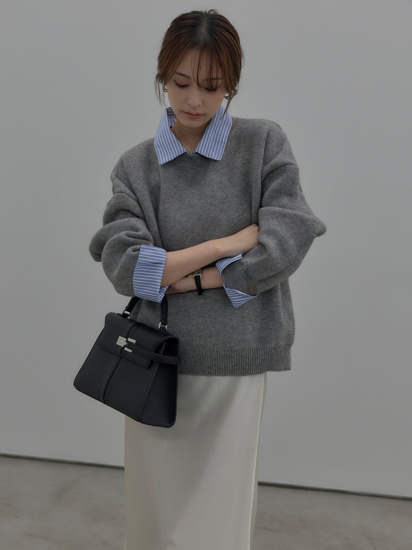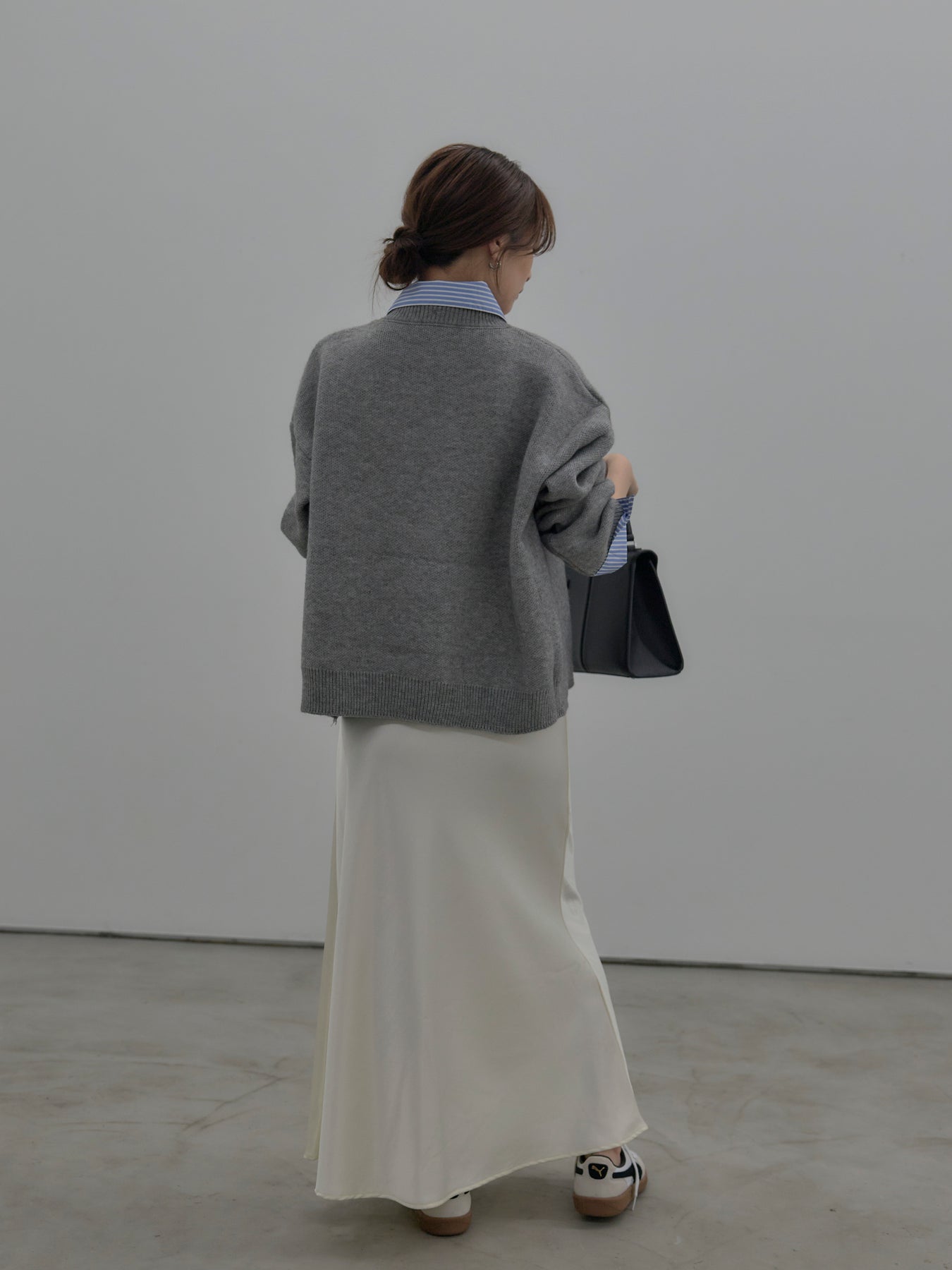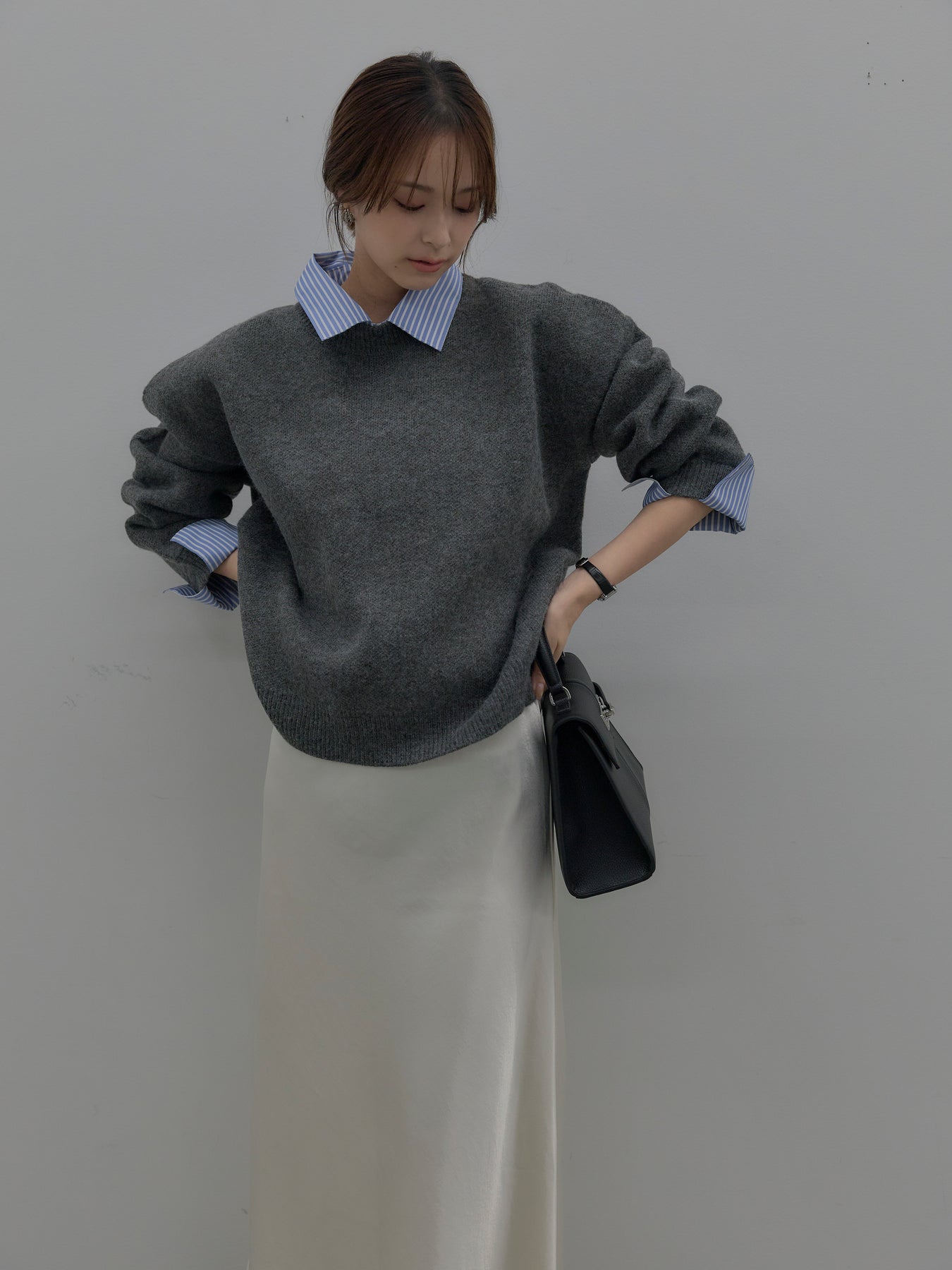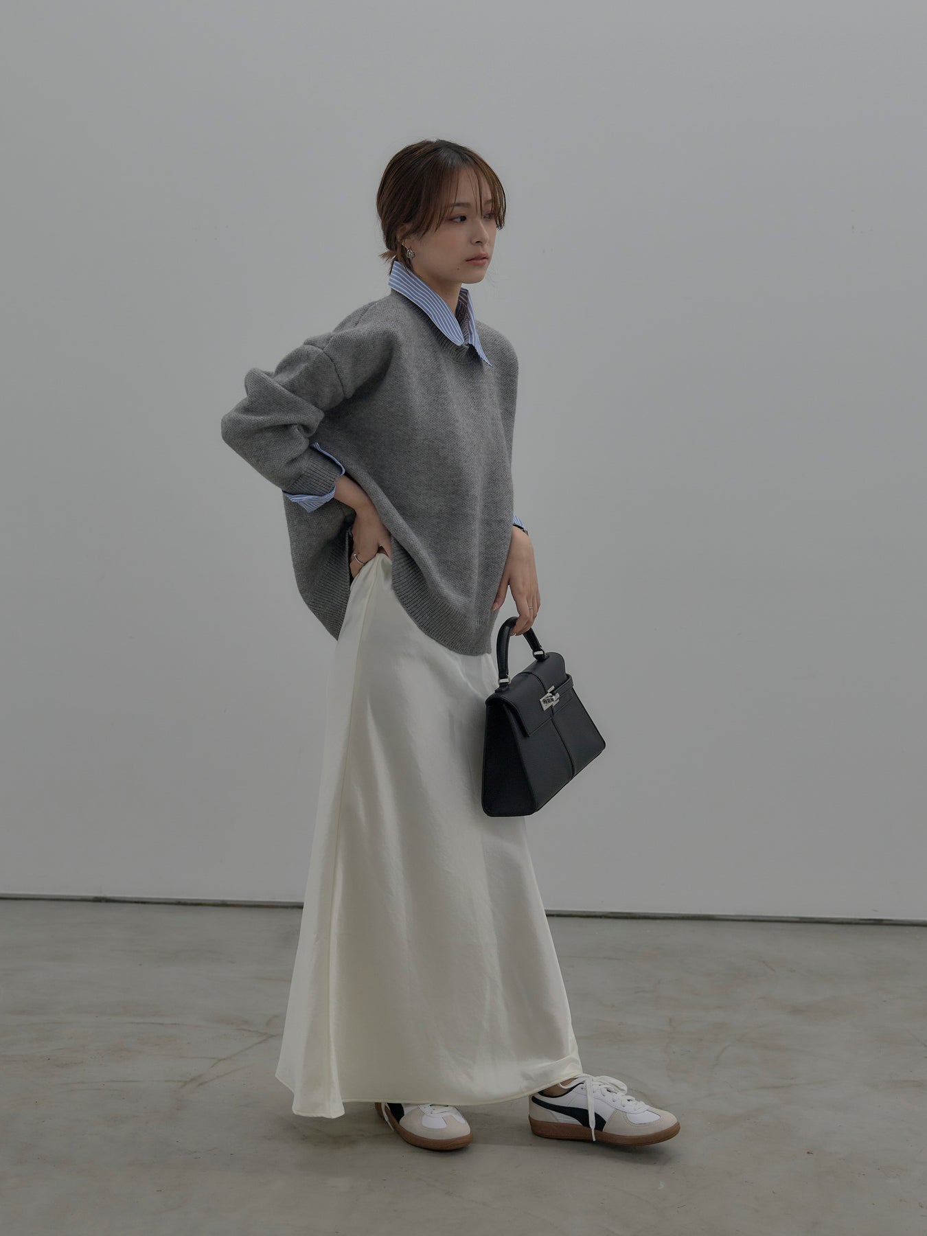 【SET】シャツドッキング肉厚ニットプルオーバー+ナローAラインサテンスカート(2set)