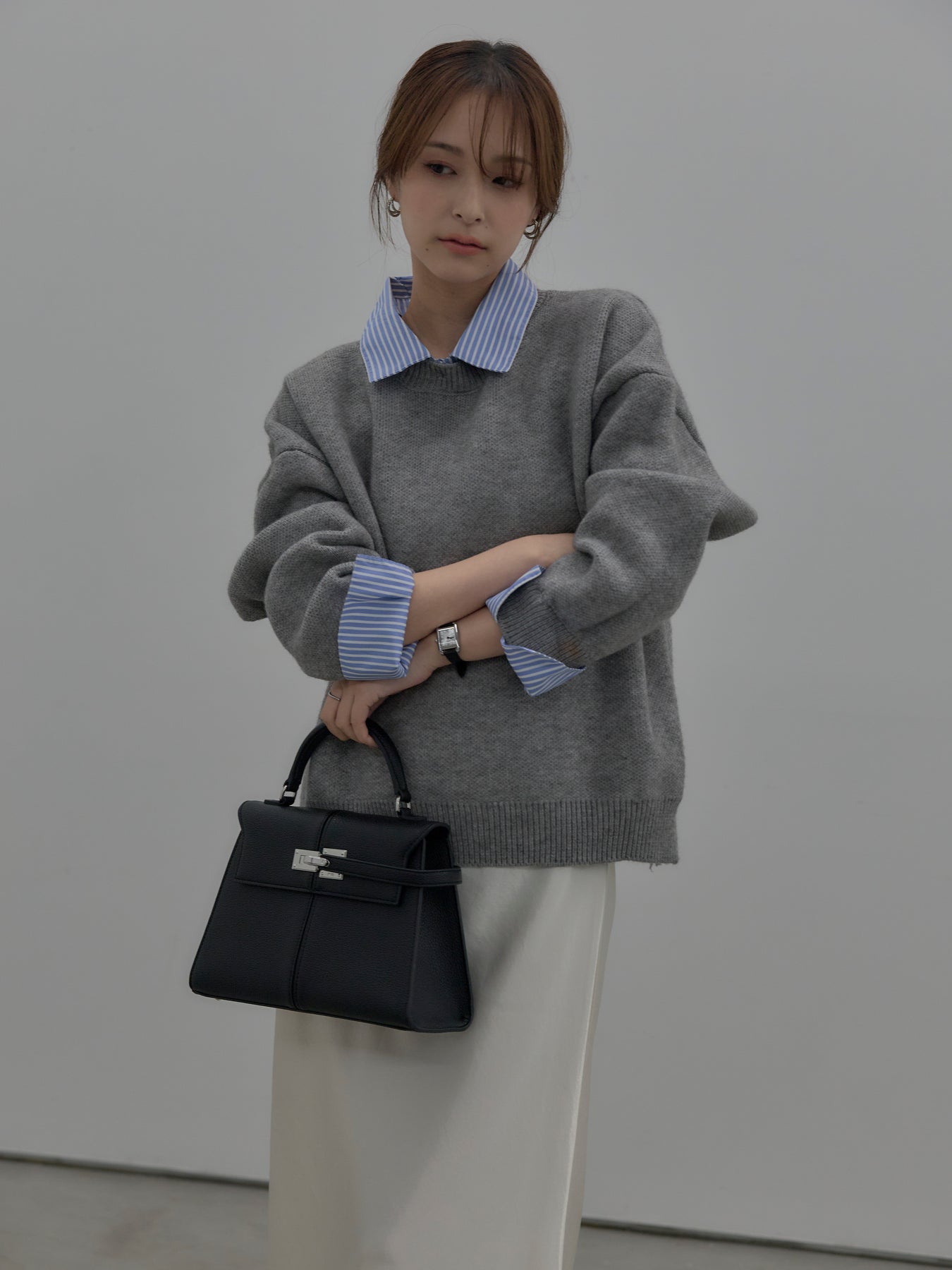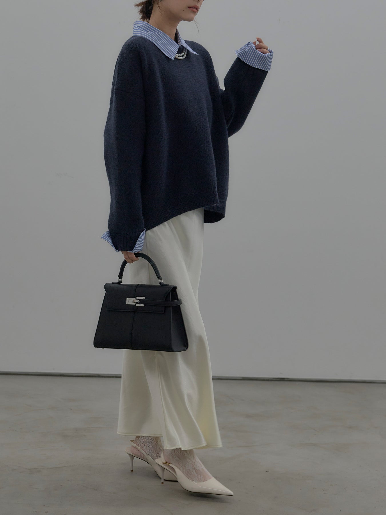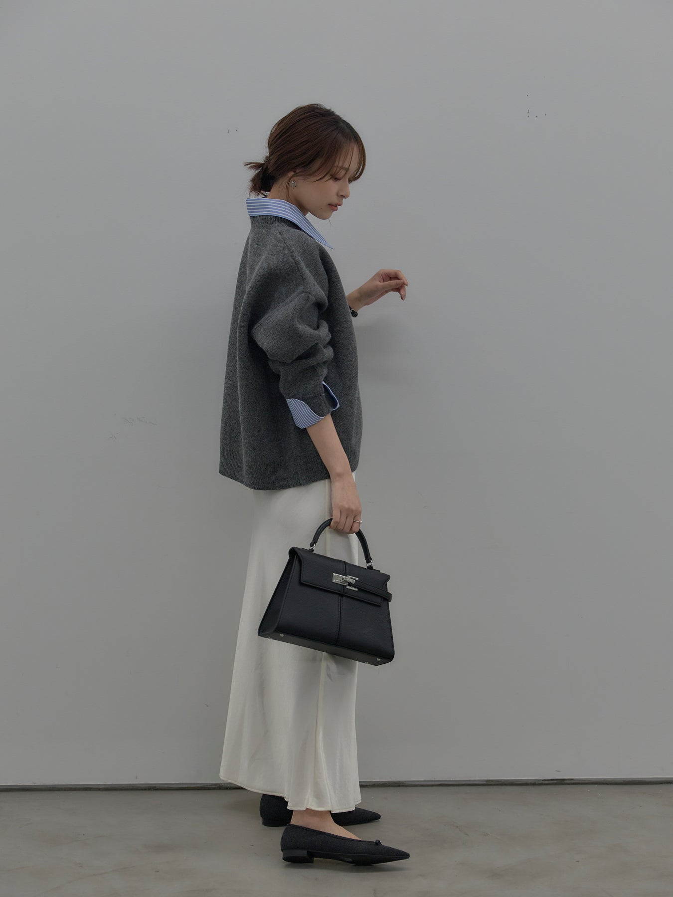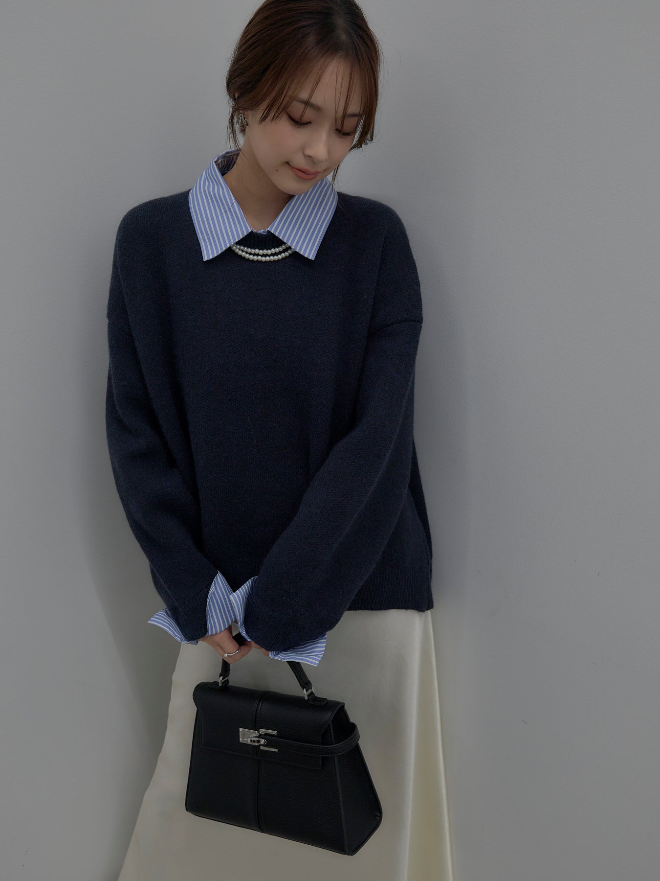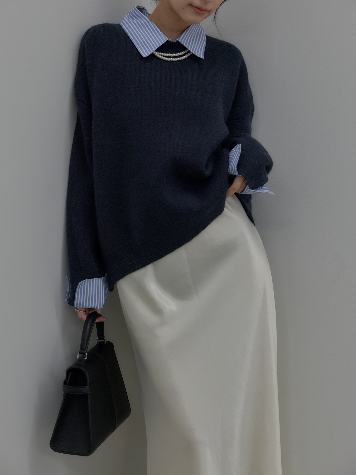【SET】シャツドッキング肉厚ニットプルオーバー+ナローAラインサテンスカート(2set)