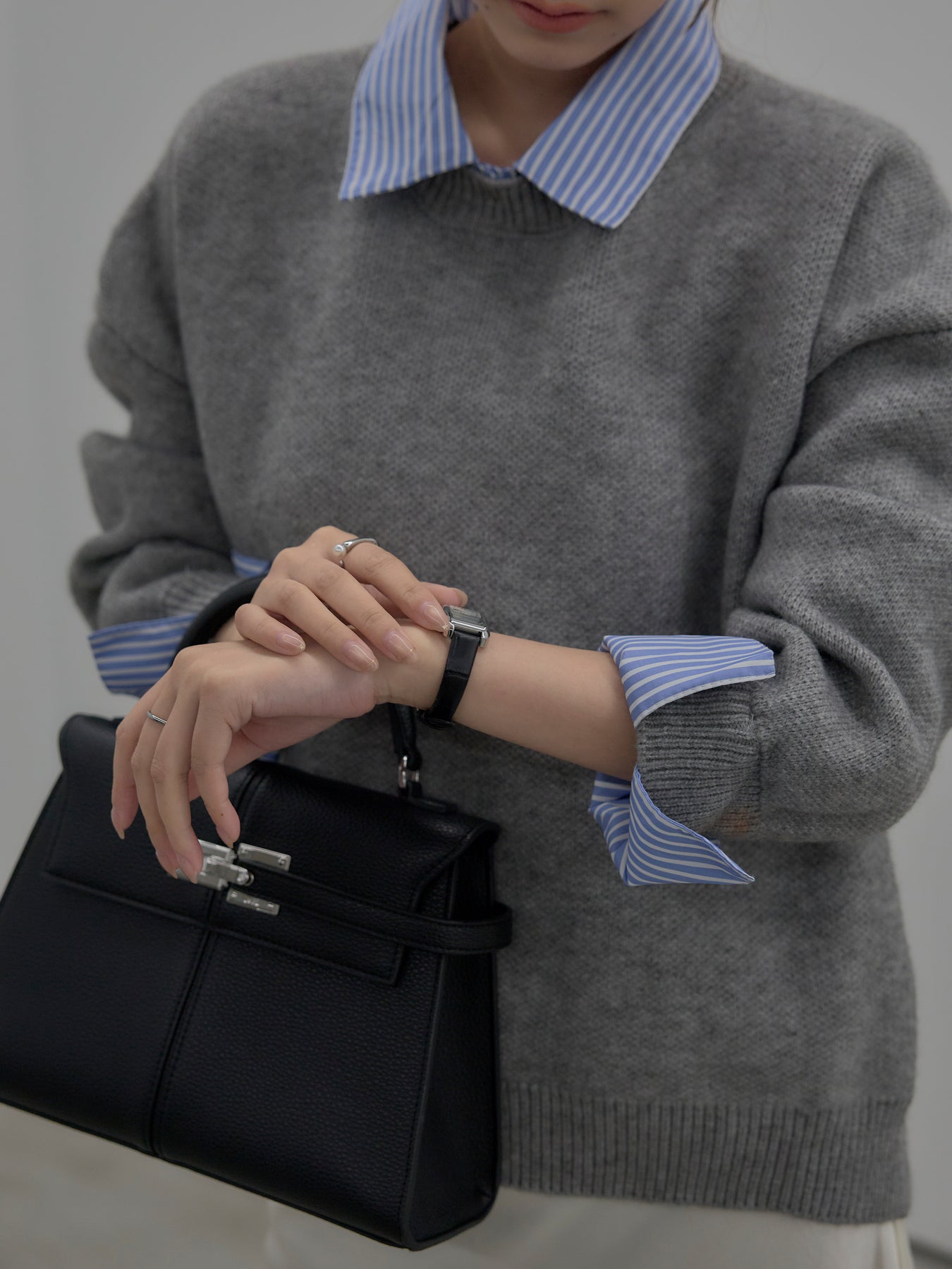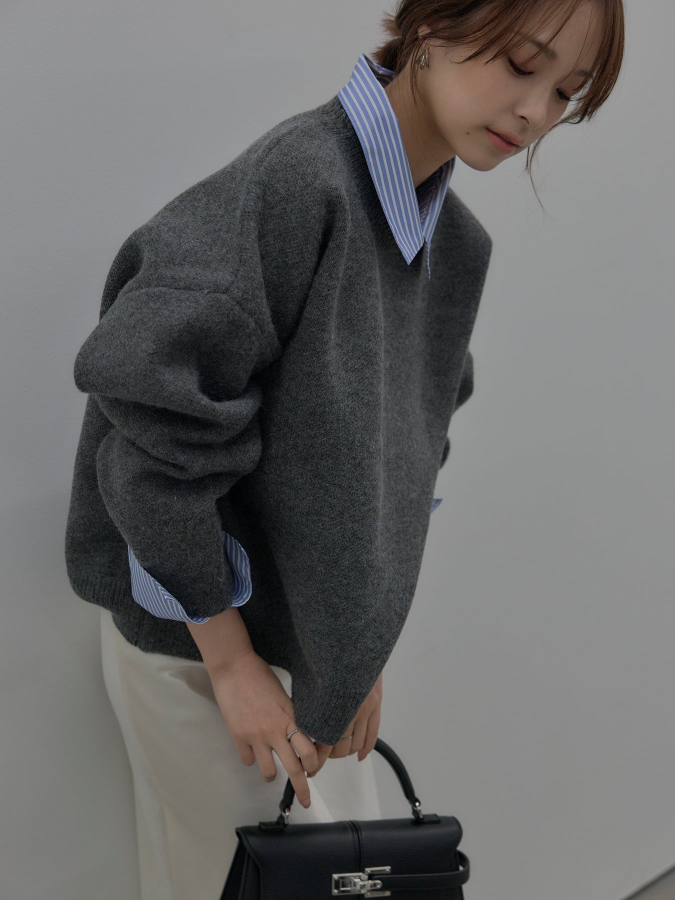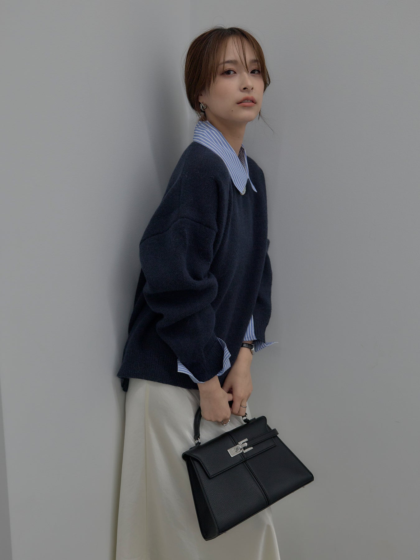 シャツをレイヤードしたようなドッキングデザインが目を惹く肉厚ニットプルオーバー。 一枚でまとまりのあるスタイリングが完成し、簡単にこなれたレイヤード感を演出できます。 しっかりとした肉厚ニットがあたたかく、季節感たっぷりの主役級アイテムです。