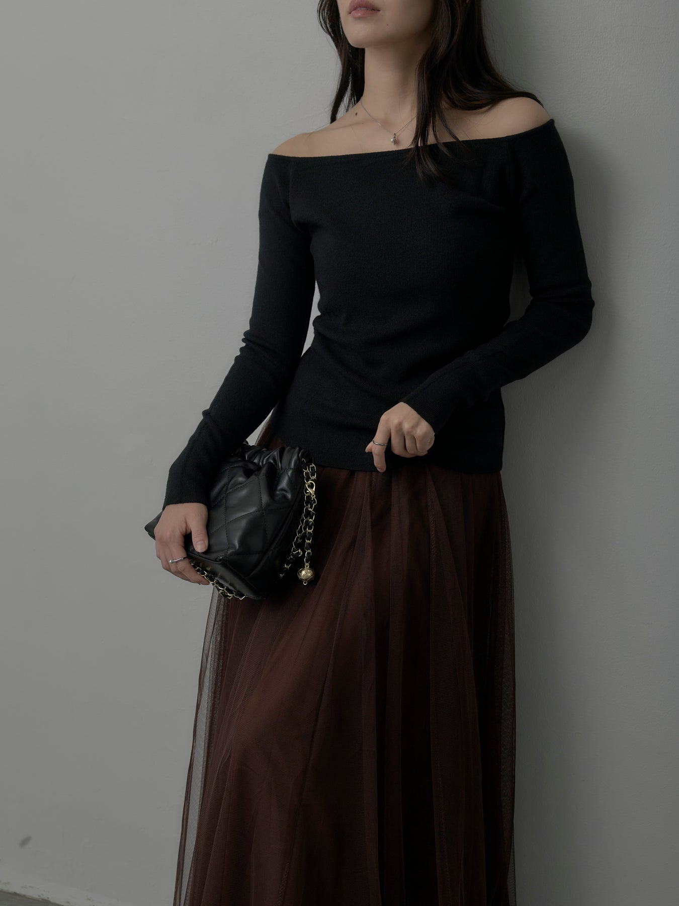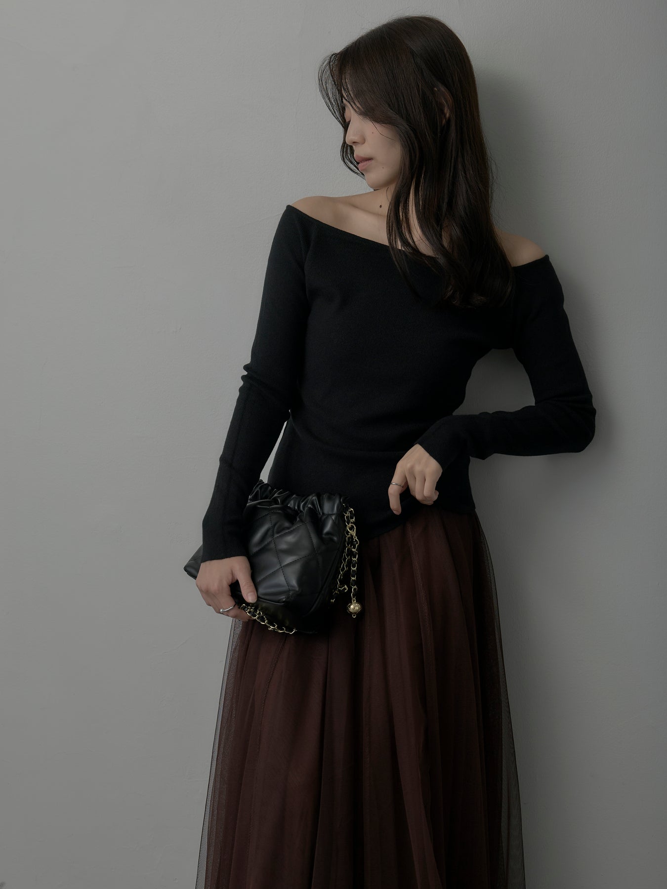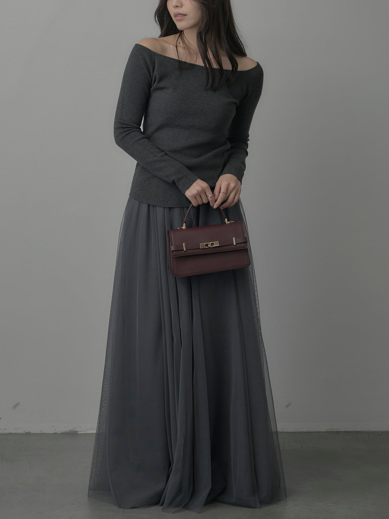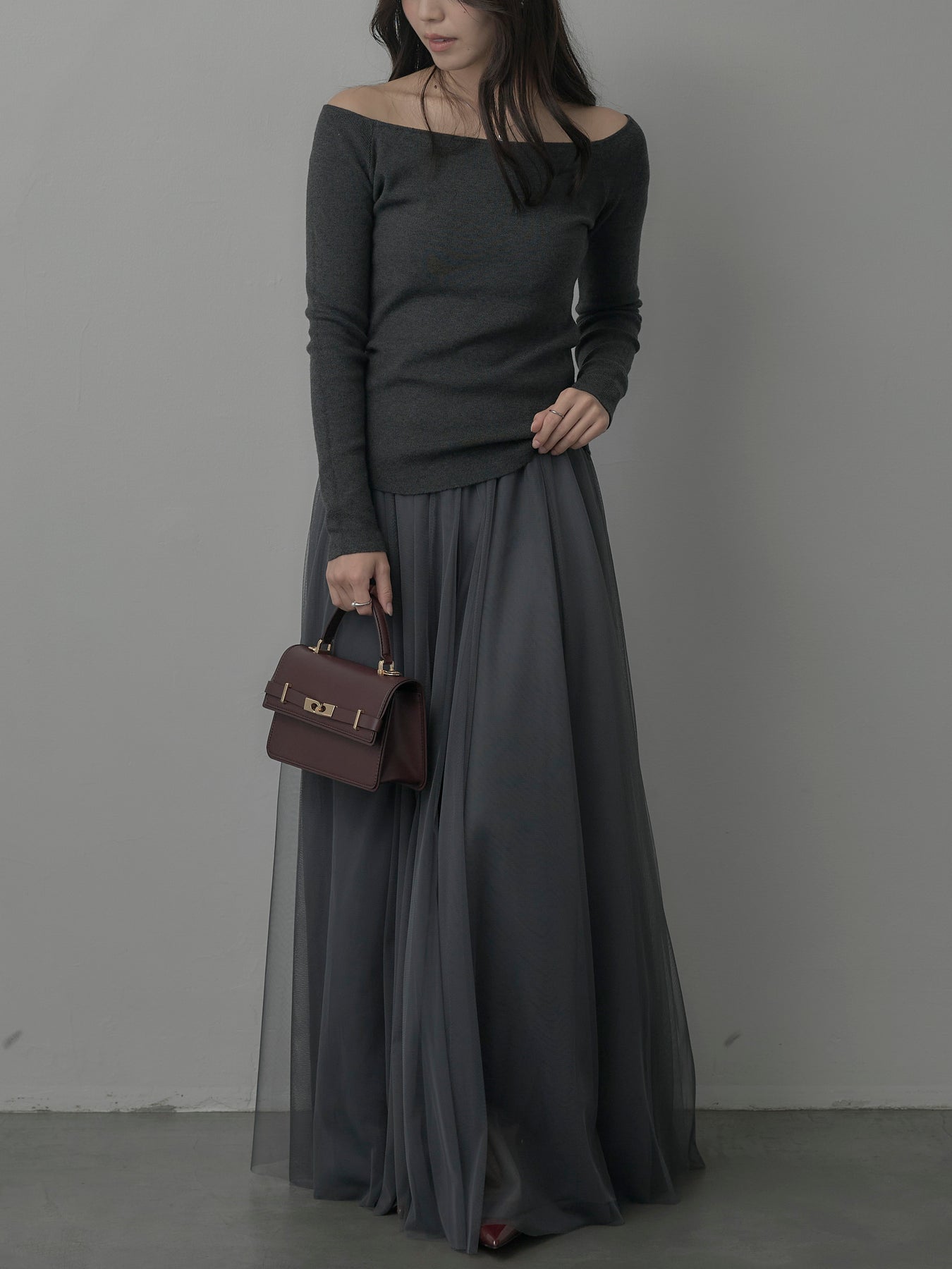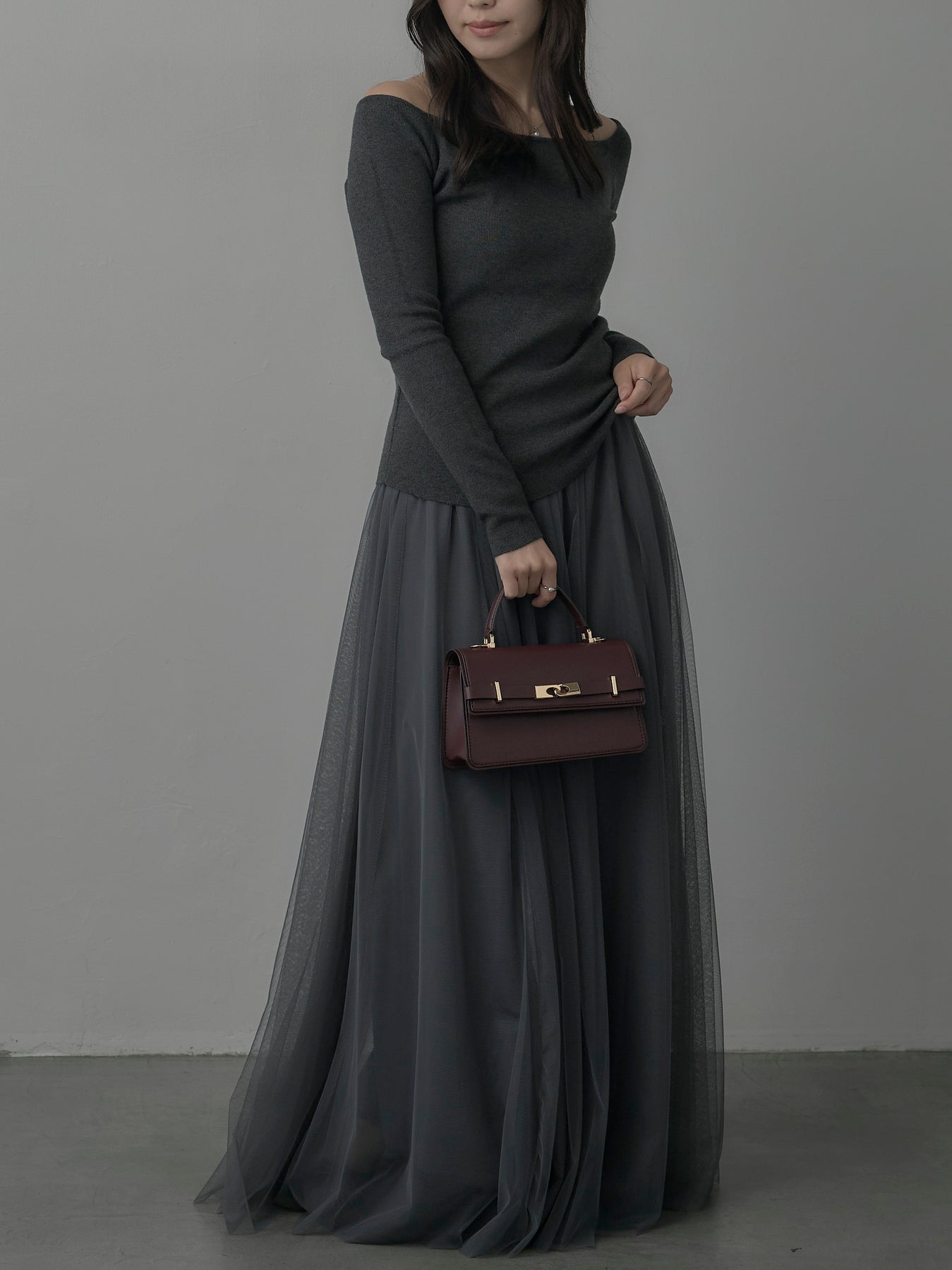 【モデル着用サイズ:M】重ねたチュールでボリュームたっぷりのスカートに仕上げました。振り向く瞬間、ドラマチックな裾の広がりに心躍ること間違いなし。オールシーズン使えてどんなアイテムとも好相性です。