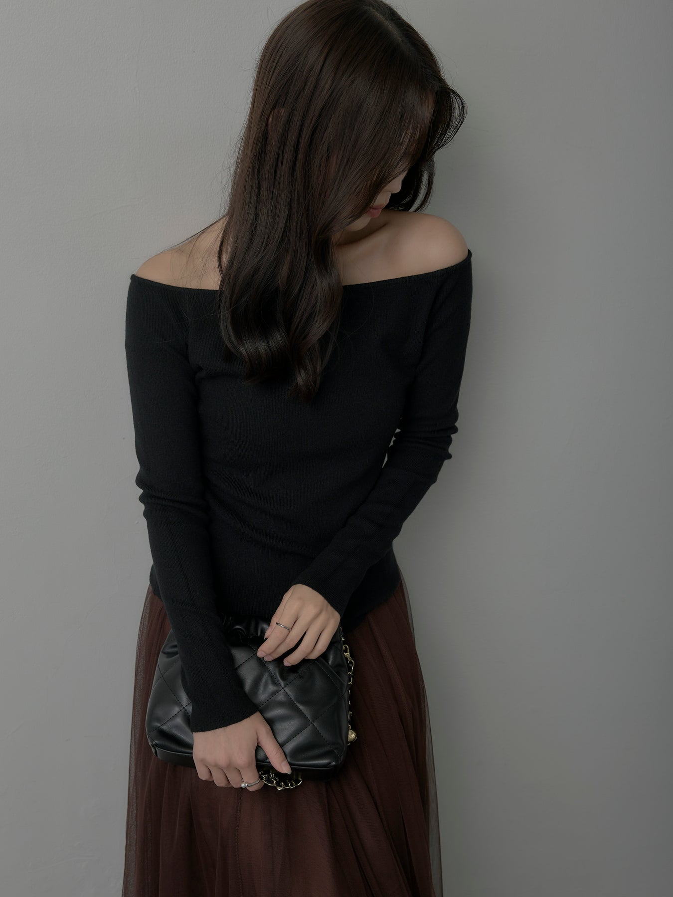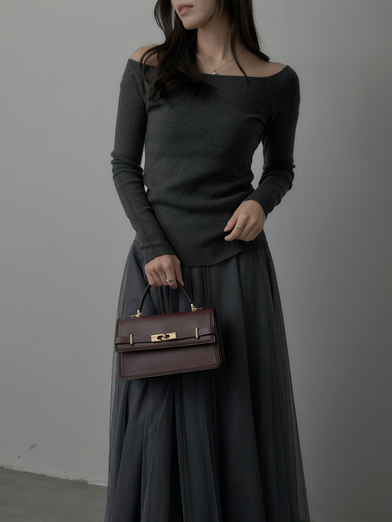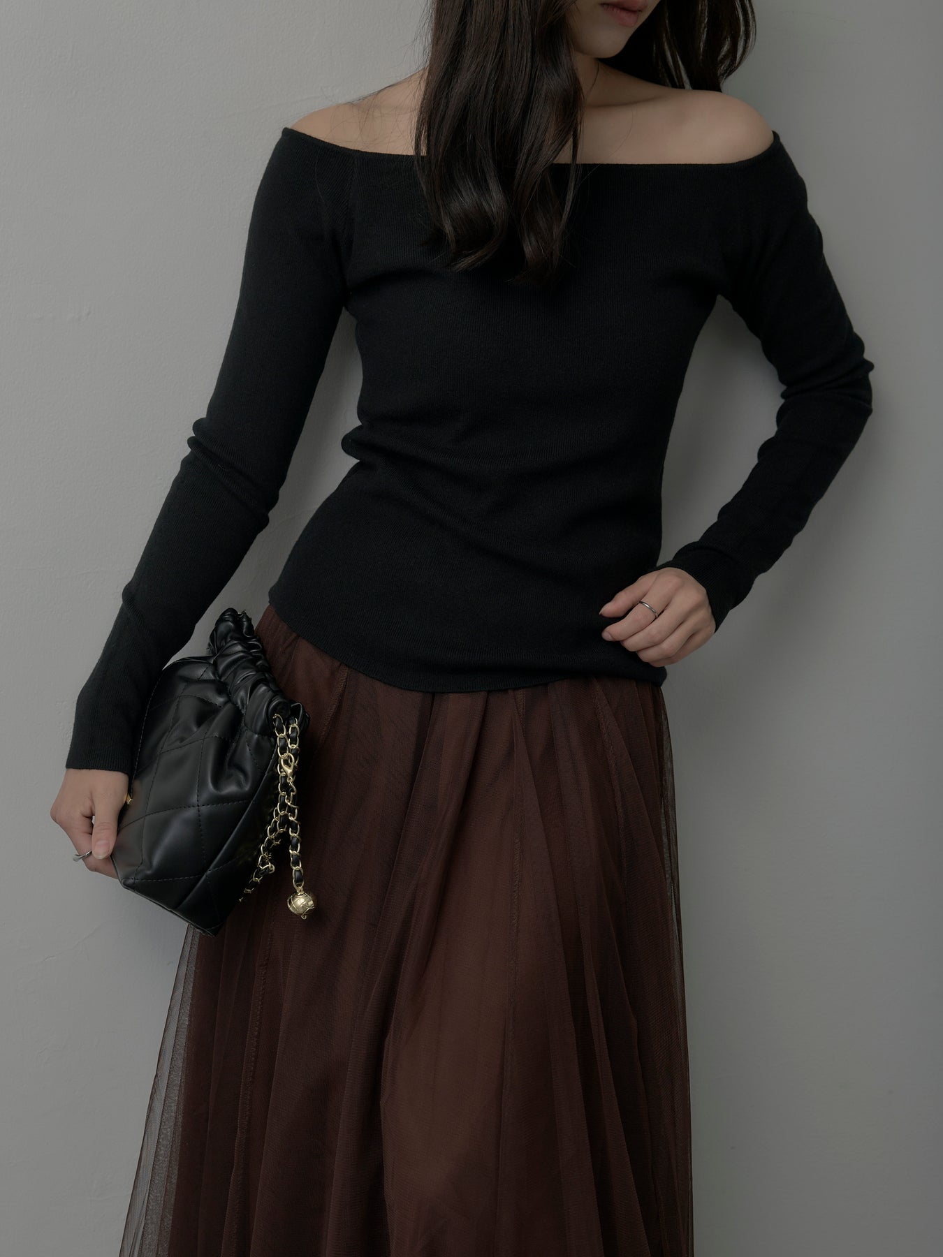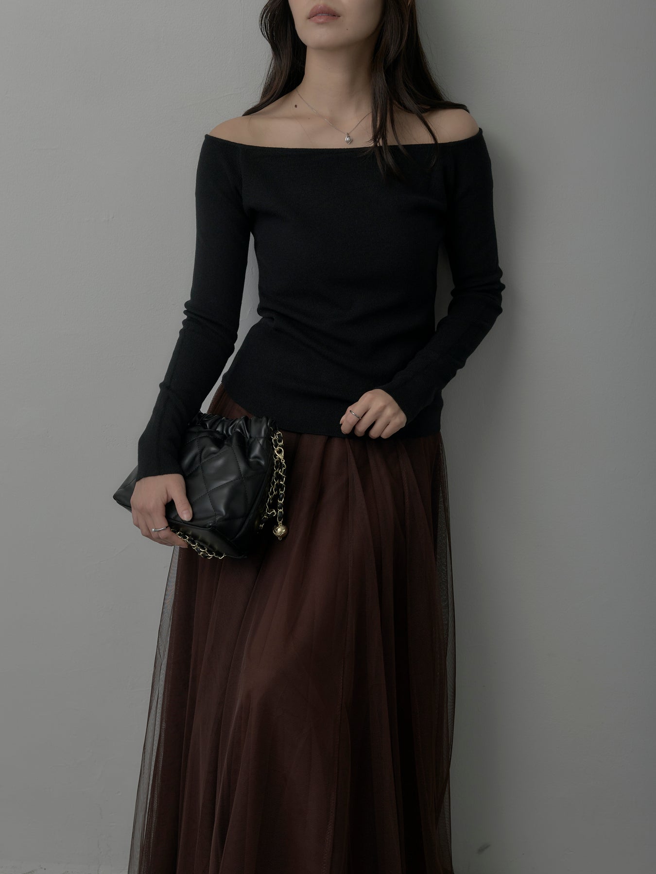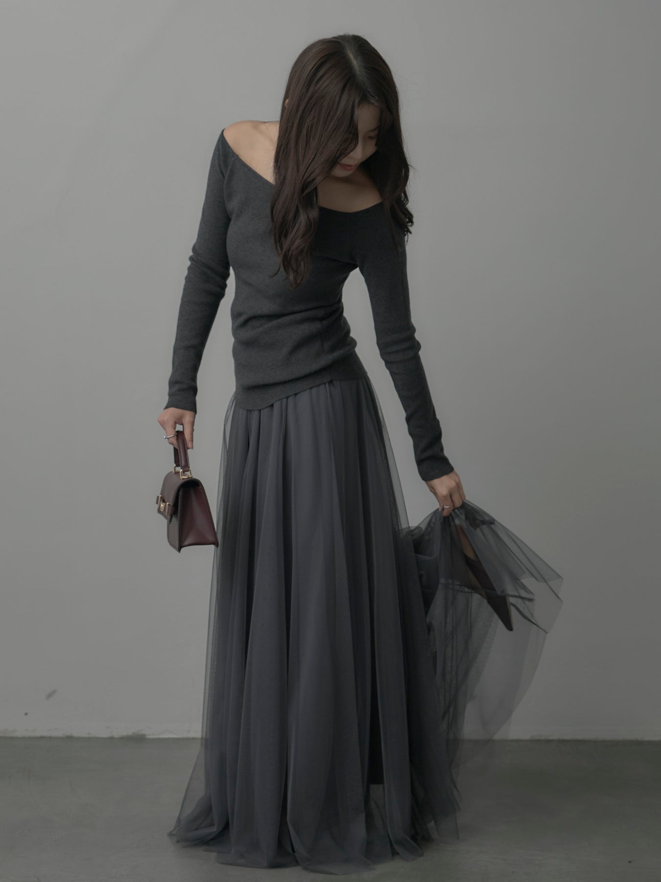 【SET】2wayリブニットポンチョトップス+ボリュームチュールスカート(2set)