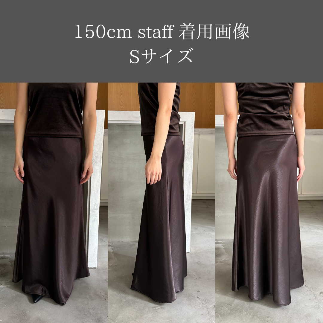 【モデル着用サイズ:IVORY/S、BLACK/S】 美しい光沢感のあるサテン素材を使用したナローAラインスカート。落ち感のあるシルエットが女性らしさを引き立て、幅広いトップスと好相性です。