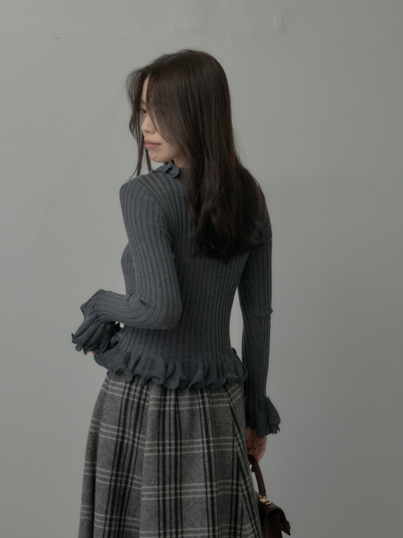 程よくフィットするリブ編みがシルエットを美しく見せ、女性らしい印象に。